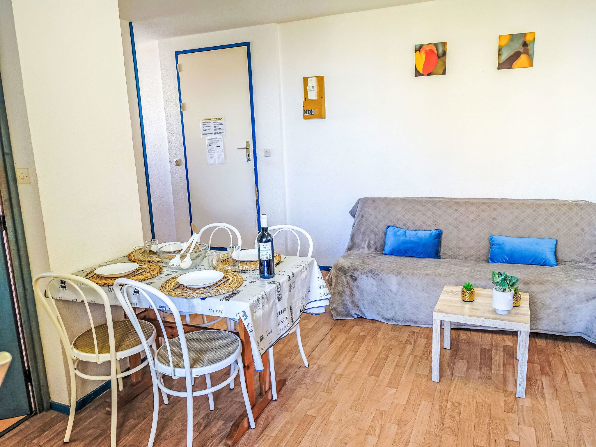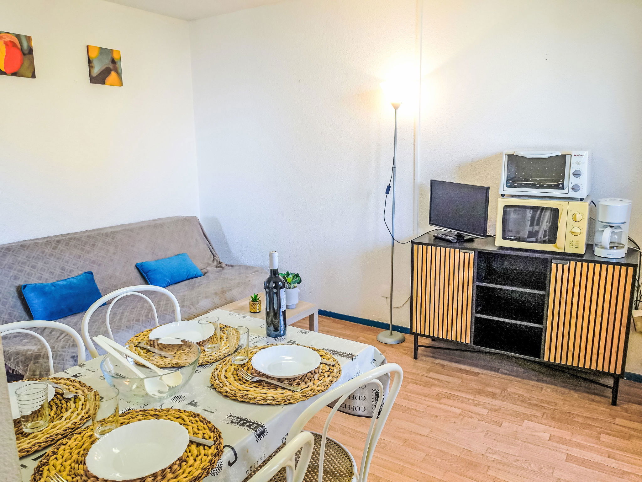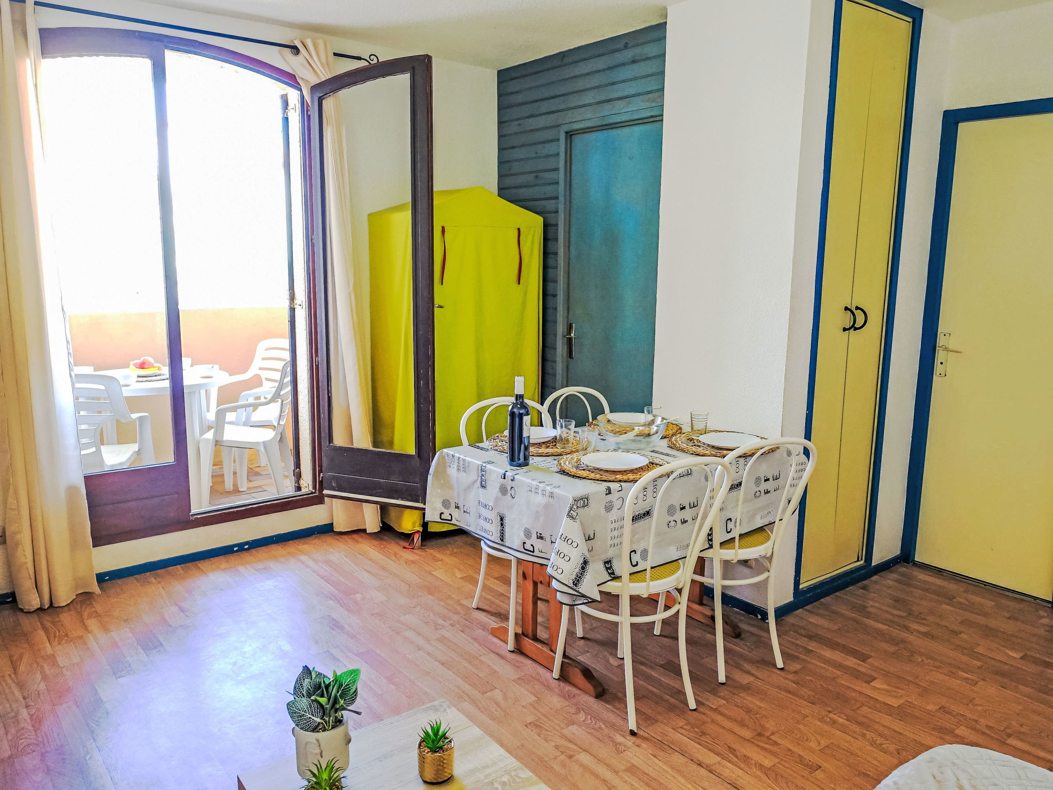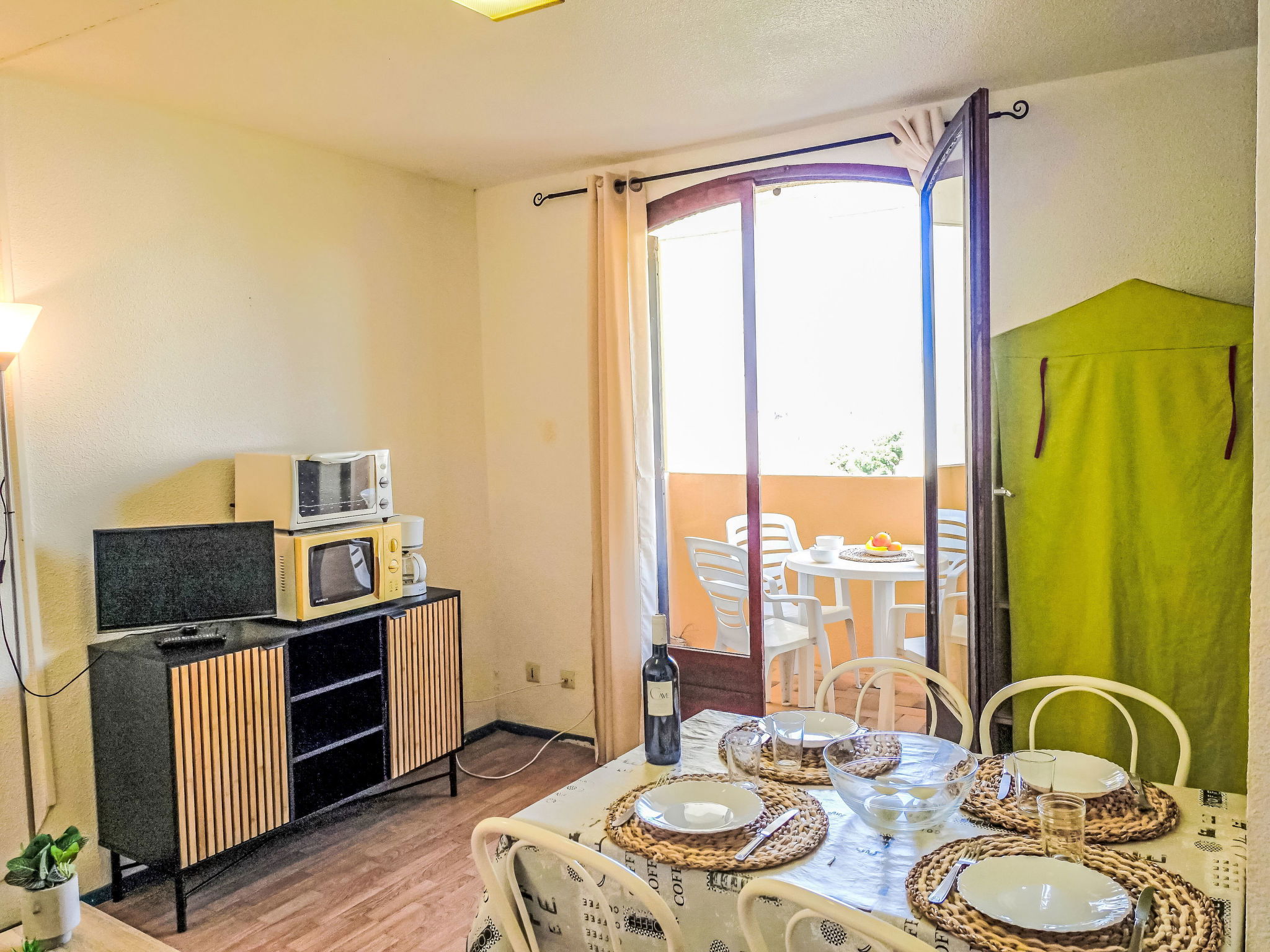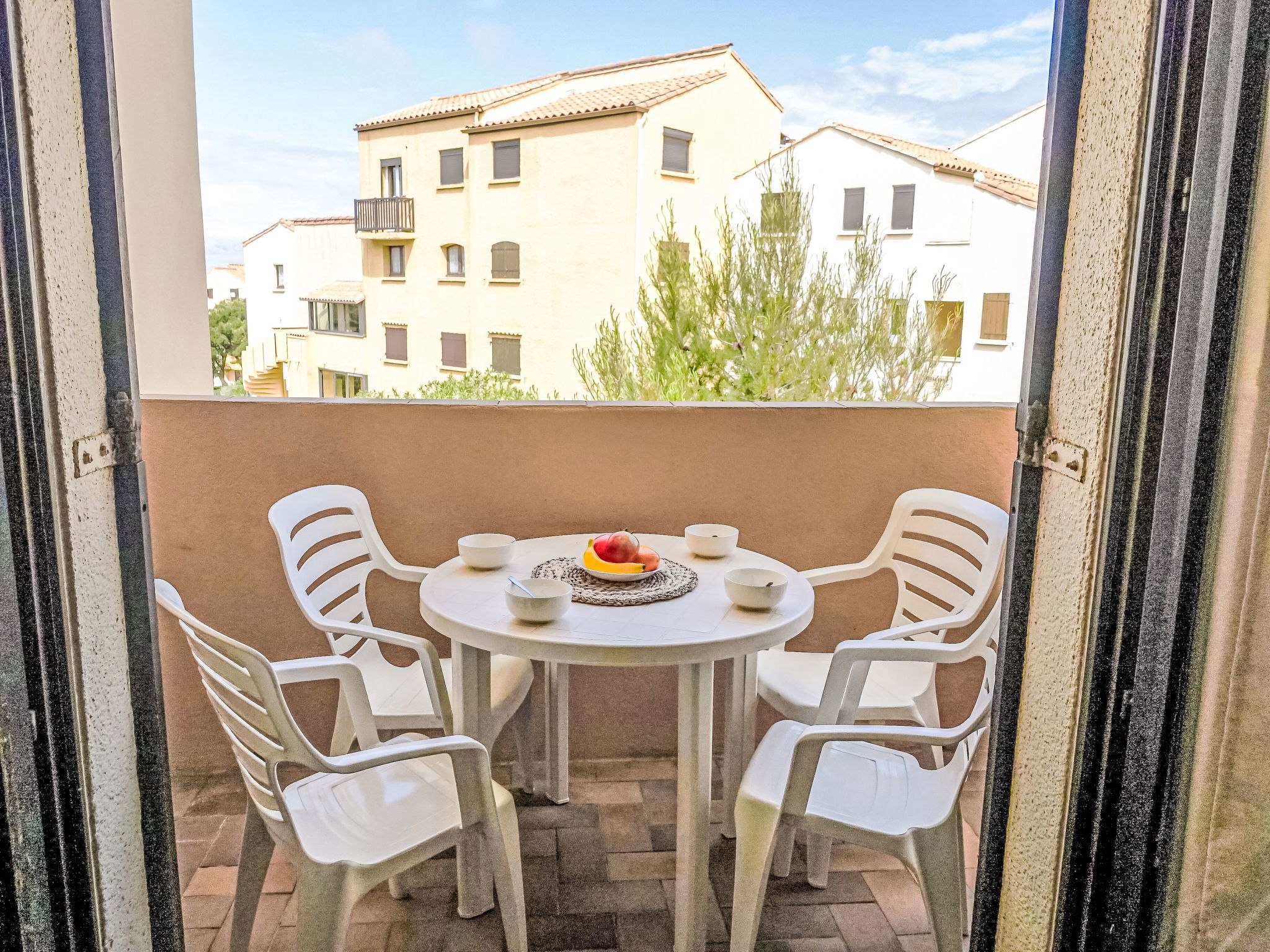 Residence "Pleine Vue sur Mer". 400 m from the sea, road to cross. For shared use: tennis (15.Jun. - 15.Sep.) (extra). Shop, grocery 300 m, restaurant, bar 600 m, bus stop 500 m, diving center 800 m. Sports harbour 800 m, riding stable 4.4 km. Nearby attractions: Réserve Africaine de Sigean 36 km, Cité de Carcassonne 78 km, Espace balnéoludique de Gruissan 11 km. The keys‘ handover takes place by the agency in Narbonne Plage, 3 km. The residence is a group of 3-storey buildings perched on a small cliff overlooking the harbour at the entrance to the station.