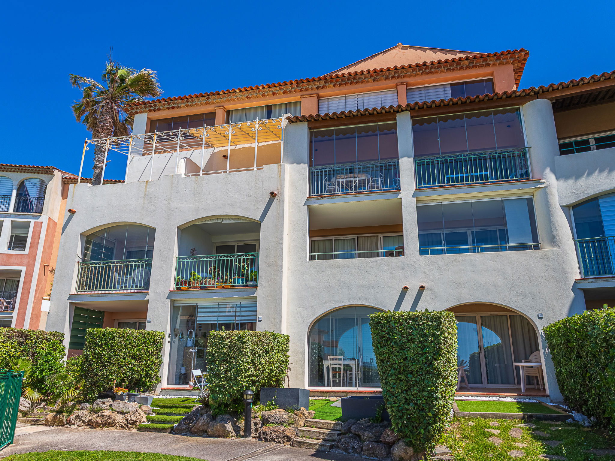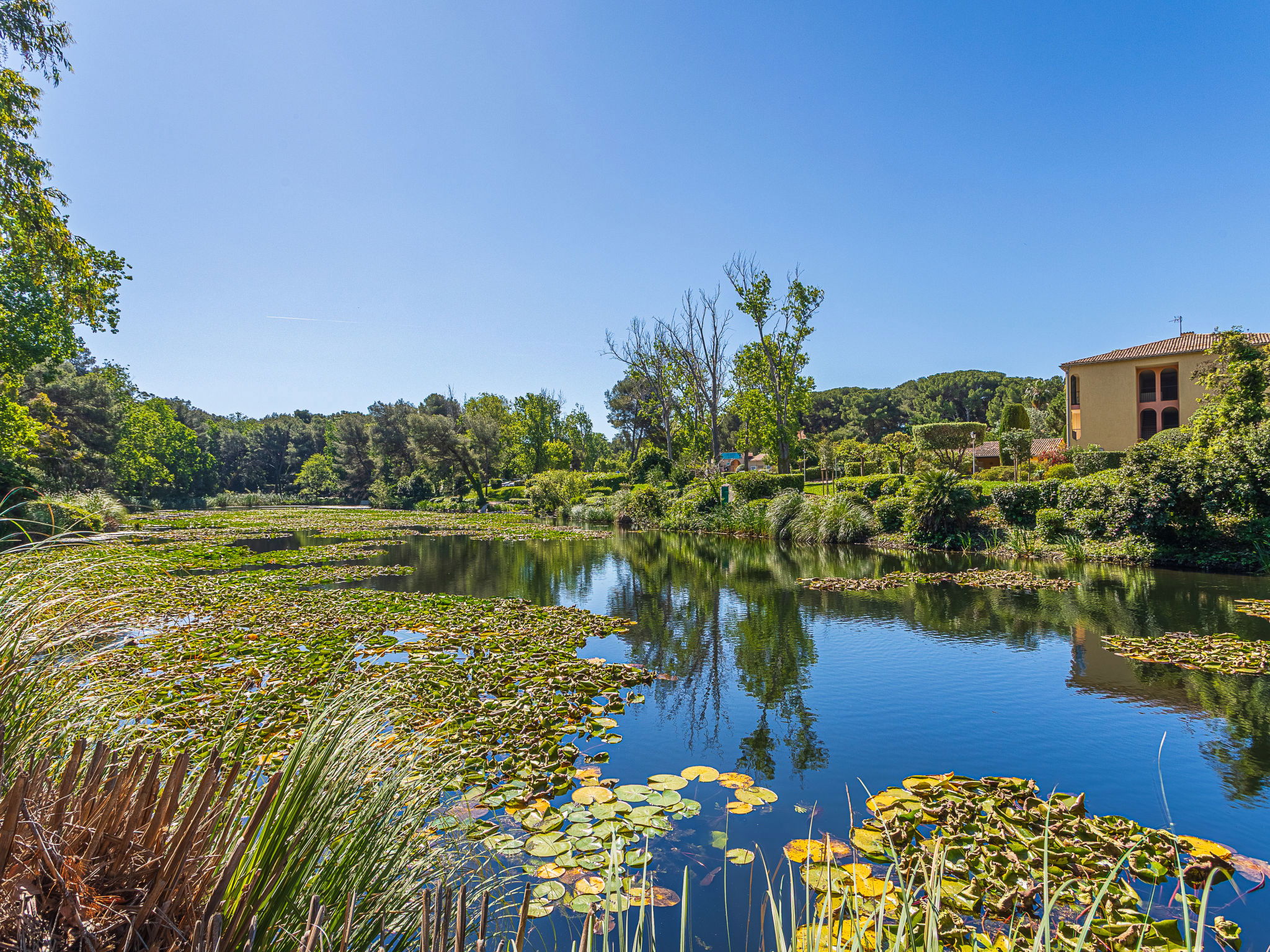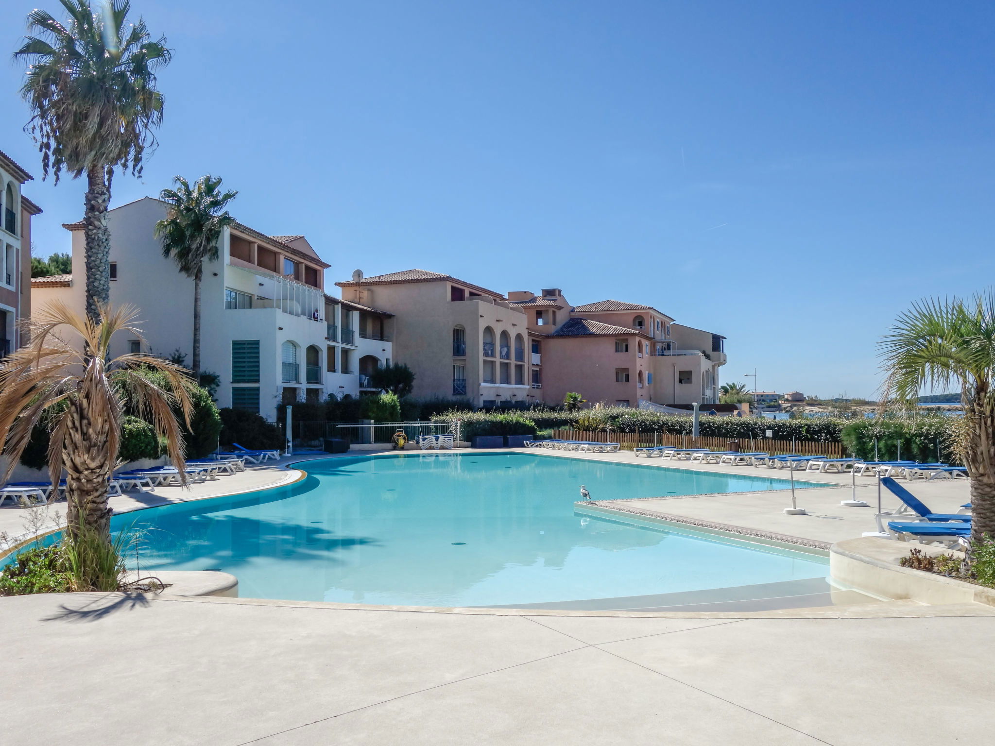 La Coudoulière: Residence "Les Rivages de Coudoulière", 3 storeys. 3 km from the centre of Six Fours, 50 m from the sea, 100 m from the beach, in the countryside. For shared use: swimming pool fenced (25 x 15 m, 340 m2, depth 60 - 160 cm, seasonal availability: 15.May. - 15.Oct. pool opening hours: 10:00-19:00) with internal staircase. Unconventional pool shape. Children's pool. In the complex: shop, restaurant, café 50 m, bus stop 200 m, sandy beach "La coudoulière" 100 m, park "Domaine de la Coudoulière" 50 m, lake Domaine de la Coudoulière 50 m. Sports harbour 50 m, golf course (18 hole) 13 km. Hiking paths: Sainte Baume, Sainte Victoire, Calanques Port-Cros, Porquerolles, Ile verte, Embiez, Figuerolles, Cassis. Please note: the keys‘ handover takes place by the agency in SIX FOURS LES PLAGES, 2 km. Additional accommodations can be booked.