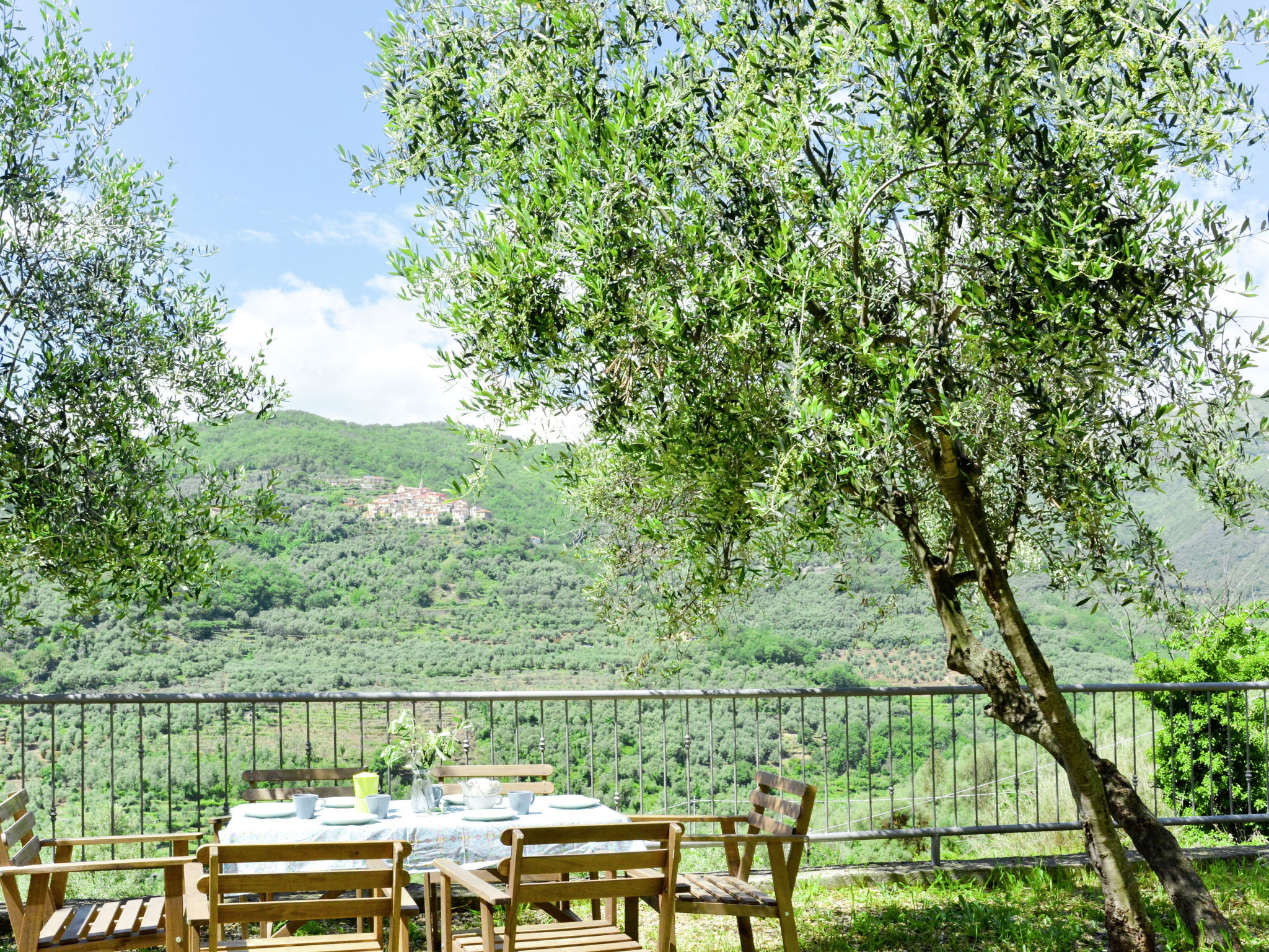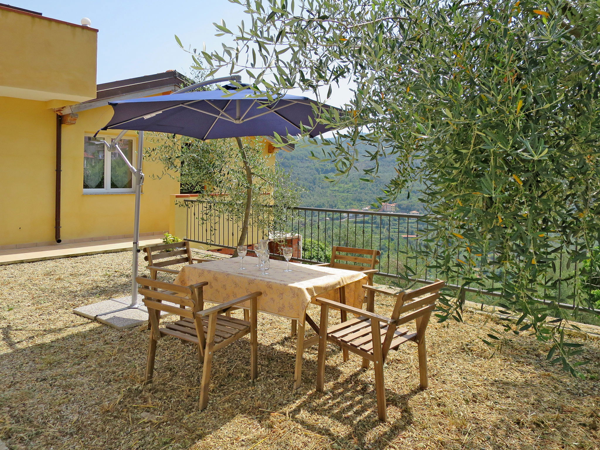 Small, beautiful residence "Clara", built in 2014, surrounded by trees. 4 apartments in the residence. In the hamlet Canneto 3 km from the centre of Prelà, 5 km from the centre of Dolcedo, 12 km from the centre of Imperia, in a quiet, sunny position on a slope, 15 km from the sea, in a cul-de-sac, in the countryside. For shared use: natural state property 1'200 m2 (fenced) with trees, natural garden, swimming pool (above ground) kidney-shaped (8 x 4 m, depth 120 cm, seasonal availability: 01.Jan. - 31.Dec.). Outdoor shower. 50 m long steep, narrow motor access to the house (ramp). Parking (limited number of spaces) at the house. Shop 3 km, supermarket 12 km, restaurant 3 km, bar 3 km, bakery 3 km, café 3 km, bus stop 300 m, railway station "Porto Maurizio" 15 km, sandy beach "Imperia - Porto Maurizio" 15 km. Please note: car recommended.