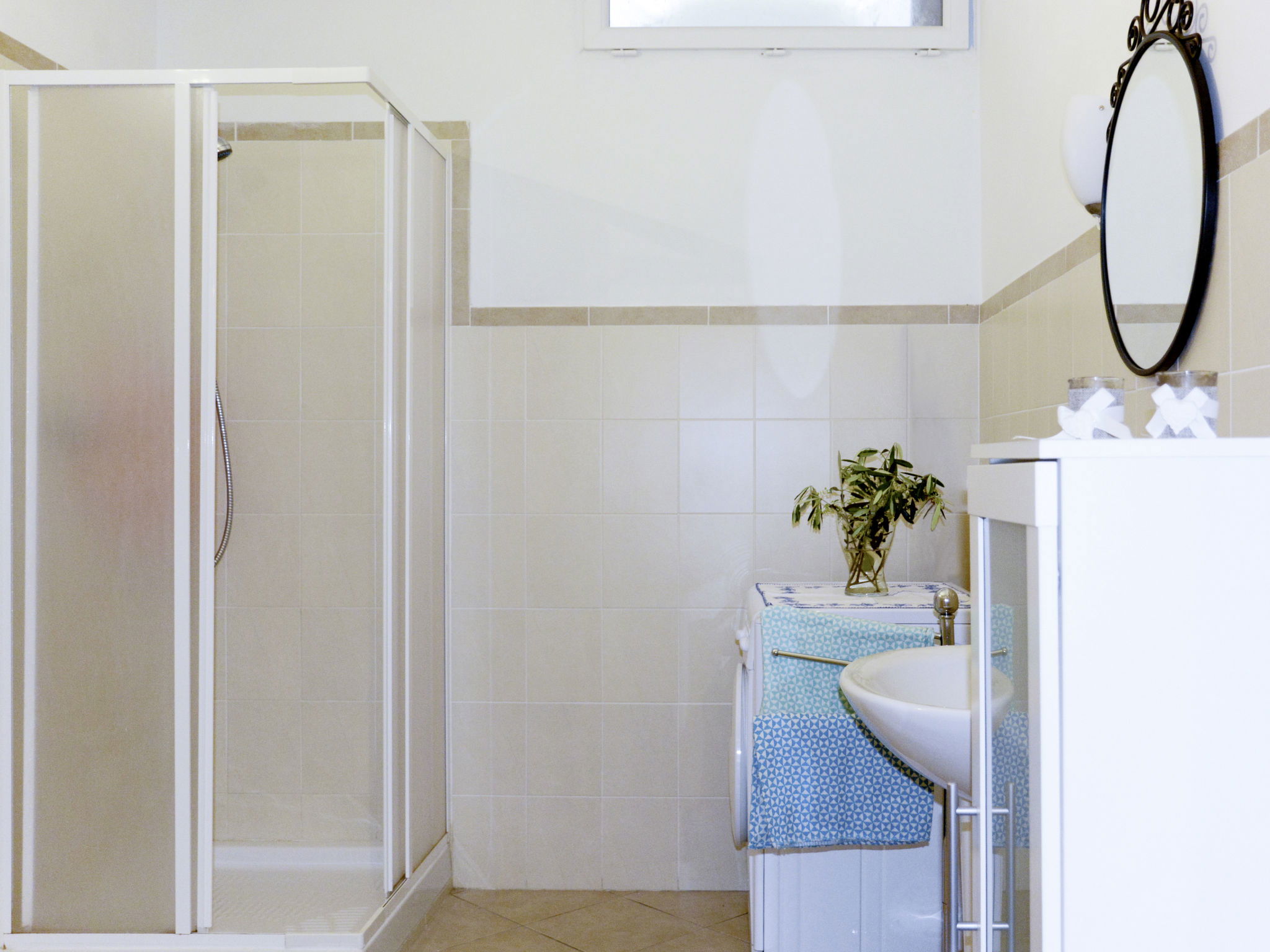 "Marco ", 3-room apartment 60 m2 on 1st floor. Bright, practical furnishings: 1 room with 1 double bed (160 cm). Exit to the garden. 1 room with 1 double bed (160 cm). Kitchen-/living room (oven, 4 gas rings, toaster, freezer, electric coffee machine) with dining table, 1 double sofabed (140 cm), satellite TV. Exit to the garden. Shower/bidet/WC. Gas heating. Patio. Terrace furniture, barbecue, deck chairs (2). Marvellous panoramic view of the countryside and the resort. Facilities: washing machine, children's high chair, baby cot. Free. Parking (1 car). Please note: maximum 2 pets/ dogs allowed. Private entrance. IT008047C2A48QX6RM