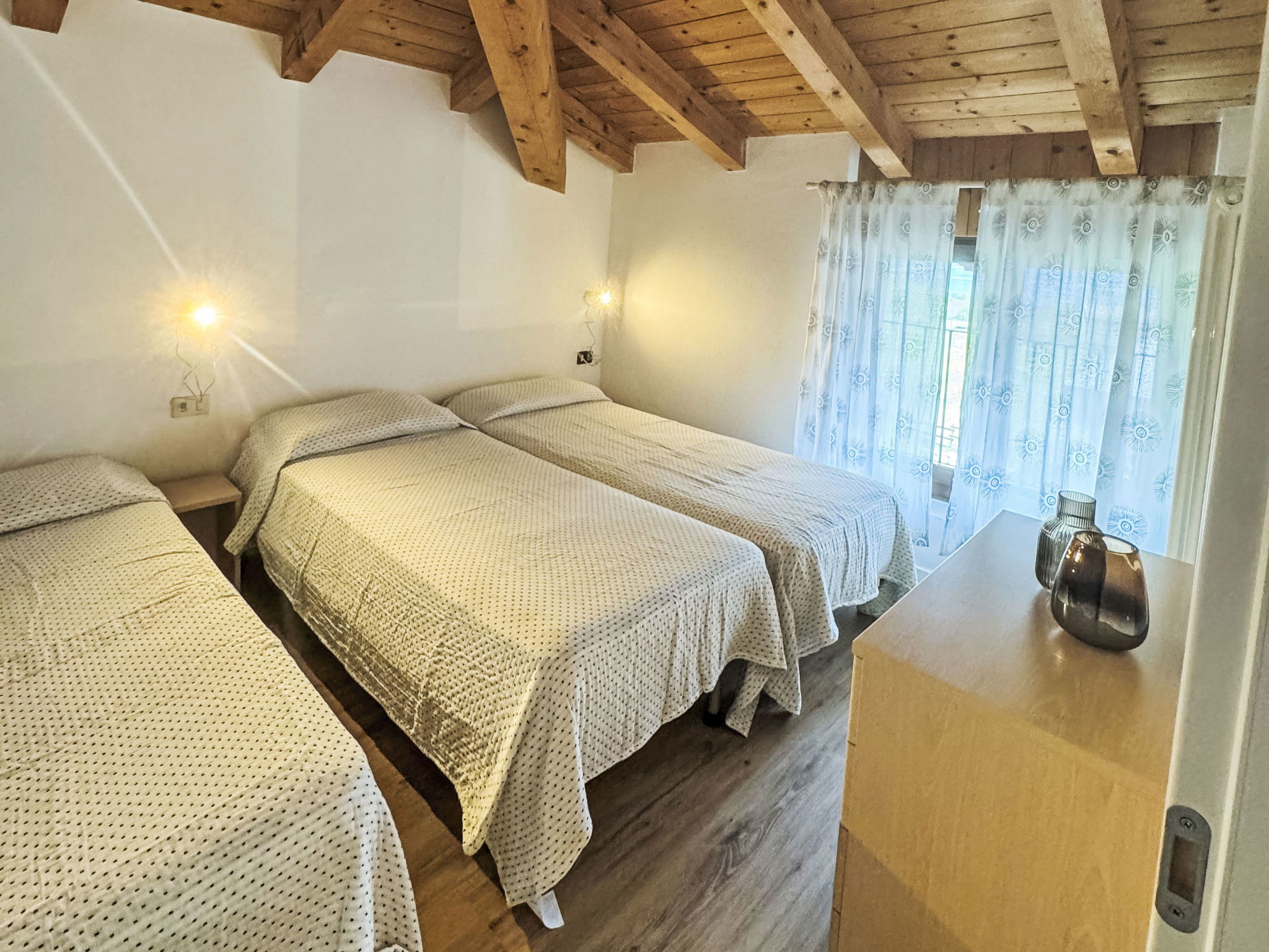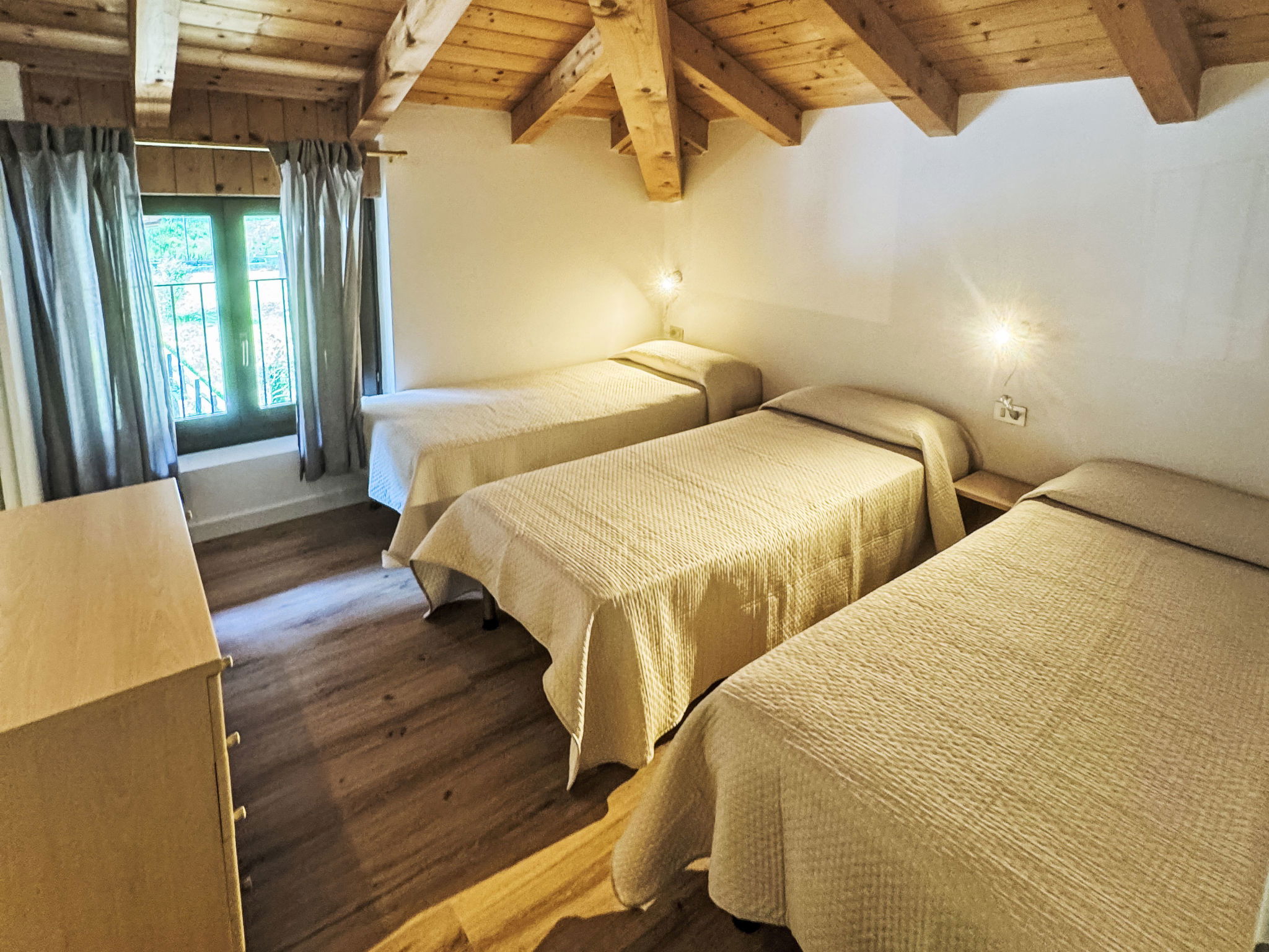 3-room apartment 55 m2. Partly renovated in 2025, practical and cosy furnishings: living/dining room with satellite TV. 1 double bedroom. 1 room with 3 beds. Kitchenette (4 hot plates, dishwasher, microwave, freezer, electric coffee machine). Bath or shower/WC. Gas heating (extra). Heating available only from 15.09. to 15.06. Balcony or terrace. Facilities: washing machine, hair dryer. Internet (WiFi, free). Suitable for families. Maximum 3 pets/ dogs allowed. Some apartments have the fifth bed in the living-room. Some apartments are on 2 levels. IT022229C2TLTFYB2T