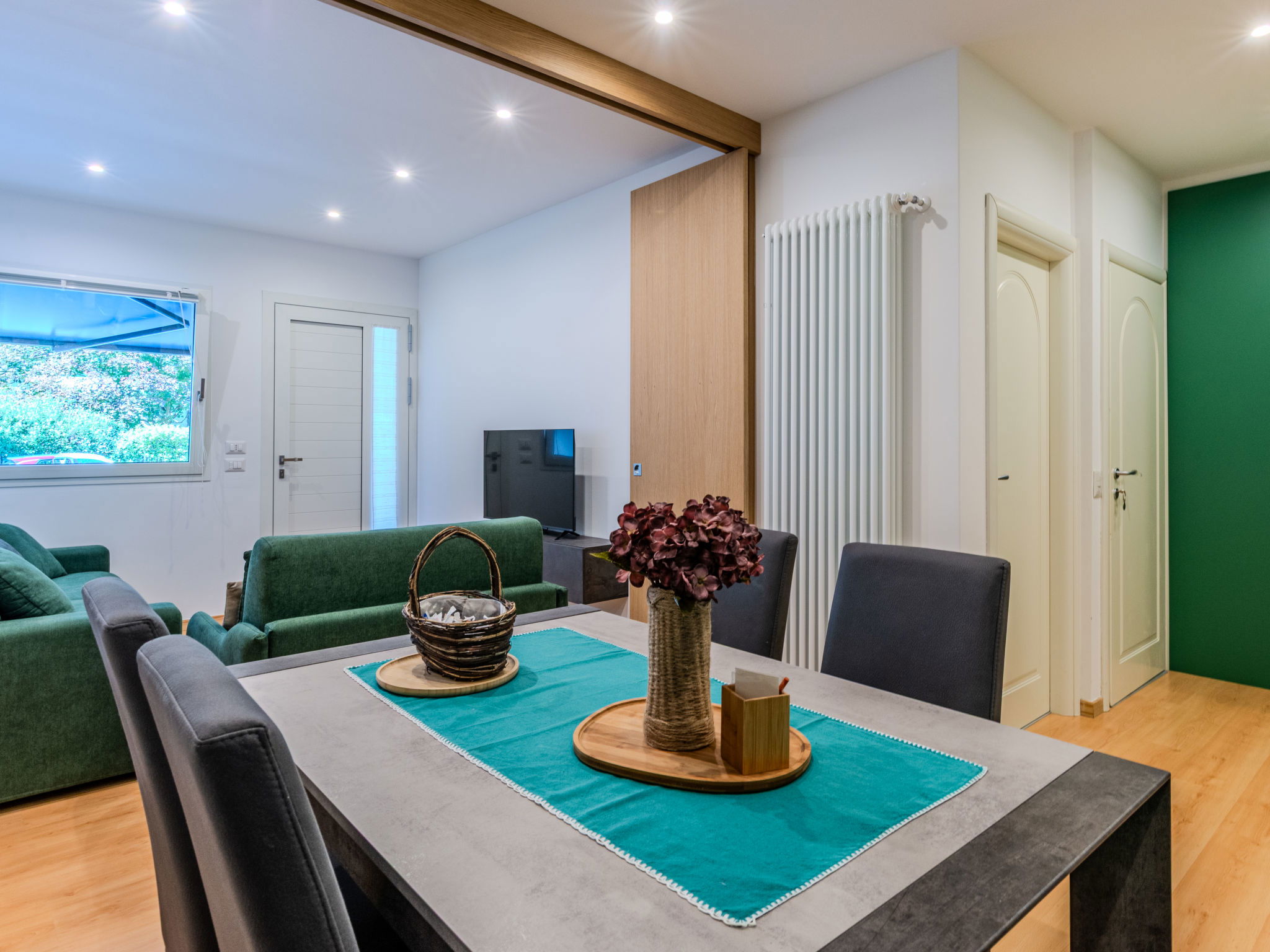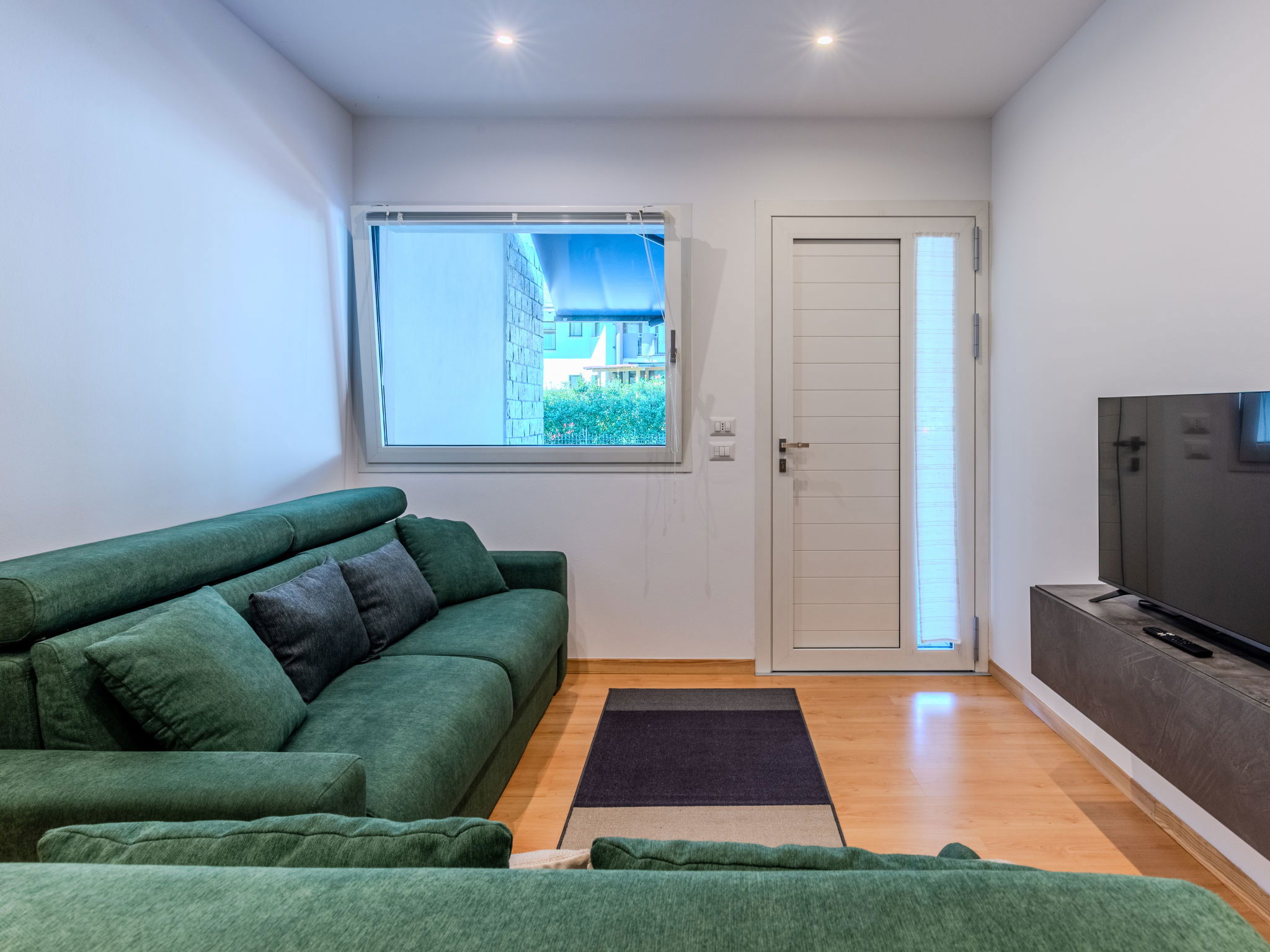 2-room apartment 50 m2, on the ground floor. Comfortable furnishings: living/sleeping room with 1 double sofabed and TV. Exit to the terrace. 1 room with 1 double bed. Open kitchen (oven, dishwasher, 4 induction hot plates, toaster) with dining table. Shower/bidet/WC. Gas heating. Heating available only from 15.10. to 15.04. Patio. Terrace furniture, barbecue, deck chairs (2). Facilities: washing machine, hair dryer. Internet (WiFi, free). Parking (2 cars). Please note: non-smokers only. Maximum 1 pet/ dog allowed. Private entrance, fire extinguisher. IT014075C2ZMSCYVNP