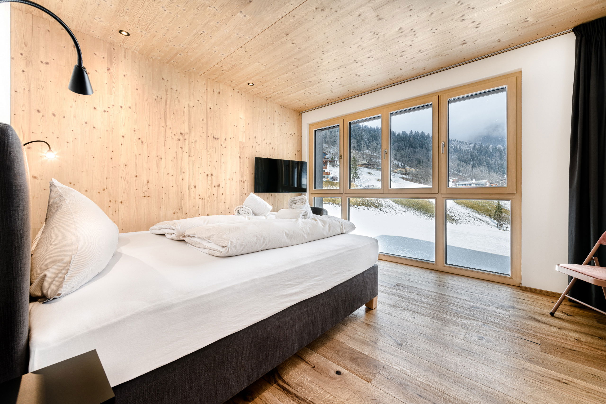 The deep and very spacious terrace is oriented in 2 directions and guarantees sun in the morning and in the afternoon, as the mighty peaks of the Rätikon allow it.
