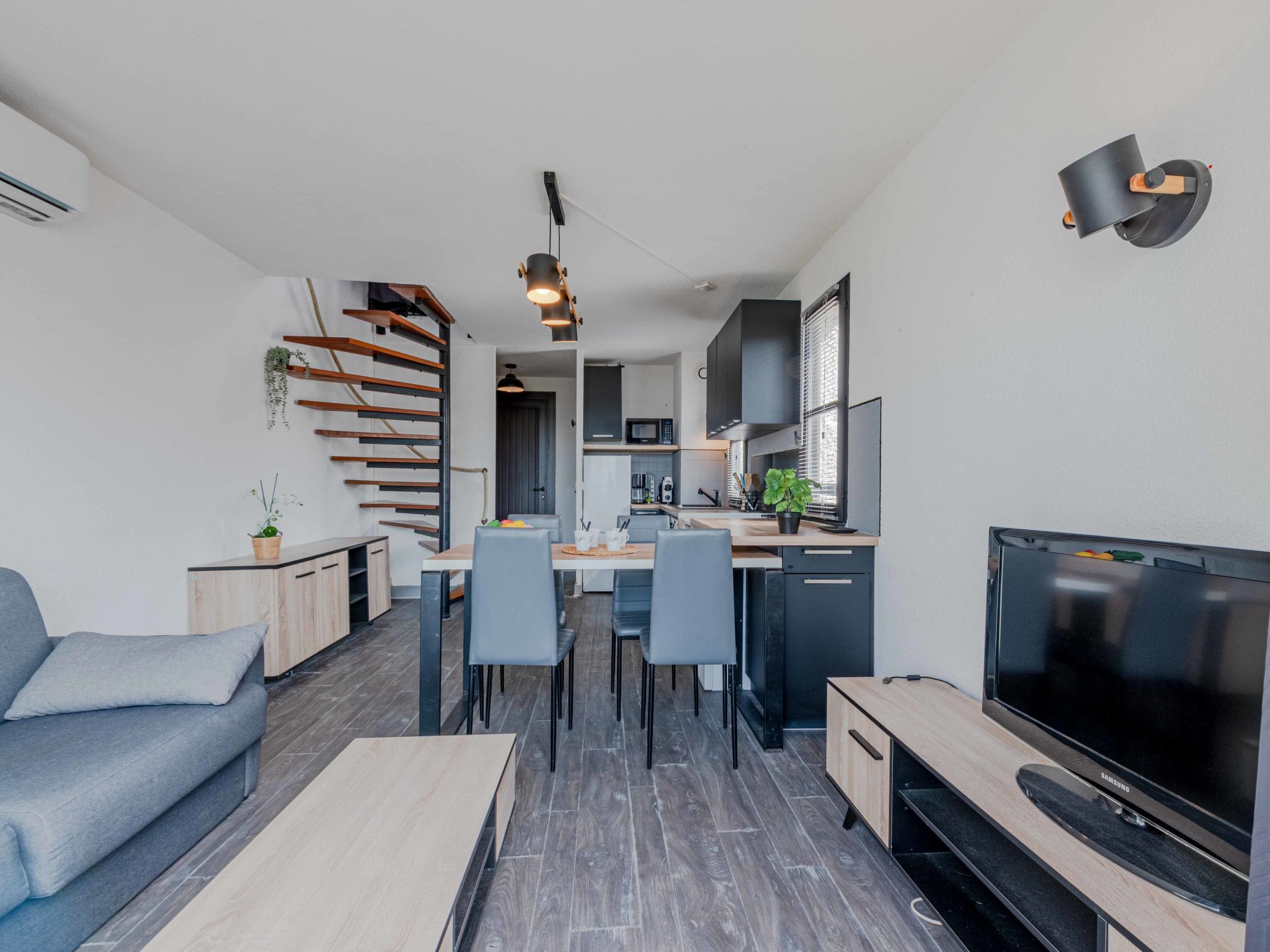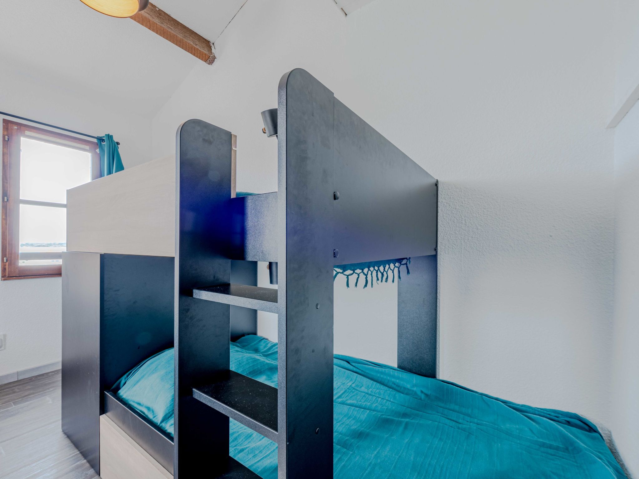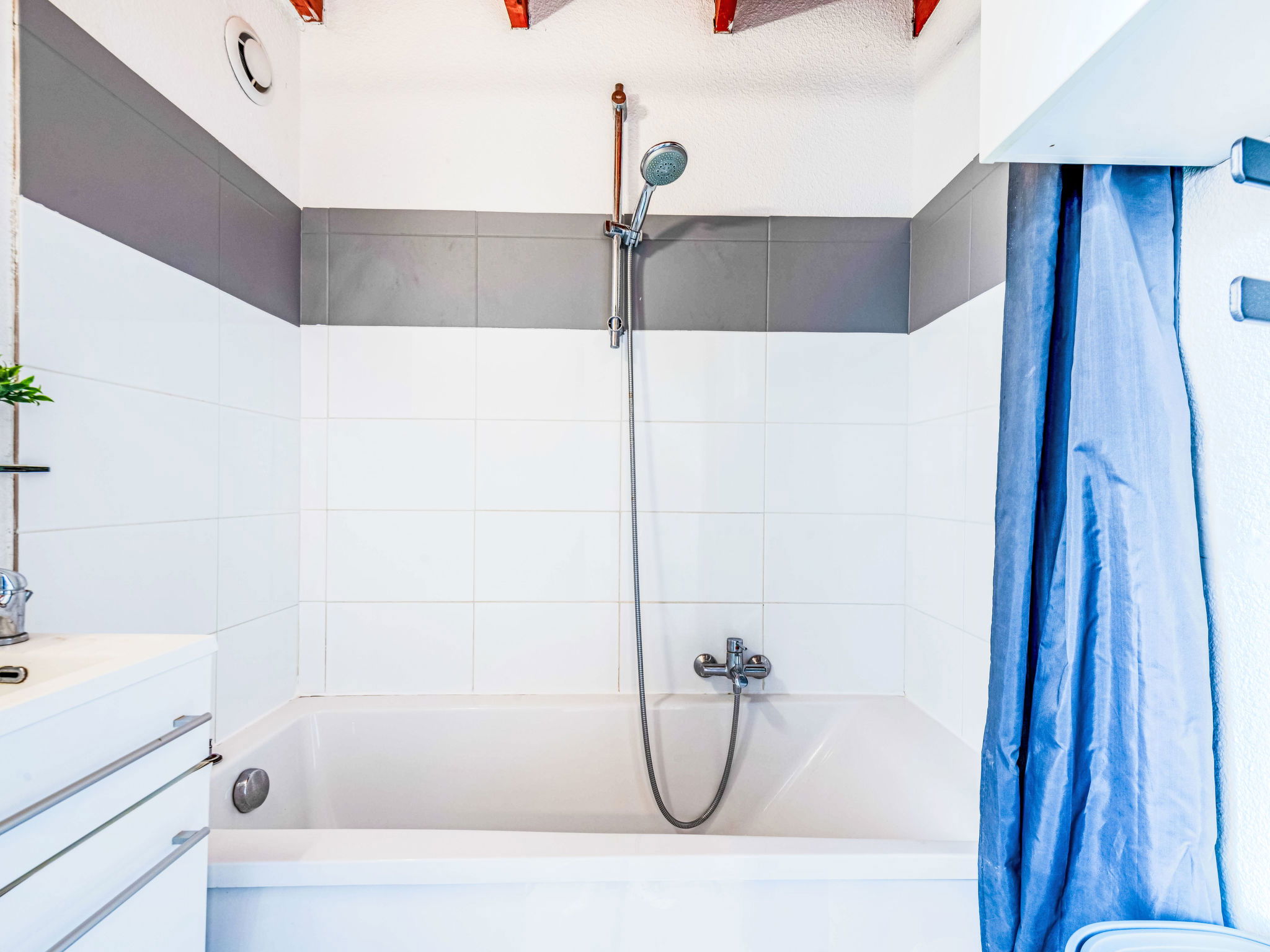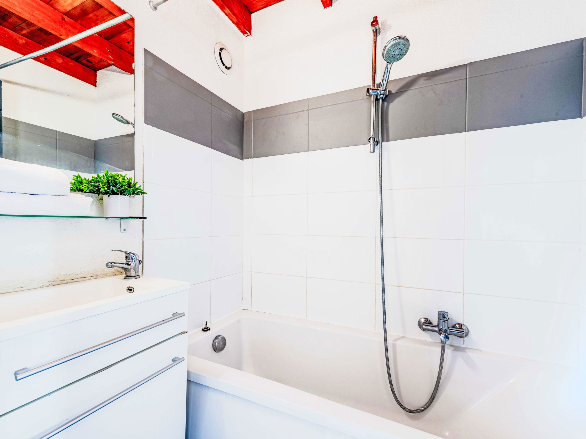 2-room apartment 38 m2 on 1st floor, south-west facing position. Living/dining room with TV (flat screen). Exit to the terrace. Open kitchen (mini-oven, dishwasher, 4 ceramic glass hob hotplates, microwave, electric coffee machine). Bathroom, sep. WC. Air-conditioning. Upper floor: 1 room with 1 x 2 bunk beds (90 cm, length 190 cm), 1 french bed (1 x 140 cm, length 190 cm). Terrace 7 m2. Terrace furniture. View of the lake. Facilities: washing machine, dryer. Internet (WiFi, extra). Please note: maximum 1 pet/ dog allowed. Smoke alarm. Offer by a private individual according to Art. 155, IV of CGI.