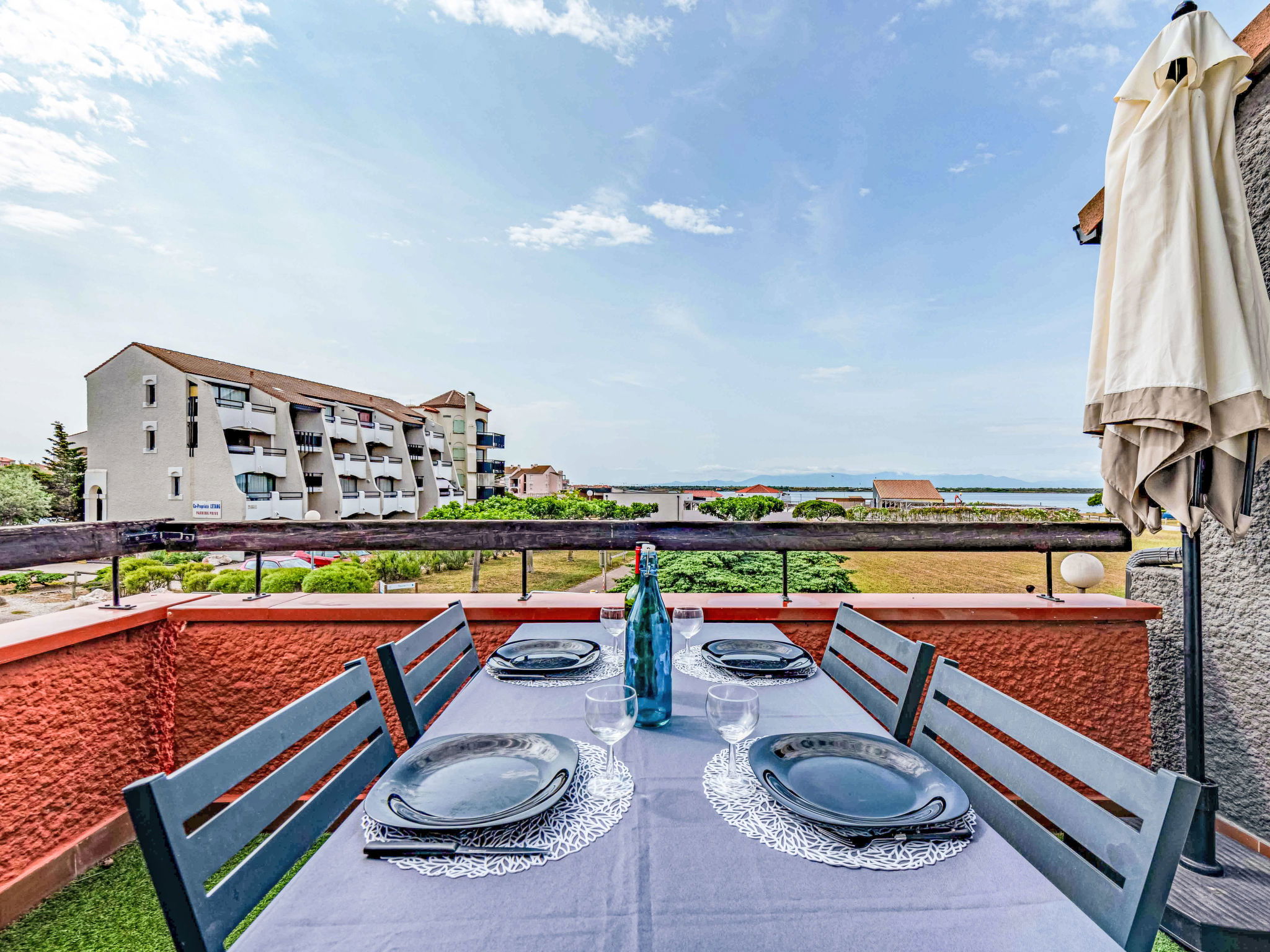Coudalère 5 km from Barcarès centre: As part of the water restriction measures linked to the drought in some of our departments, please note that the rental swimming pool may be closed by prefectural decree. Set of residences with 3 heated swimming pools including 1 children's pool, 1 10m/15m pool and a 25m/15m pool (open from 15.04 to 15.10) free of charge and 5 paying tennis courts. Residence "Sombrero", 3 storeys. In the district of de la Coudalère, 2.5 km from the sea, 50 m from the lake, 2.5 km from the beach. For shared use: natural pond, 2 swimming pools (10 x 15 m, seasonal availability: 15.Apr. - 15.Oct.). Children's pool, tennis (extra), basketball (extra), children's playground (slide), public parking. Shop, grocery 100 m, supermarket 6 km, restaurant, bar, bakery, café 100 m, bus stop "La Coudalère" 950 m, railway station "Perpignan" 22 km, sandy beach 2.5 km. Sailing school 50 m, minigolf 1.3 km, riding stable 12 km. Nearby attractions: Réserve Africaine de Sigean 41 km, Aqualand Port Leucate 7 km, parcours aventure 7 km, cinéma 5 km, Téleski nautique site des dosses 5 km, Spot de windsurf 50 m. Well-known lakes can easily be reached: Lac de villeneuve de la Raho 34 km. Hiking paths: Sentier du guetteur 8 km, la forteresse de salses 15 km, Sentier du littoral Collioure 40 km. Please note: car recommended, no lift. Entertainment in the season. The keys‘ handover takes place by the agency Barcares 3 km. The apartment is located in a zone with limited traffic. The photograph shows a typical example. Additional accommodations can be booked.