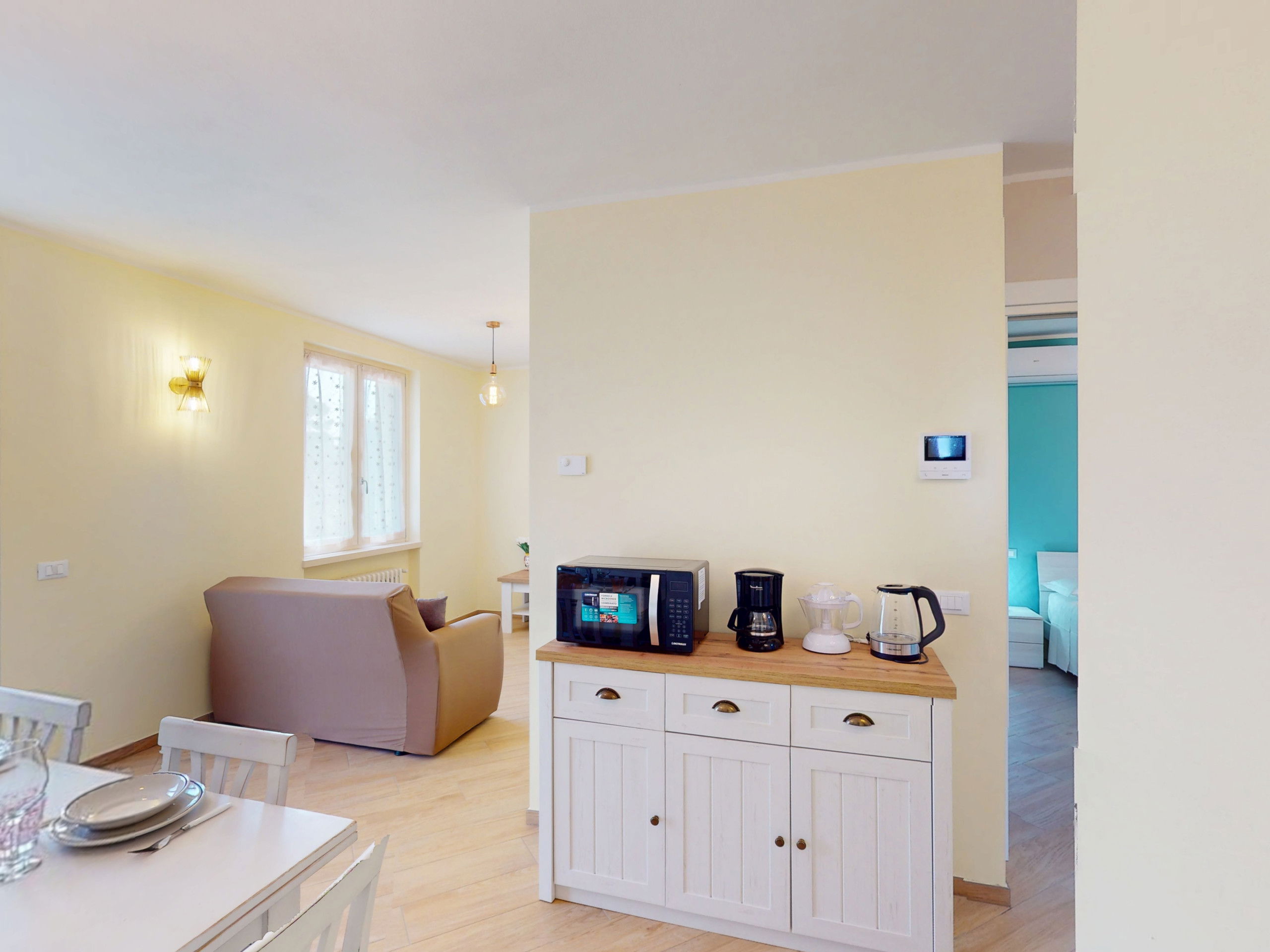 The balcony is the perfect place to enjoy the silence of the surrounding nature, ideal for an outdoor breakfast or an aperitif at sunset. The apartment, tastefully furnished and designed to ensure maximum relaxation, is perfect for couples, families or small groups who want to explore the area or simply enjoy some peace in a natural setting.
