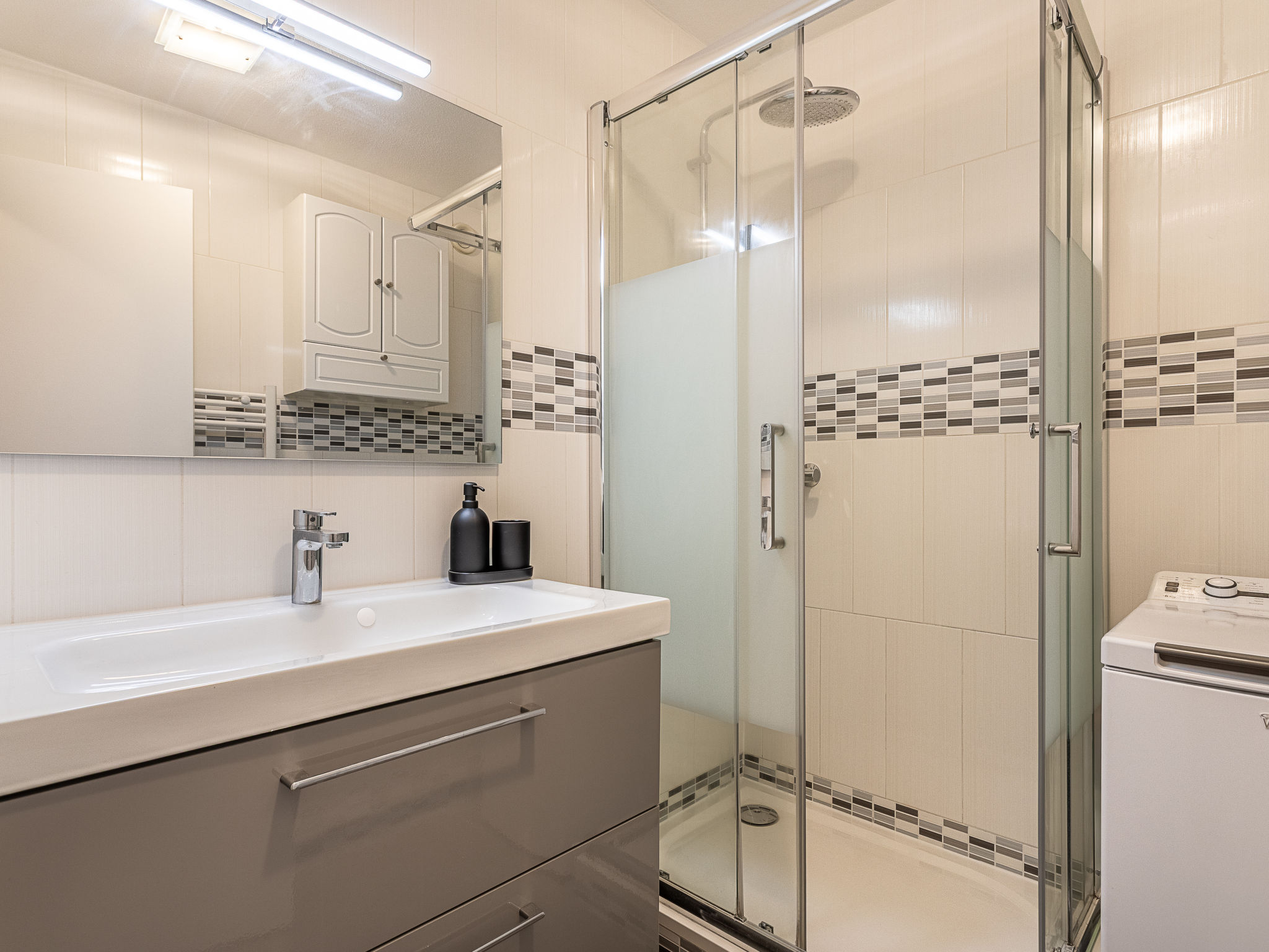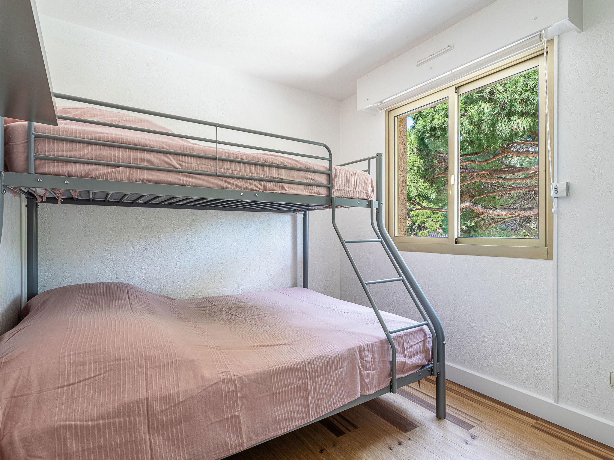 3-room apartment 42 m2 on 3rd floor. Partly renovated in 2025, comfortable and beautiful furnishings: living/dining room with 1 double sofabed (1 x 140 cm, length 190 cm), kitchen corner and TV (flat screen), air conditioning. 1 room with 1 double bed (140 cm, length 190 cm). 1 room with 1 x 1 bunk beds (80 cm, length 190 cm), 1 double bed (140 cm, length 190 cm). Kitchen-/living room (oven, 3 induction hot plates, toaster, kettle, microwave, electric coffee machine). Shower. Electric heating. Terrace 20 m2, north facing position and west facing position. Terrace furniture. Partial view of the sea. Facilities: Internet (WiFi, free). Parking space n 23. Please note: apartment carpark side. Maximum 1 pet/ dog allowed. TV only FR. Smoke alarm. Offer by a commercial proprietor according to Art. 155, IV, CGI