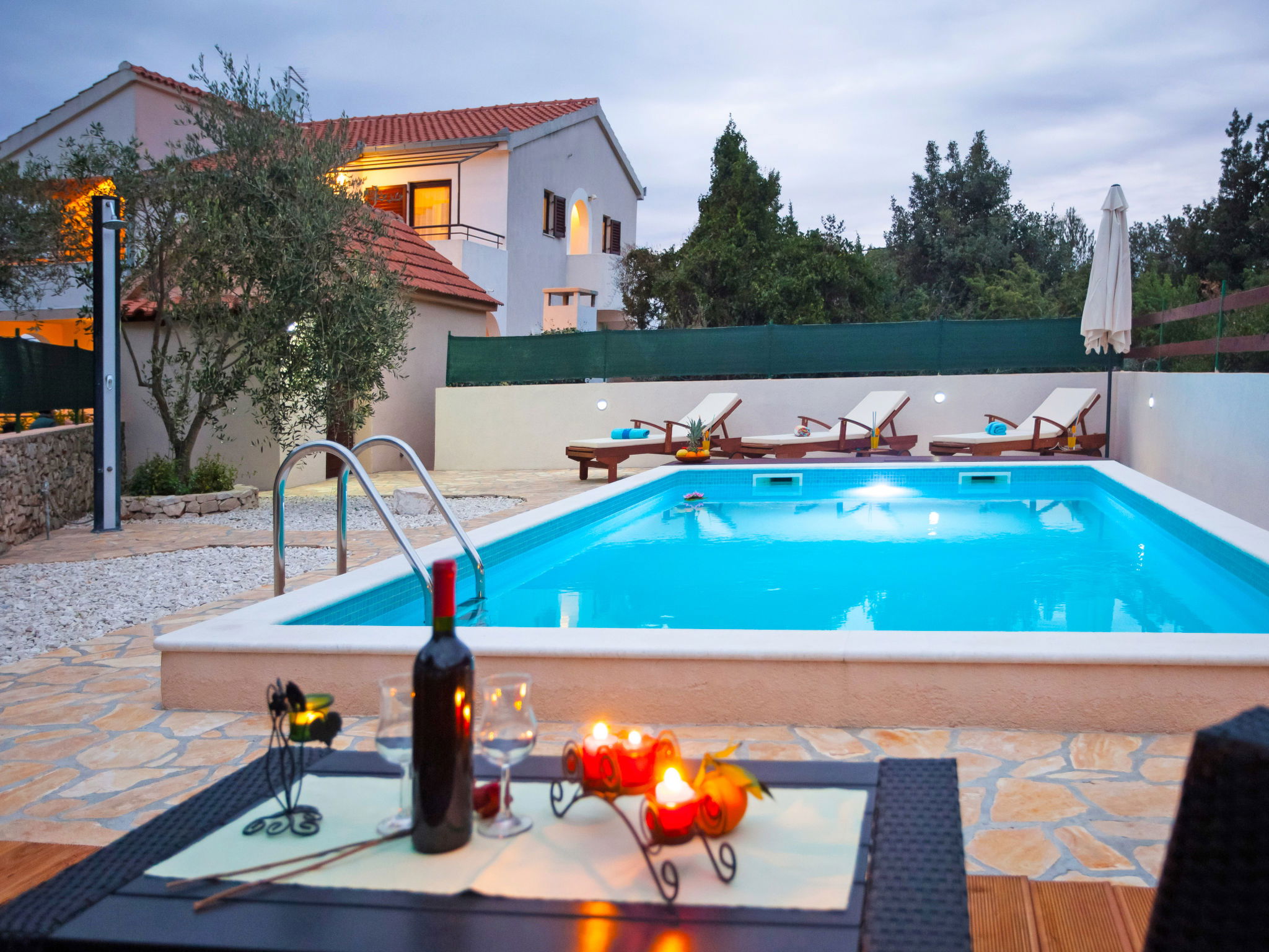 Ražanj 10 km from Rogoznica: 2-family house "Diana". In a quiet, sunny position, 300 m from the sea, 300 m from the beach. Private: swimming pool angular (21 m2, depth 150 cm, seasonal availability: 24.May. - 27.Sep.). WC in the pool area, outdoor shower, garden furniture, barbecue, pool maintenance by the owner/gardener. In the house: internet access. Parking at the house on the premises. Shop, restaurant 350 m, bus stop 5.7 km, pebble beach 800 m, rocky beach 300 m.