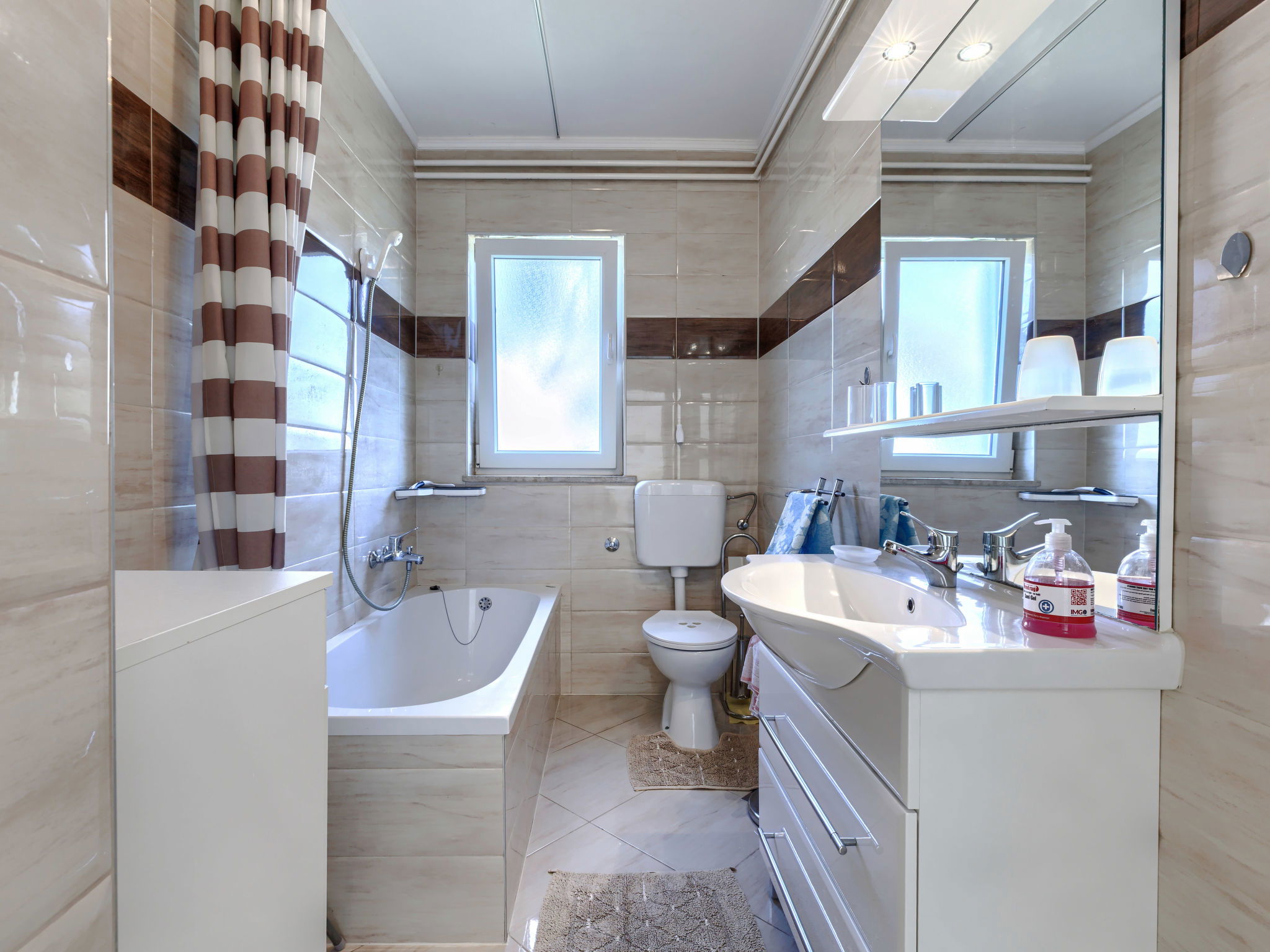 Beautiful apartment house "Jenny", 2 storeys. In the district of Špadići 2 km from the centre of Poreč, in a sunny position, 1 km from the sea, 1.5 km from the beach, in a cul-de-sac. For shared use: property 720 m2 (fenced) with plants and flowers. Terrace, garden furniture, barbecue. In the house: internet access, washing machine (for shared use). Parking at the house. Shop 400 m, restaurant 200 m, bus stop 1.8 km, pebble beach 1.5 km, rocky beach 1.5 km. Tennis 1.5 km, walking paths from the house 1 km, cycle lane 1 km.