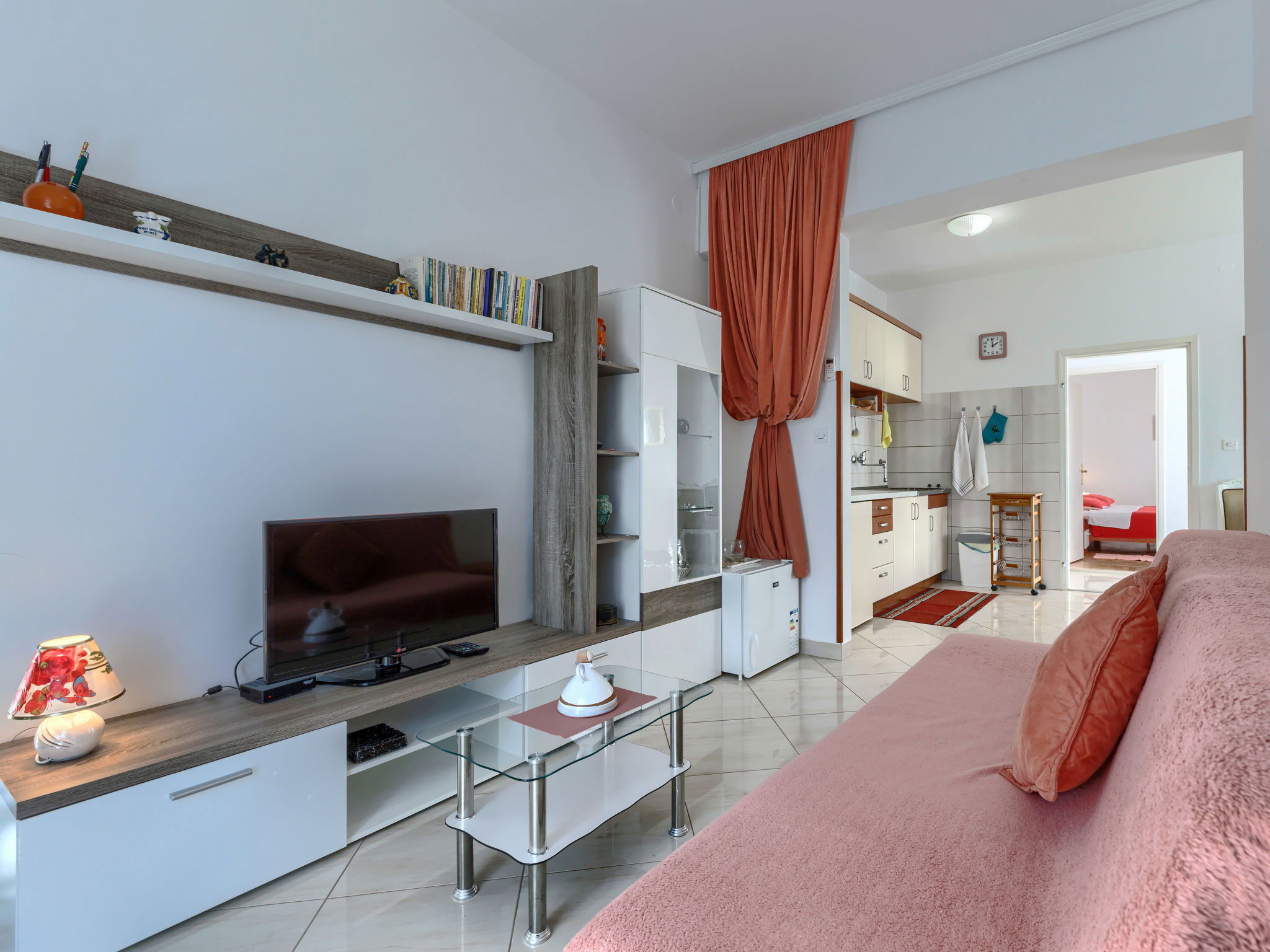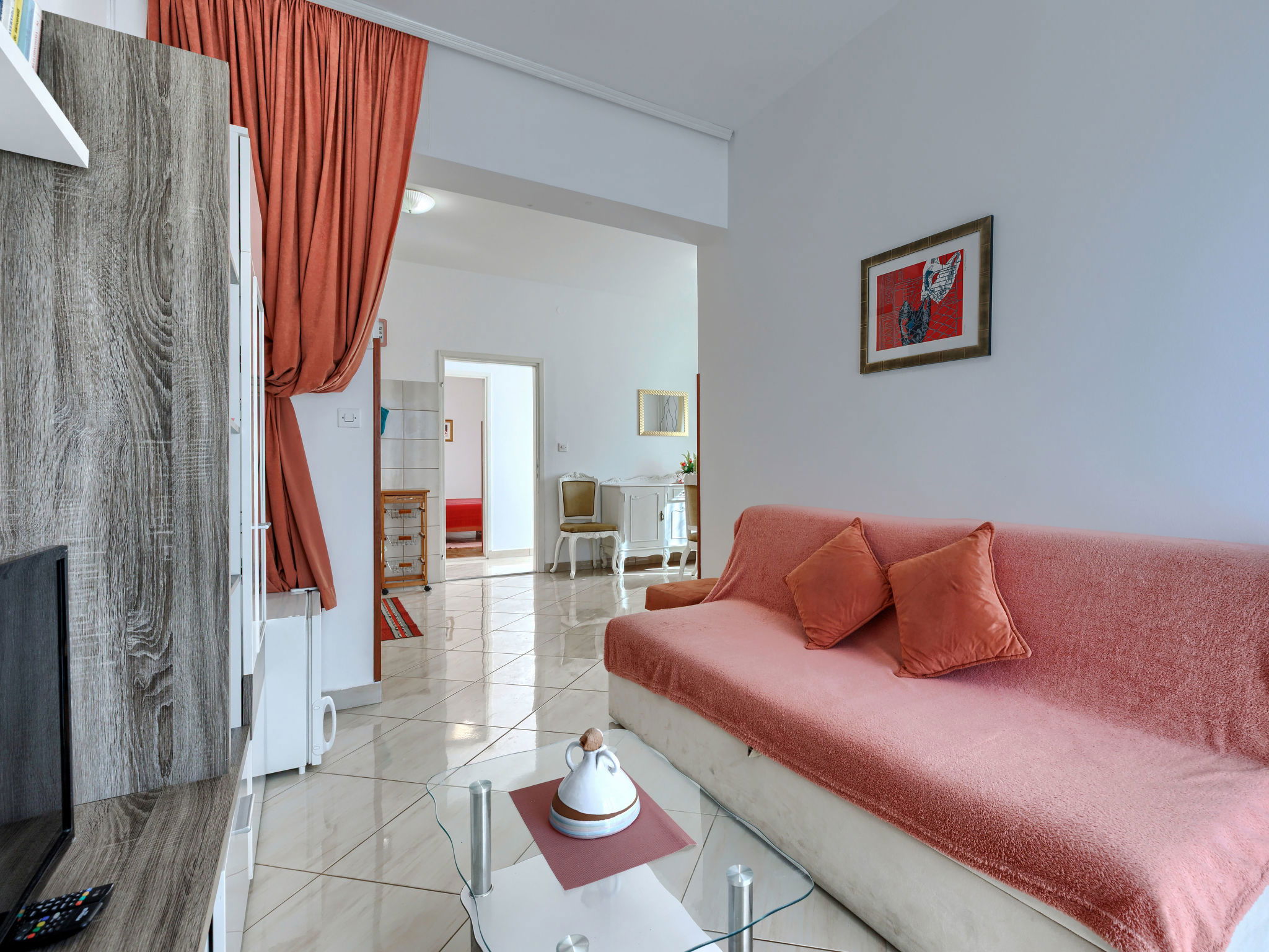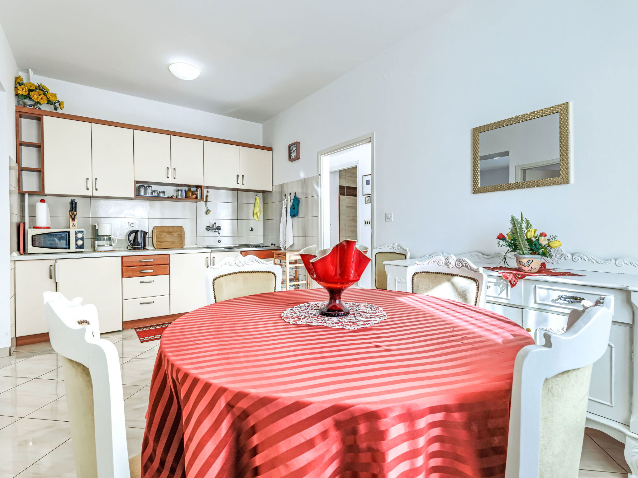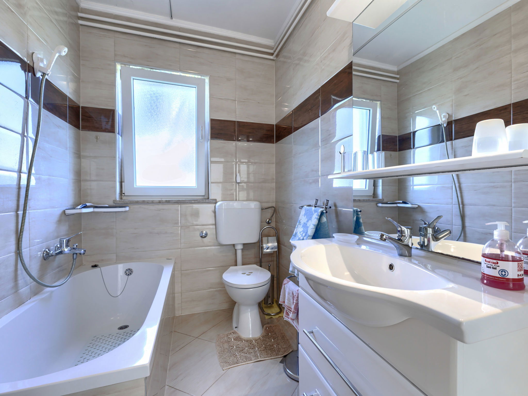 3-room apartment 70 m2, on the upper ground floor. Cosy furnishings: living/dining room with satellite TV and air conditioning. Exit to the terrace. 1 room with 1 french bed (160 cm, length 200 cm). Exit to the terrace. 1 room with 1 french bed (180 cm, length 200 cm). Exit to the terrace. Open kitchen (2 gas rings, toaster, kettle, microwave, freezer, electric coffee machine). Bath/WC. Electric heating. Terrace 5 m2, roofed terrace 3 m2. Terrace furniture. Facilities: hair dryer. Internet (WiFi, free). Please note: maximum 1 pet/ dog allowed. Private entrance.