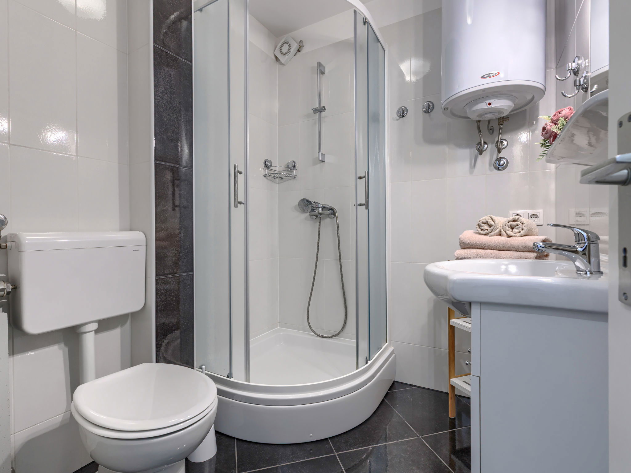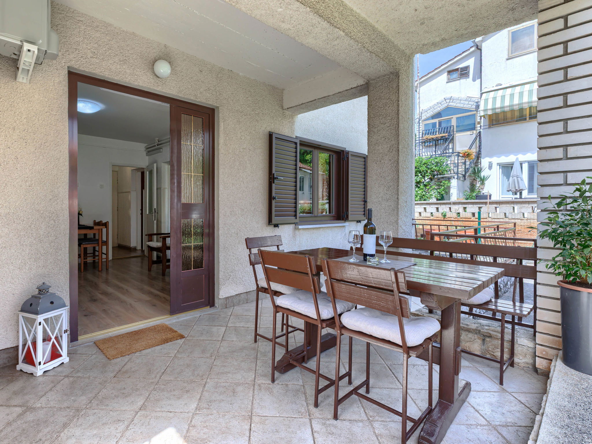 Apartment house "Zrinka". In the district of Novo Naselje 300 m from the centre of Poreč, in a quiet, sunny position, 100 m from the sea, 100 m from the beach. For shared use: property 550 m2 (fenced), small garden with lawn. Barbecue. In the house: internet access. Parking at the house on the premises. Shop 100 m, supermarket 200 m, restaurant 100 m, bus stop 1.2 km, pebble beach, rocky beach, public bathing area, concrete beach 100 m. Marina, surf school, sailing school, tennis 200 m, sports centre 500 m, walking paths from the house 150 m, cycle lane 200 m. Nearby attractions: Aquapark 3 km.