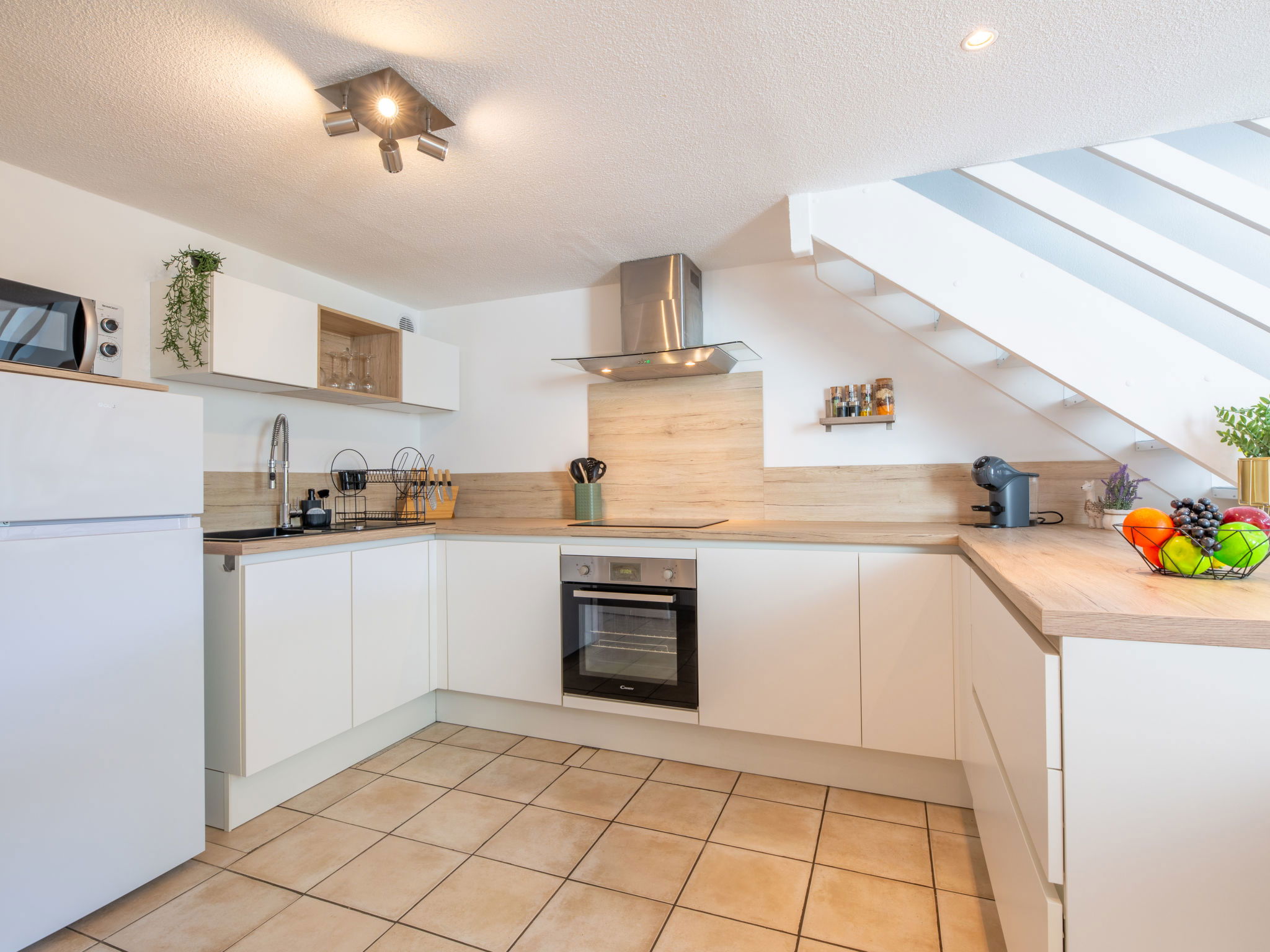 2-room apartment 54 m2 on 3rd floor. Fully renovated in 2025, modern furnishings: lounge with TV and international TV channels (flat screen), fan. Exit to the balcony. Large, open kitchen (oven, dishwasher, 3 induction hot plates, toaster, kettle, microwave, freezer, electric coffee machine, Capsules for coffee machine (Dolce gusto) extra) with dining nook. Sep. WC. Upper floor: gallery with 1 double sofabed (1 x 140 cm, length 190 cm), fan. 1 room with 1 french bed (1 x 160 cm, length 200 cm). Shower/WC. Electric heating. Balcony 8 m2, west facing position. Balcony furniture. Partial view of the sea. Facilities: iron, hair dryer. Internet (WiFi, free). Please note: maximum 1 pet/ dog allowed. TV only FR. Smoke alarm. Offer by a private individual according to Art. 155, IV of CGI. F0LBU1