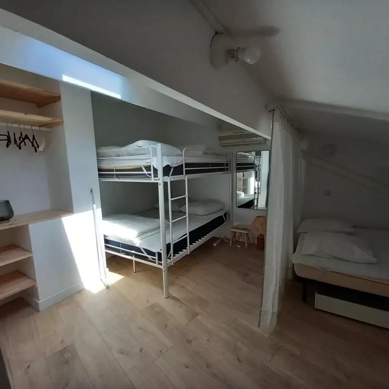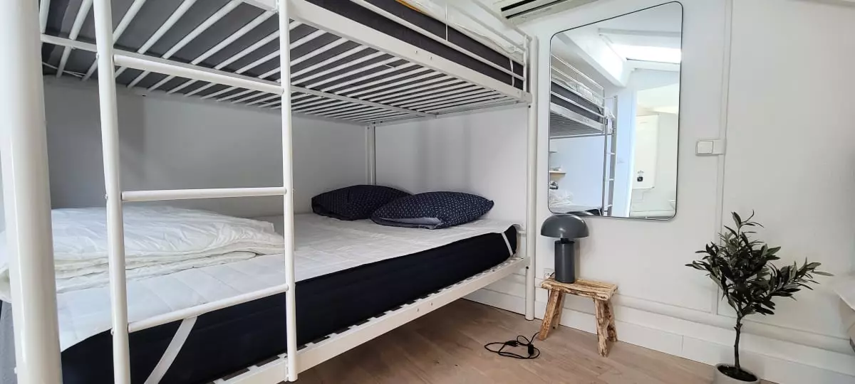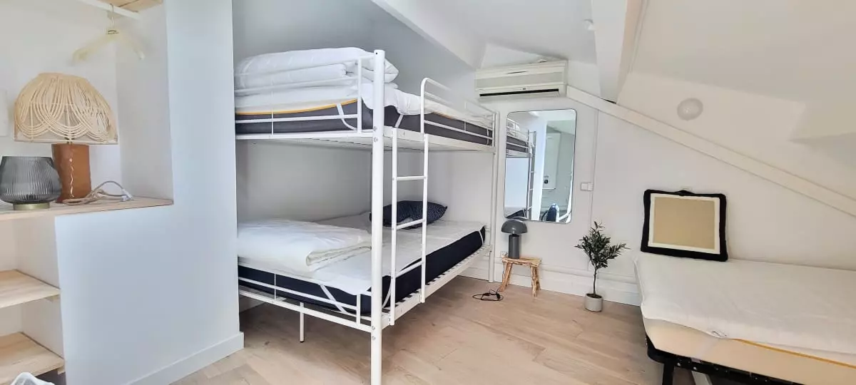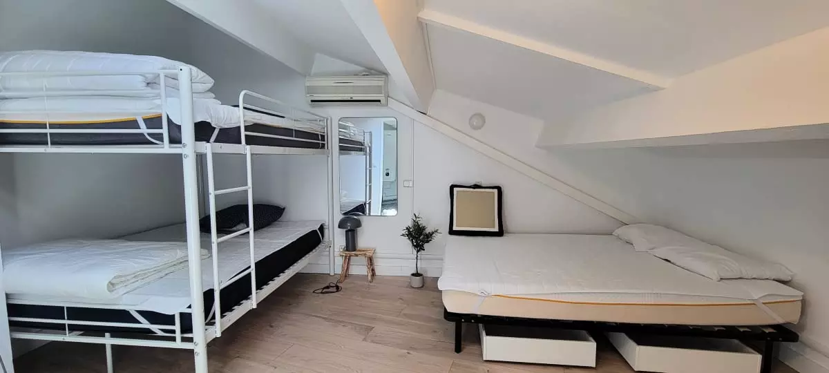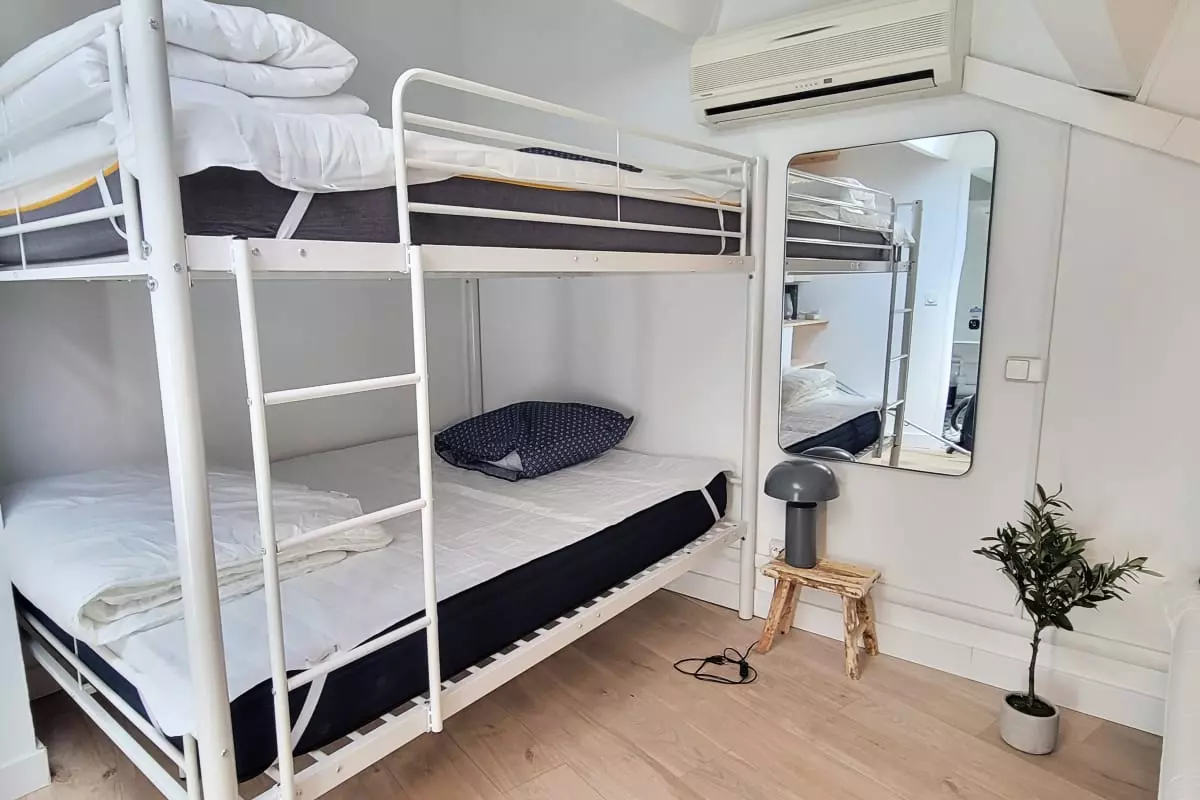 - a bedroom with a double bunk bed and a single double bed;