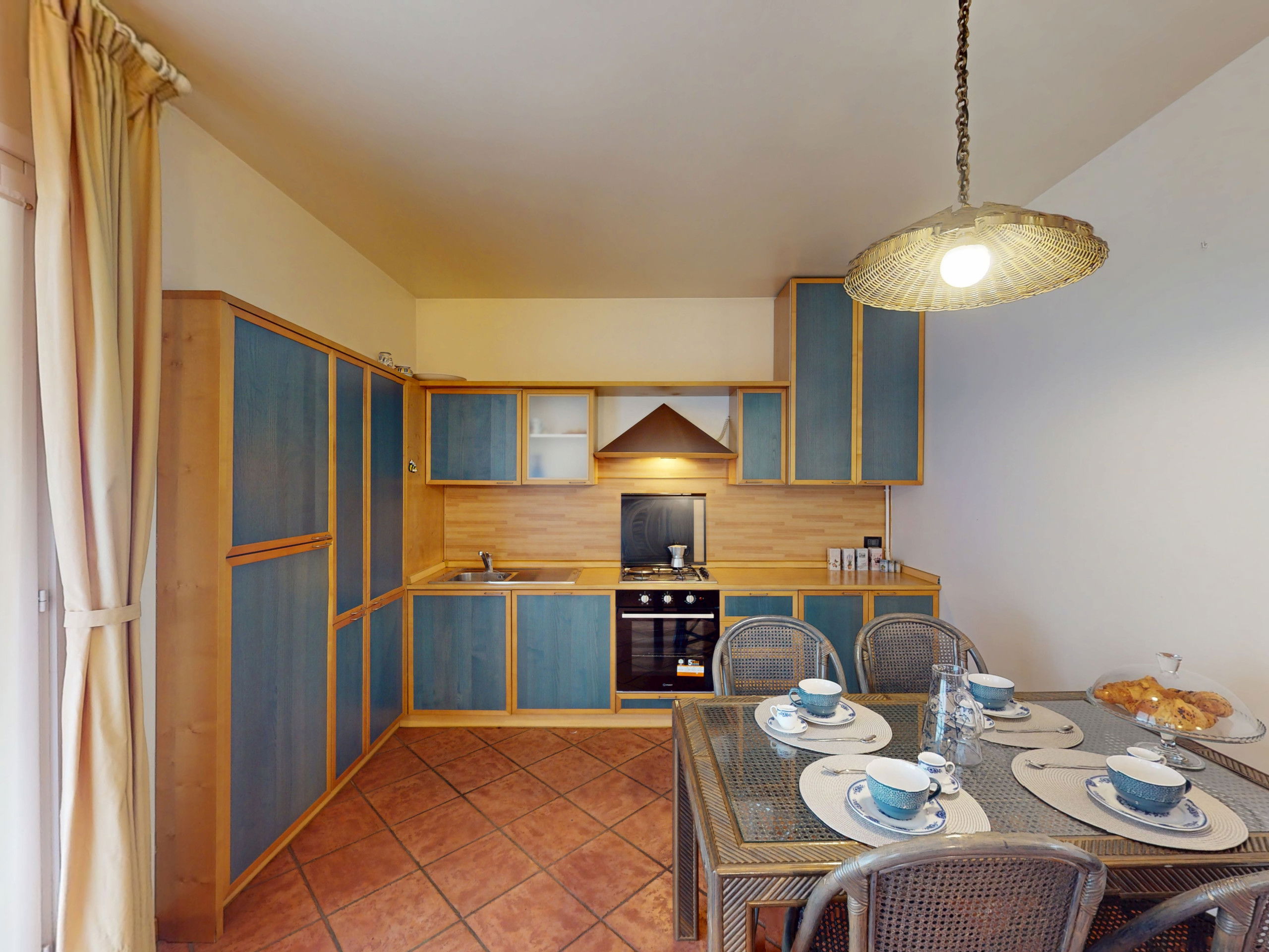 Situated in a quiet residence with few units, it offers an intimate and welcoming atmosphere, just steps away from Porto Torchio and the most renowned beaches of Lake Garda.