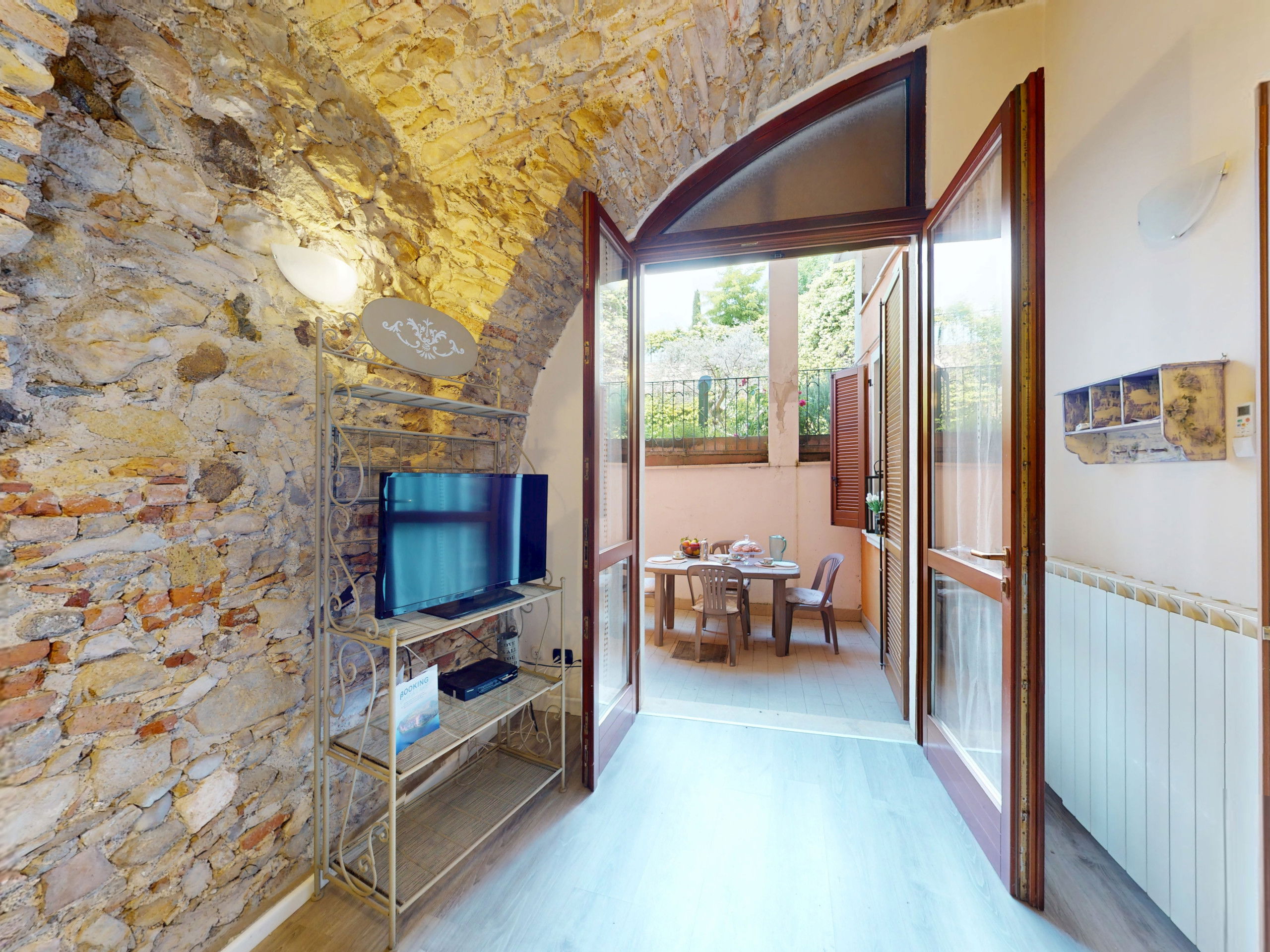 This welcoming ground floor apartment captivates with its fascinating vaulted stone ceilings, which create a unique and evocative atmosphere.