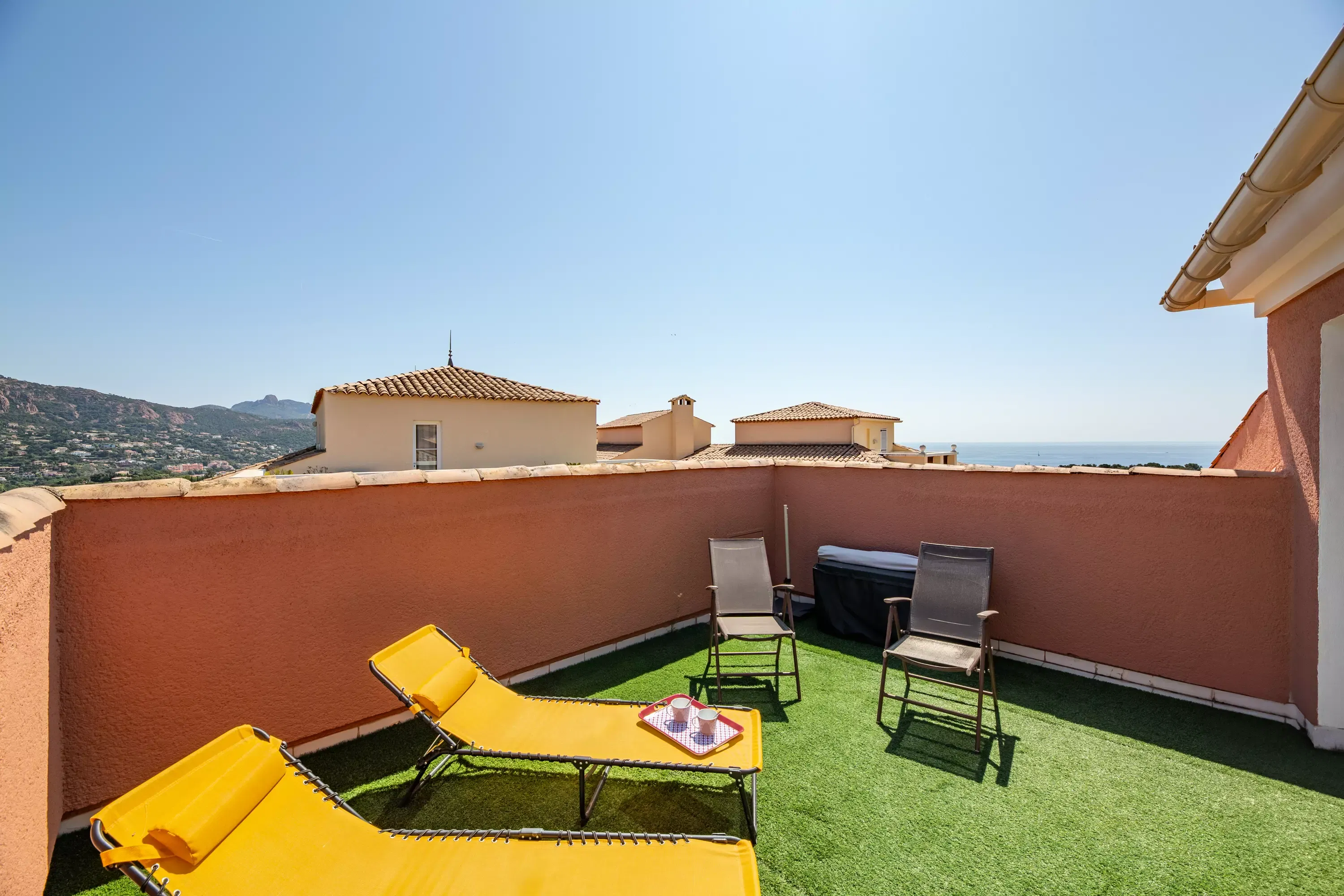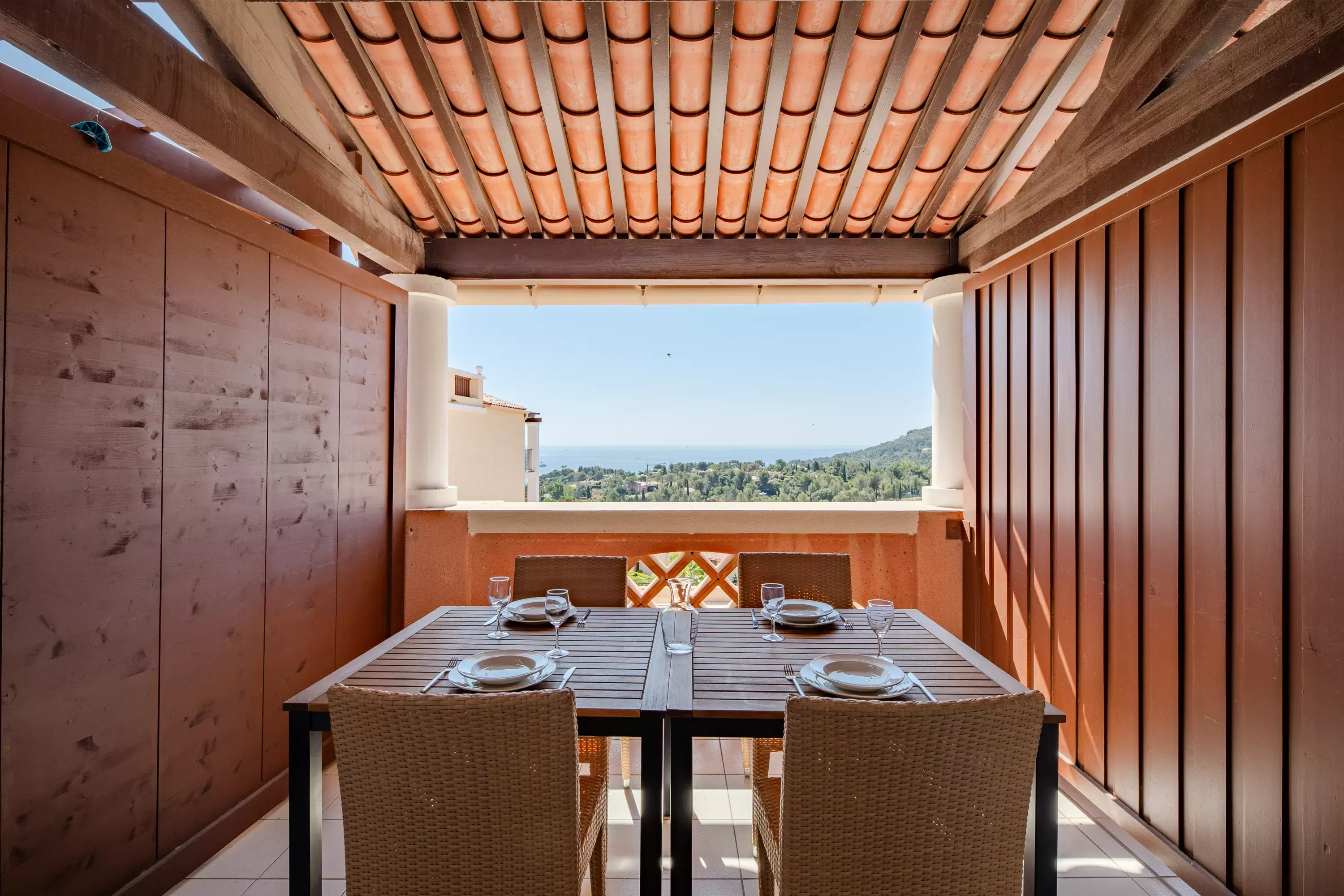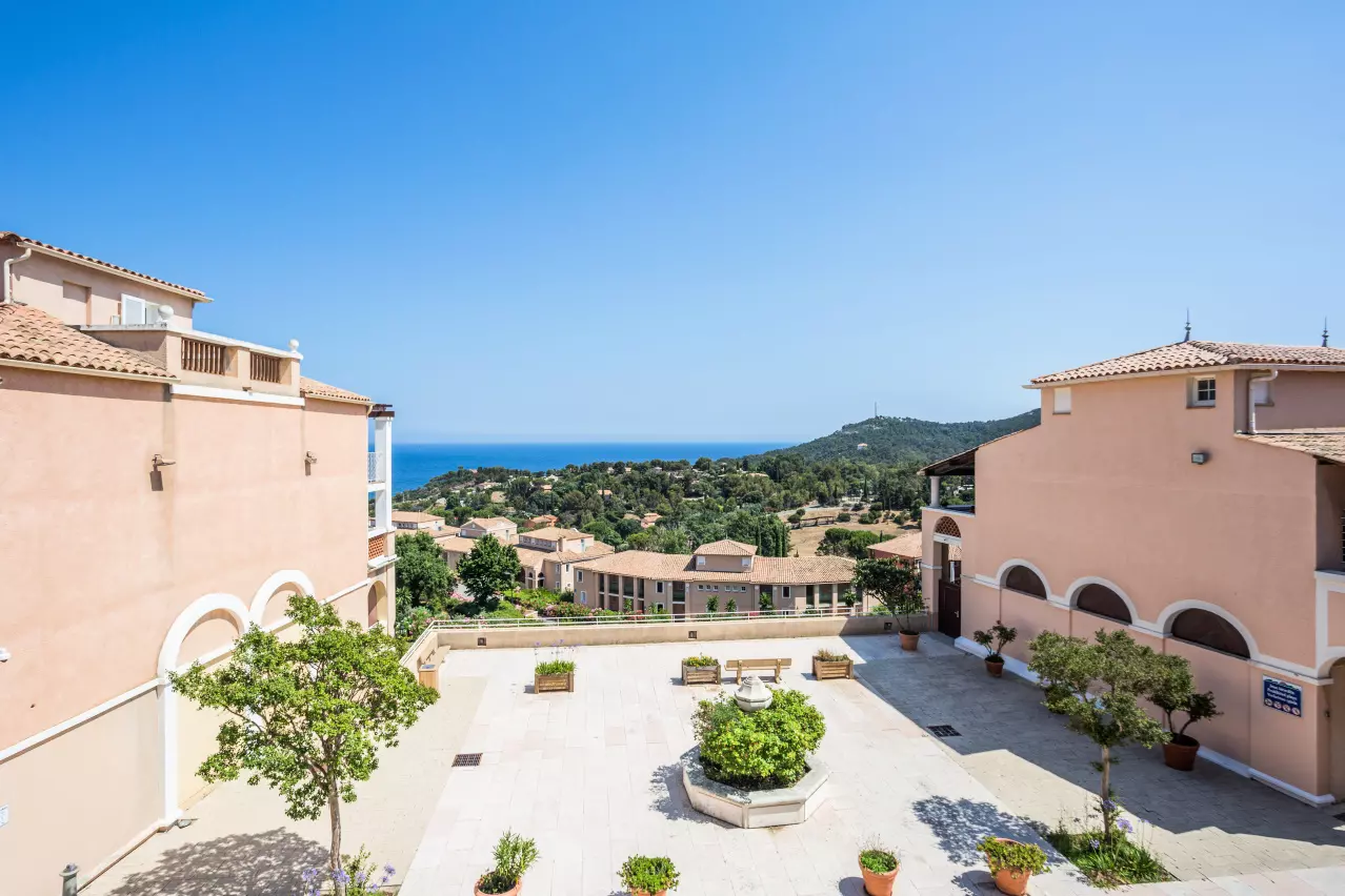 The advantages of your rental: Air-conditioned apartment with cabin area, located on the 2nd floor in the village center, with sea view, covered terrace facing southeast. Less than 100 m from shops and activities, can accommodate up to 7 people. You will appreciate its decoration and its amenities including parking, dishwasher, 2 bathrooms perfect for your stay with family or friends in Cap Esterel.