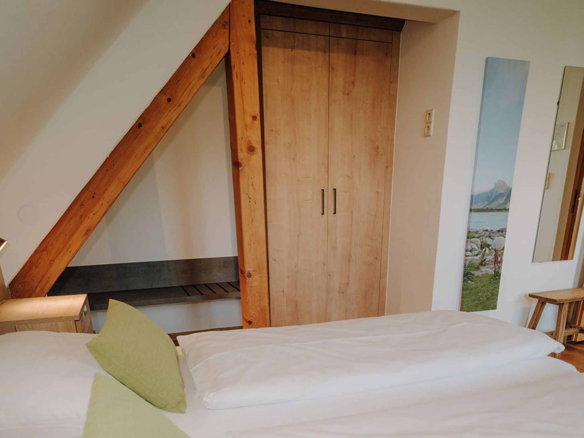 "Grimming", 3-room apartment 73 m2 on 2nd floor. Object suitable for 4 adults + 2 children. Partly with sloping ceilings, cosy furnishings: living/dining room with dining nook. 1 double bedroom with satellite TV and international TV channels (flat screen). Exit to the balcony. 1 room with 1 x 2 bunk beds, 1 double bed, satellite TV and international TV channels (flat screen). Open kitchen (oven, dishwasher, 4 induction hot plates, toaster, kettle, microwave, electric coffee machine). 2 showers/WC. Heating. Parquet floors. Balcony. Balcony furniture. Marvellous distant view of the mountains. Facilities: Internet (WiFi, free). Please note: non-smokers only. Maximum 1 pet/ dog allowed.