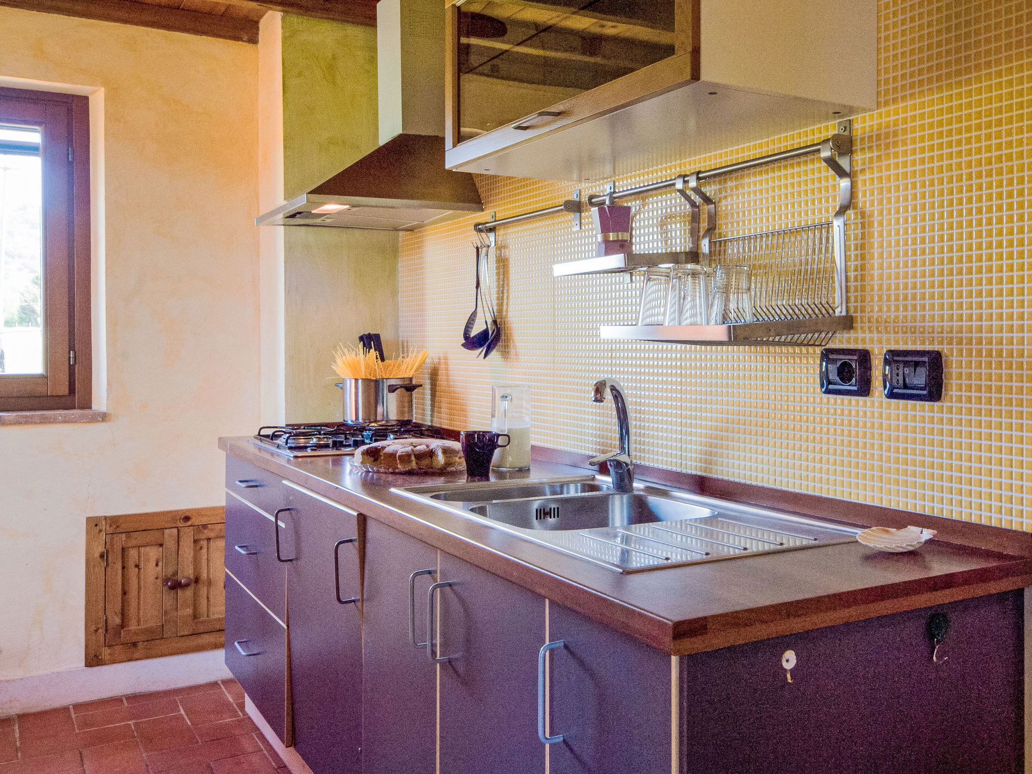 "Casa Alessandro n° 6", 2-room apartment 50 m2. Rustic furnishings: living/dining room with 1 double sofabed, dining table and TV. Exit to the terrace. 2 double bedrooms. Exit to the garden, to the veranda. 1 room with 1 double bed. Exit to the garden. Kitchenette (dishwasher, 4 gas rings, toaster, freezer, electric coffee machine). 2 showers/bidet/WC. Gas heating. Terrace roofed, patio, garden. Terrace furniture, deck chairs (2). Panoramic view of the countryside and the resort. Facilities: baby cot. Internet (WiFi, free). Please note: non-smoking house. 1 small pet/ dog allowed.