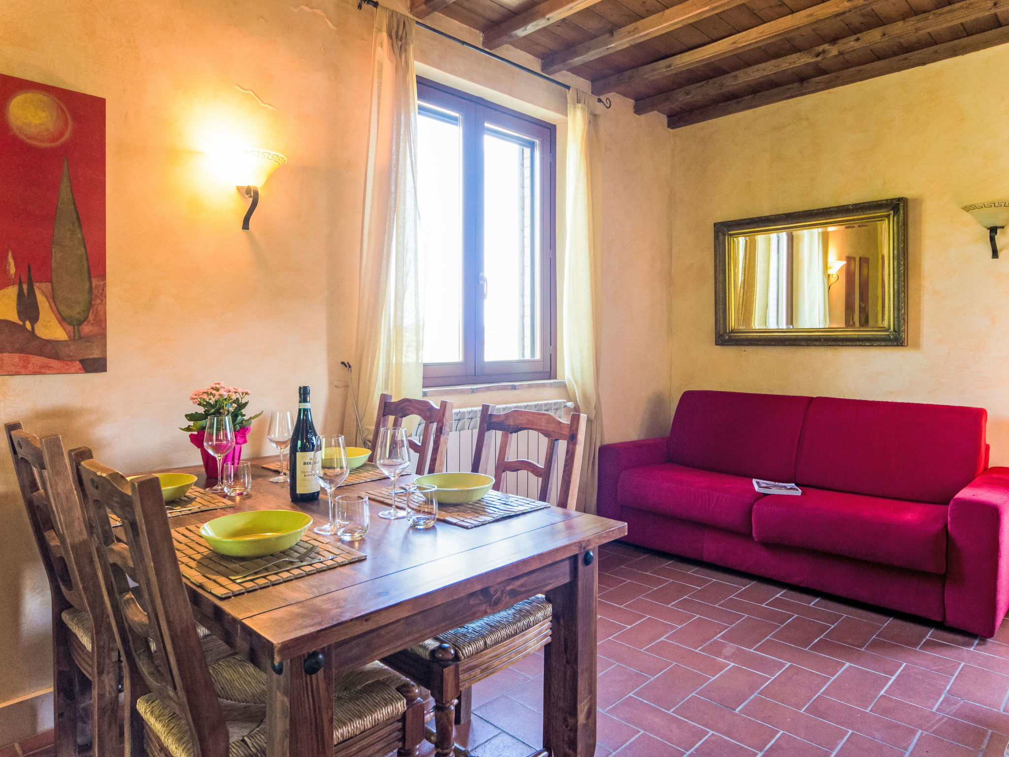 Beautiful, cosy country house "Podere La Cavallara", surrounded by fields. 6 apartments in the residence. 4 km from the centre of Montefiascone, 17 km from the centre of Viterbo, 85 km from the centre of Roma, 1.5 km from the lake. For shared use: property 2'500 m2, well-kept garden with lawn and trees, swimming pool (12 x 6 m, depth 140 - 150 cm, seasonal availability: 16.May. - 03.Oct.) with salt-electrolysis pool-cleaning system. Outdoor shower, garden furniture, barbecue, children's playground. In the complex: WiFi, hot tub (extra). Washing machine (for shared use), bicycles available. Motor access (200 m via unmade road). Roofed, parking on the premises. Shop 1.5 km, supermarket 4 km, bus stop 2.8 km, railway station "Montefiascone" 7 km, sandy beach "Lido Di Tarquinia" 50 km, grass beach "Lago Di Bolsena" 1.5 km, thermal baths "Terme Dei Papi" 26 km, bathing lake "Lago di Bolsena" 1.5 km. Nearby attractions: Bolsena 18 km, Civita Di Bagno Regio 18 km, Viterbo 19 km, Grottte Di Castro 25 km, Orvieto 30 km, Pitigliano 40 km. Please note: car recommended.