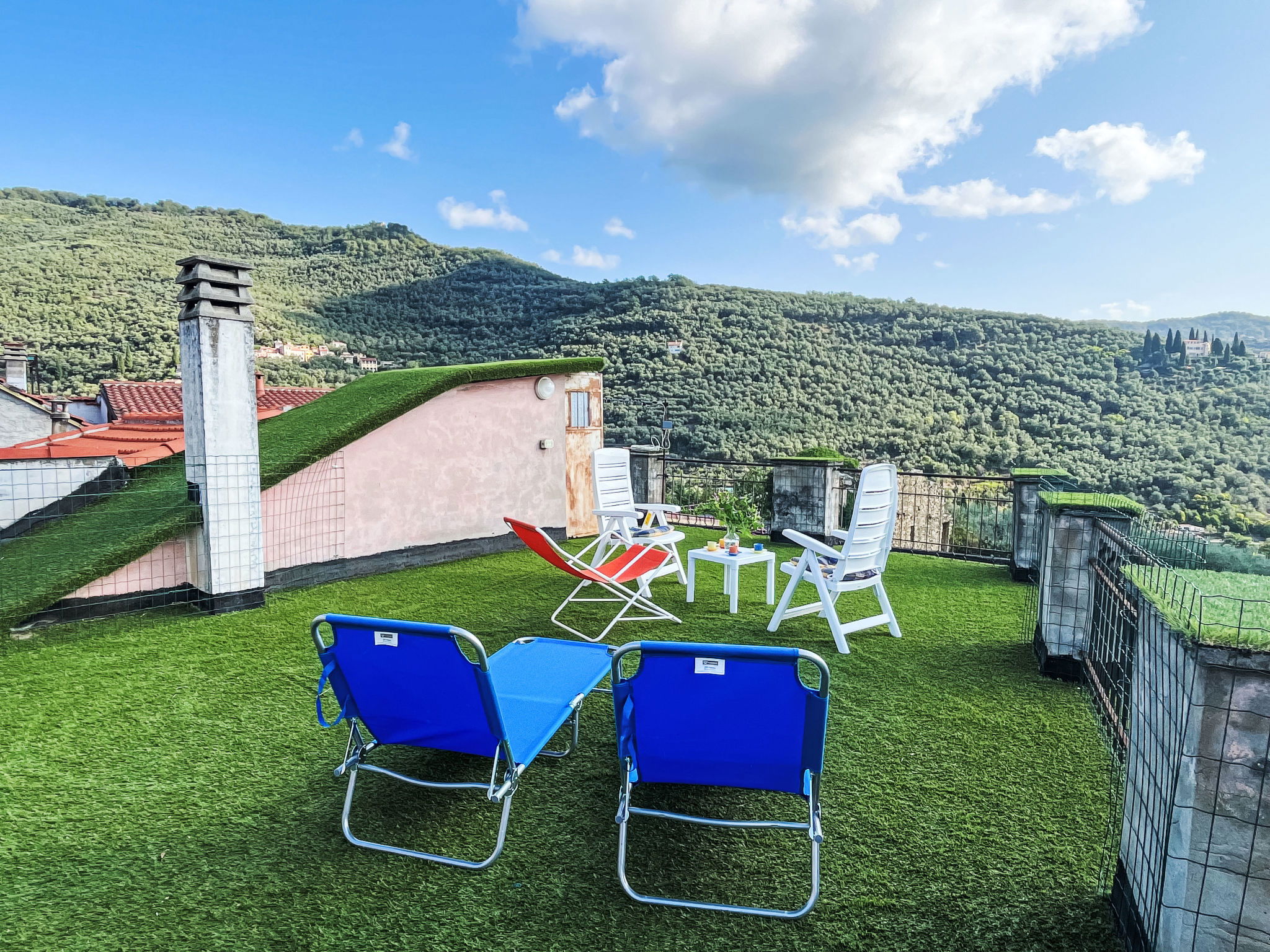 "Ca´de scia Biancotta", 4-room apartment 120 m2, on the upper floor. Bright, antique and cosy furnishings: living/dining room with TV. 1 room with 1 double bed (1 x 170 cm, length 200 cm). 1 room with 2 beds (90 cm, length 200 cm). 1 room with 1 french bed (1 x 130 cm, length 190 cm). Kitchen (2 ceramic glass hob hotplates, toaster, kettle, microwave, freezer, electric coffee machine, Capsules for coffee machine (DeLonghi) extra) with dining table. Exit to the terrace. Hip bath/bidet/WC. No heating option. Terrace 15 m2, terrace 25 m2. Terrace furniture, barbecue, deck chairs. Beautiful panoramic view of the mountains, the valley and the resort. Facilities: Internet (WiFi, free). Please note: non-smokers only. Maximum 1 pet/ dog allowed. Private entrance, smoke alarm, fire extinguisher. IT008047C2YKYODJ4F