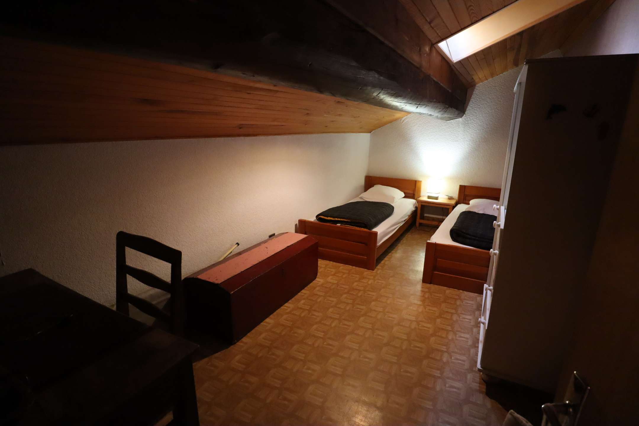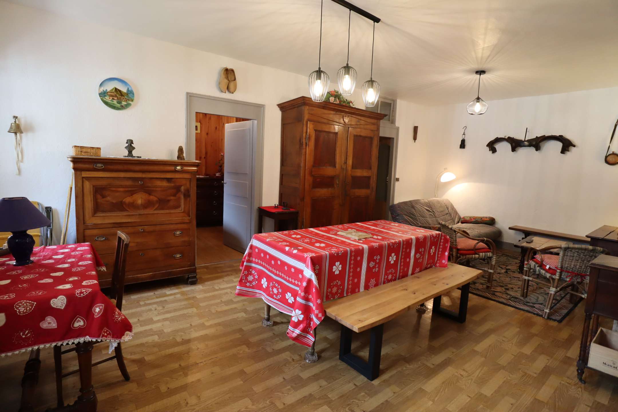 This charming 75 m² apartment, located on the 1st floor of a typical chalet in the village, consists of a separate kitchen, a living room, a shower room and a toilet. Its south-facing balcony allows you to fully enjoy village life.