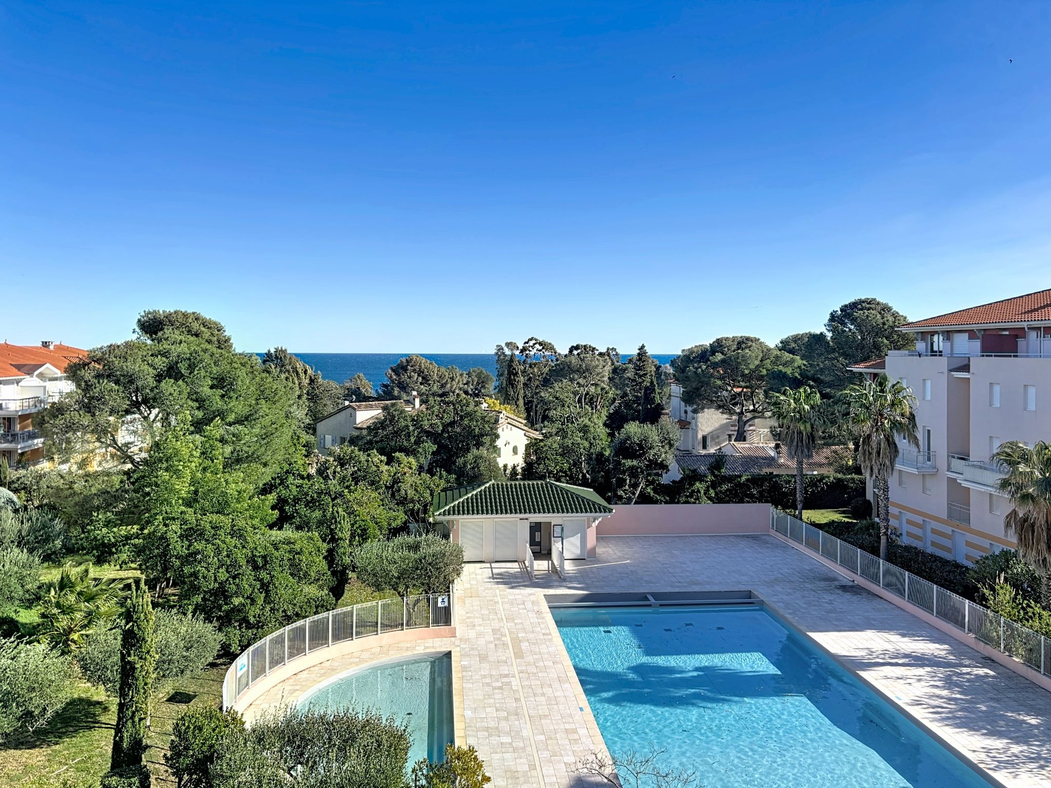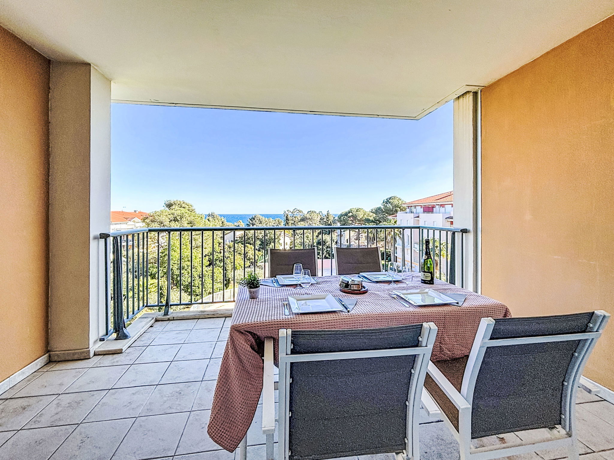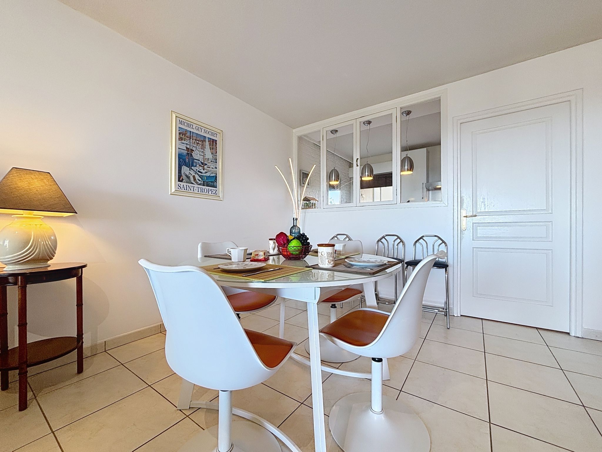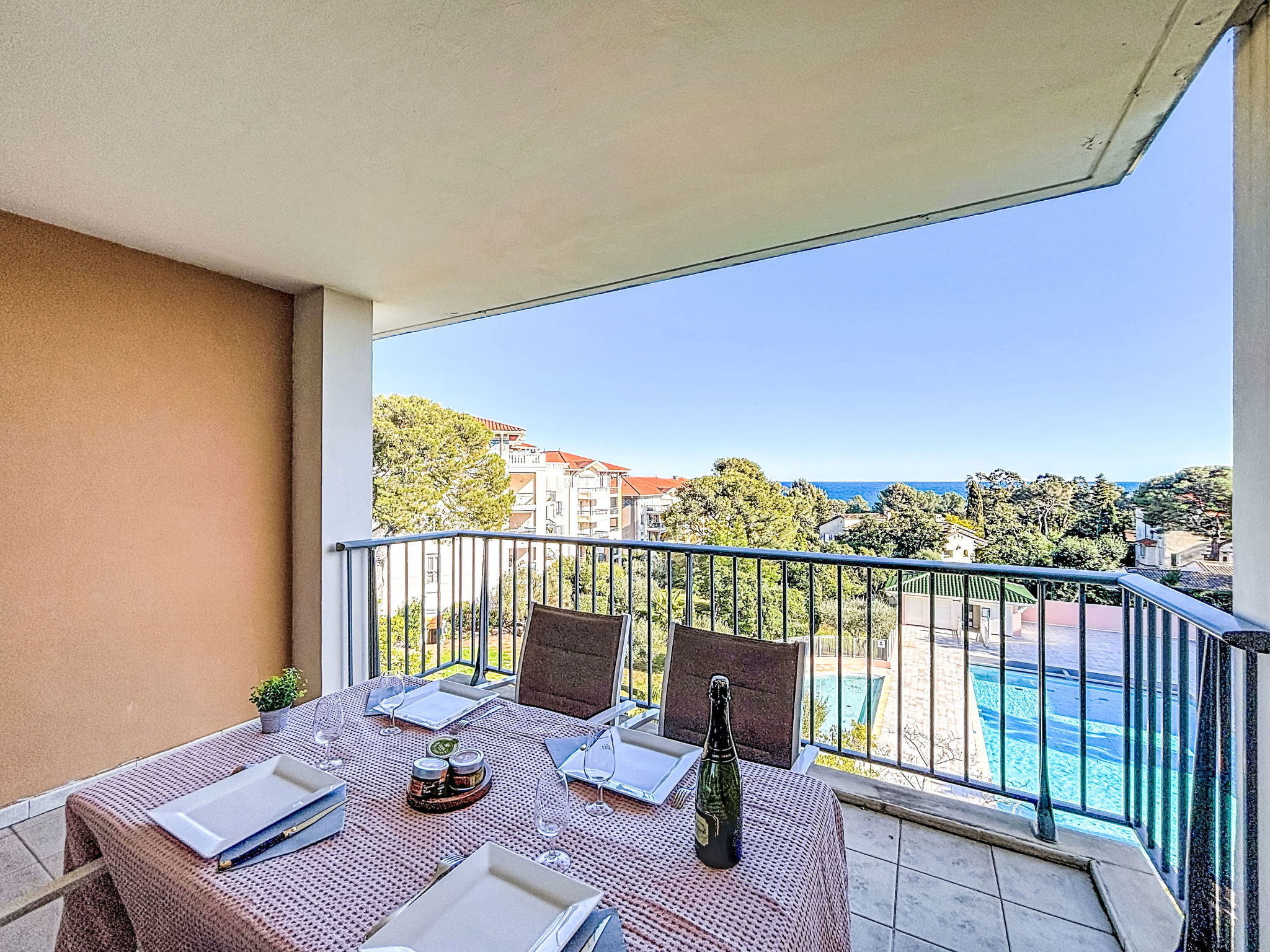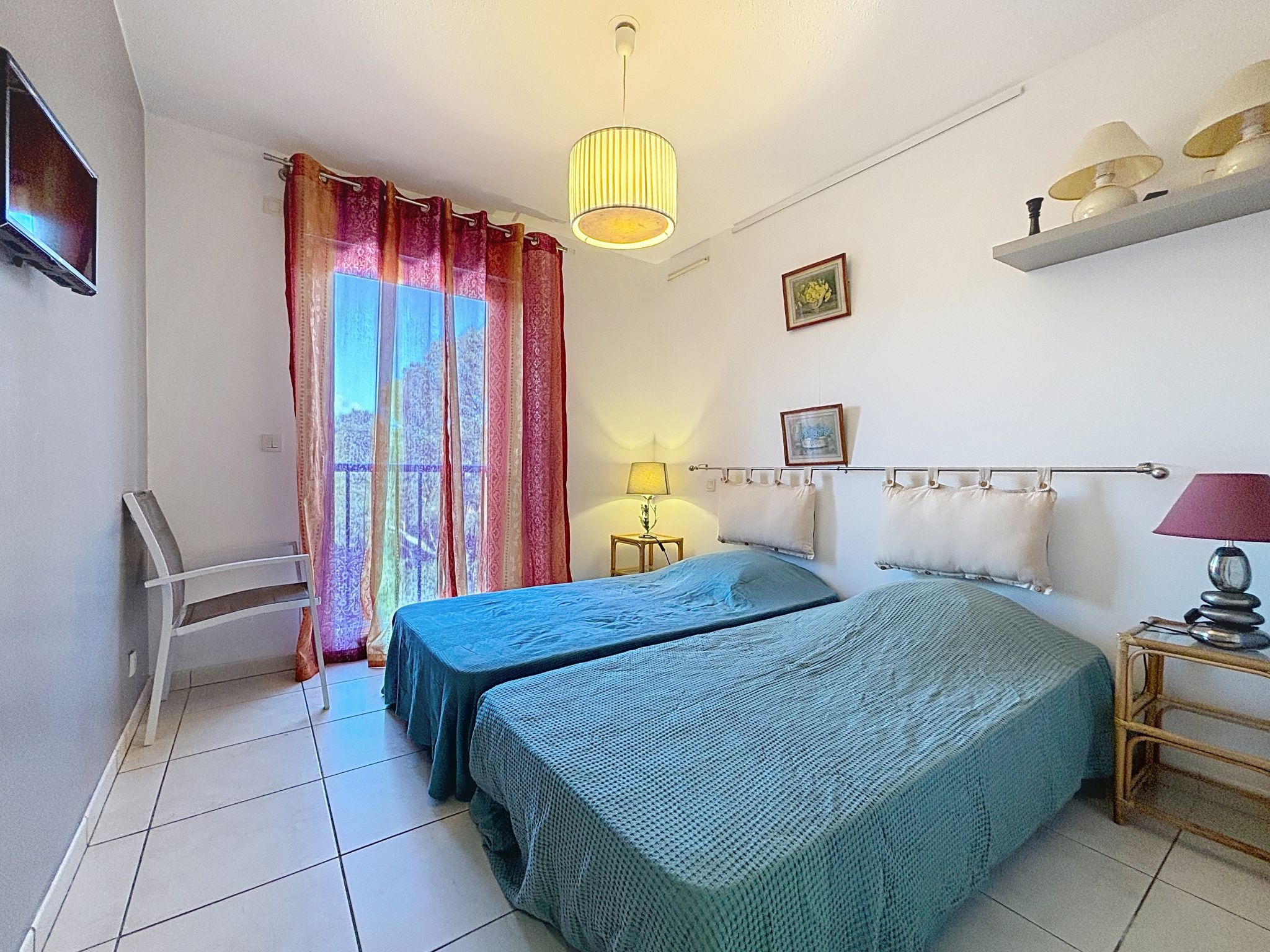 3-room apartment 79 m2 on 3rd floor. Comfortable and modern furnishings: living/dining room with panoramic window with TV (flat screen), DVD and electric shutters. Exit to the terrace. 1 room with 1 french bed (1 x 140 cm, length 190 cm), shower. 1 room with 2 beds (90 cm, length 190 cm). Large kitchen (dishwasher, 4 ceramic glass hob hotplates, toaster, kettle, freezer, electric coffee machine, Capsules for coffee machine (Nespresso), combination microwave). Exit to the balcony. Shower, sep. WC. Air-conditioning. Balcony 8 m2, north facing position terrace 12 m2, south-east facing position. Terrace furniture. Beautiful view of the sea, the swimming pool and the garden. Facilities: washing machine, iron, hair dryer. Internet (WiFi, extra). Garage space n 34, height 190 cm, width 230 cm. Please note: suitable for families. Maximum 1 pet/ dog allowed. TV only FR. Smoke alarm. Offer by a private individual according to Art. 155, IV of CGI. GOARHM