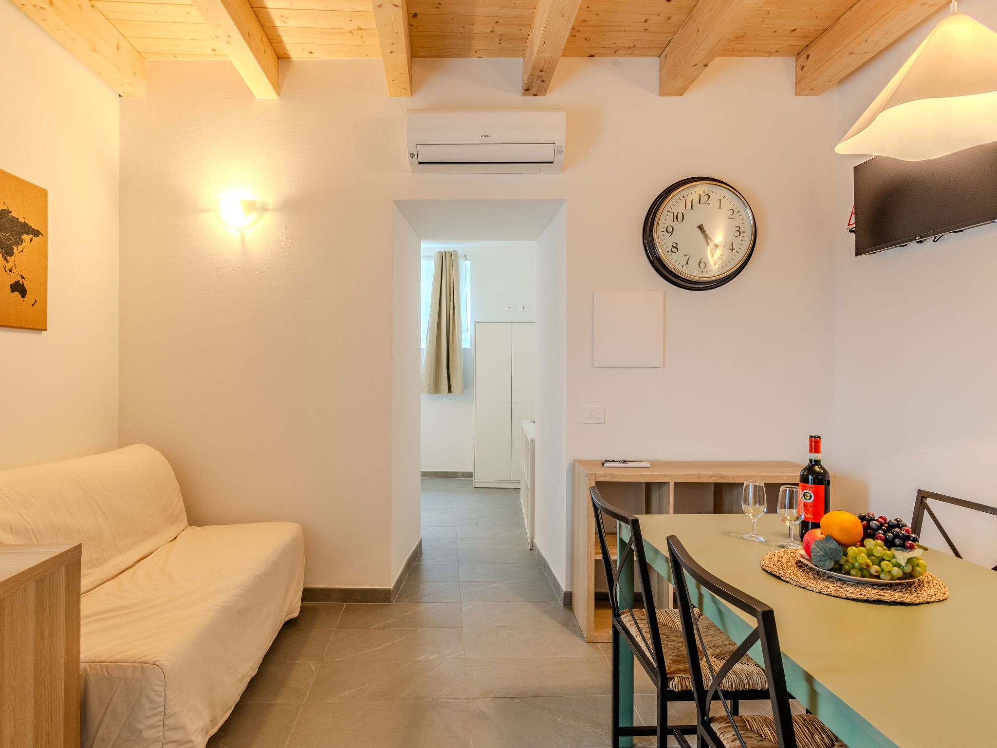 "Alture", 2-room apartment 47 m2, on the upper ground floor. Comfortable furnishings: open living/sleeping room with 1 sofabed (140 cm), TV. Exit to the terrace. 1 open room with 1 double bed. Open kitchen (oven, dishwasher, 4 induction hot plates, toaster, microwave, electric coffee machine) with dining table. Shower/bidet/WC. Air-conditioning. Terrace. Terrace furniture, deck chairs (2). Beautiful view of the countryside. Facilities: washing machine, children's high chair, baby cot for up to 2 year olds, hair dryer. Internet (WiFi, free). Parking (1 car). Please note: non-smokers only. Maximum 1 pet/ dog allowed. Fire extinguisher. IT097023C243QWIDWU