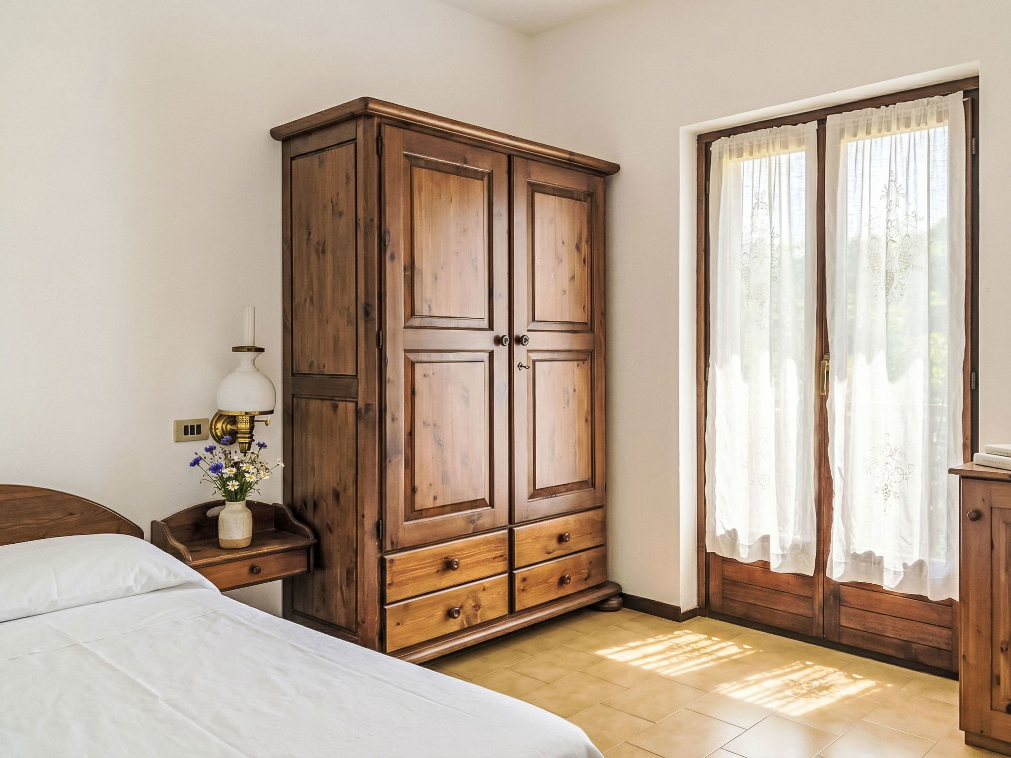 3-room apartment 70 m2 on 2 levels. Comfortable furnishings: open living/dining room with open-hearth fireplace (only for decoration), dining table and TV. Exit to the garden, to the balcony. Open kitchen (oven, 4 gas rings, toaster, kettle, microwave). Upper floor: 1 room with 1 double bed. 1 room with 2 beds. Exit to the balcony. Bath/bidet/WC. Gas heating. Balcony, garden. Balcony furniture, barbecue, deck chairs. Marvellous view of the lake and the countryside. Facilities: washing machine, hair dryer. Internet (WiFi, free). Parking (1 car). Please note: non-smokers only. Maximum 1 pet/ dog allowed. Smoke alarm, fire extinguisher. IT097032C27TFJAHM8