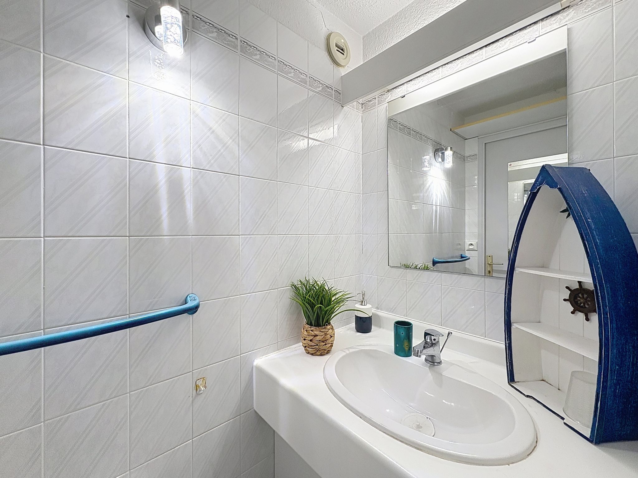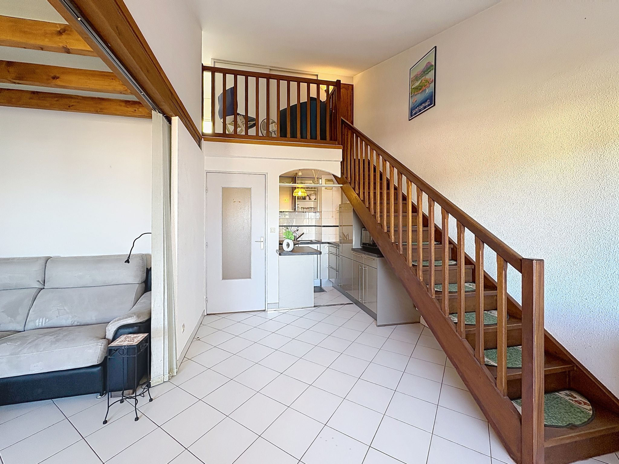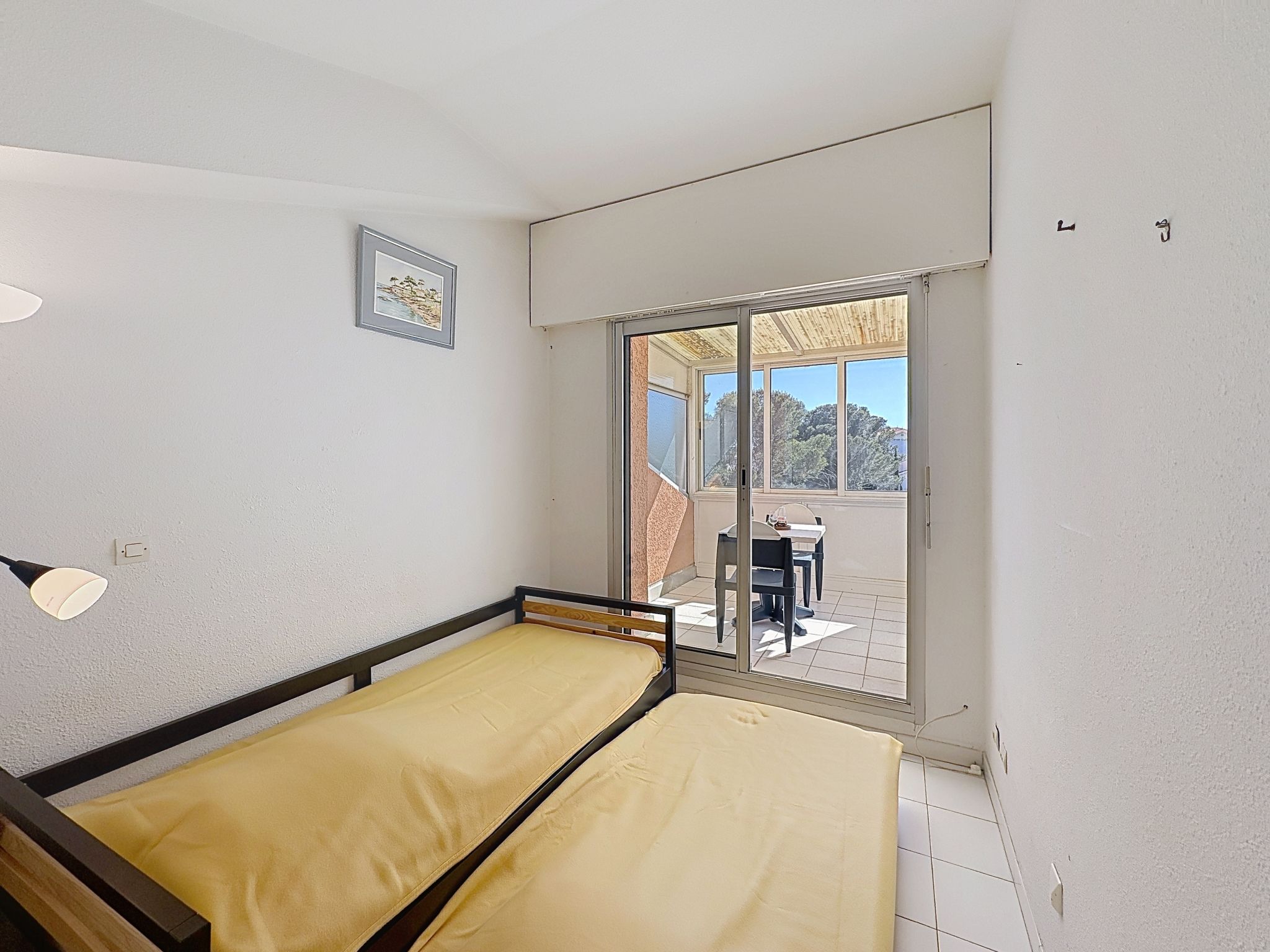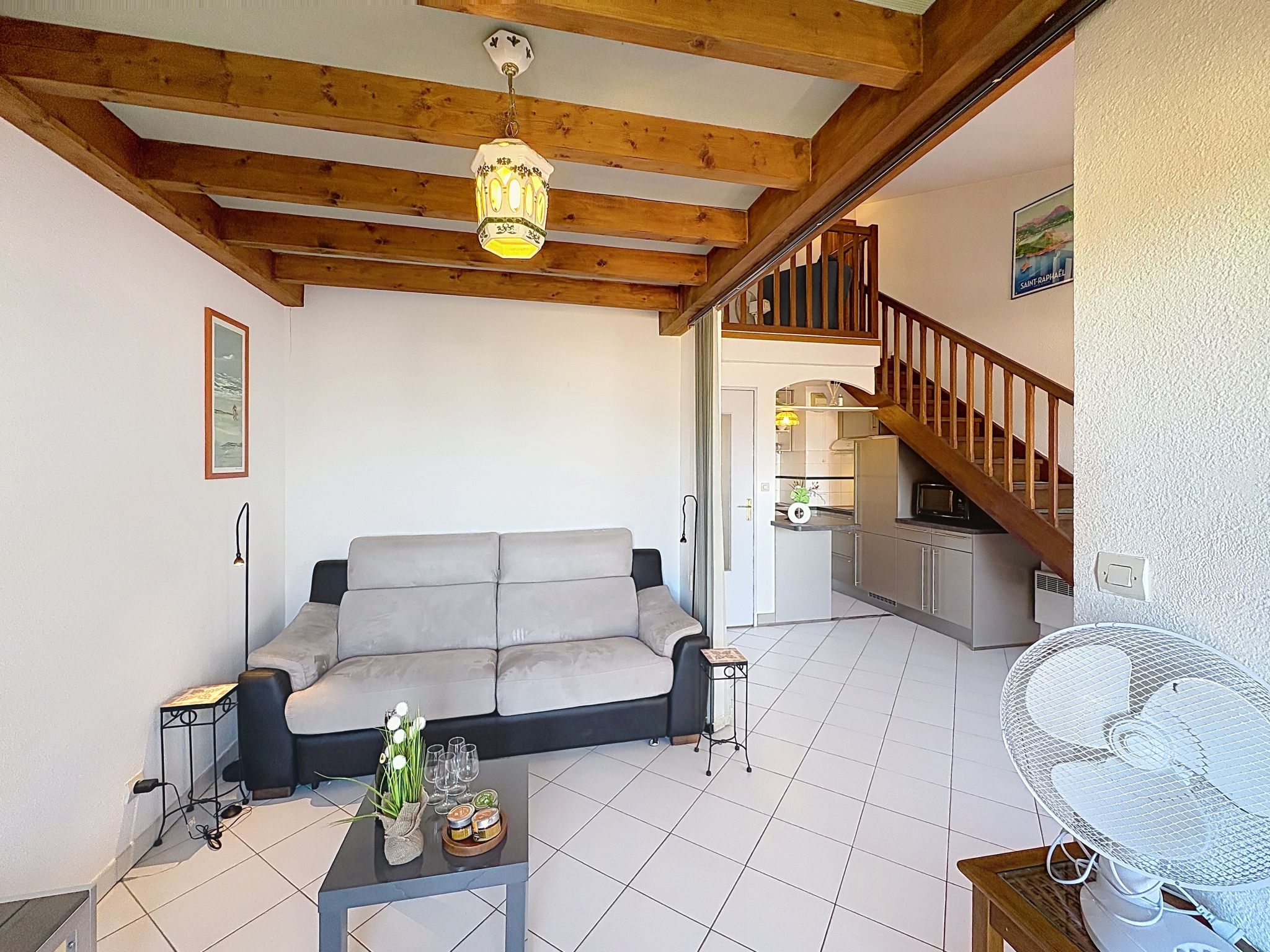 2-room apartment 45 m2 on 2 levels on 4th floor. Beautiful furnishings: living/sleeping room with 1 double sofabed (1 x 140 cm, length 190 cm), TV (flat screen). Exit to the balcony. Open kitchen (dishwasher, 2 induction hot plates, toaster, kettle, electric coffee machine, combination microwave). Shower, sep. WC. Electric heating. Upper floor: 1 room with 1 pull-out bed (1 pers. 2 x 90 cm, length 190 cm). Exit to the terrace. Bath/WC. Electric heating. Terrace 4 m2, terrace 6 m2. Terrace furniture. Beautiful view of the sea. Facilities: washing machine, iron, hair dryer. Internet (WiFi, extra). Please note: maximum 1 small pet/ dog allowed. TV only FR. Smoke alarm. Offer by a private individual according to Art. 155, IV of CGI. FJS2538HTR