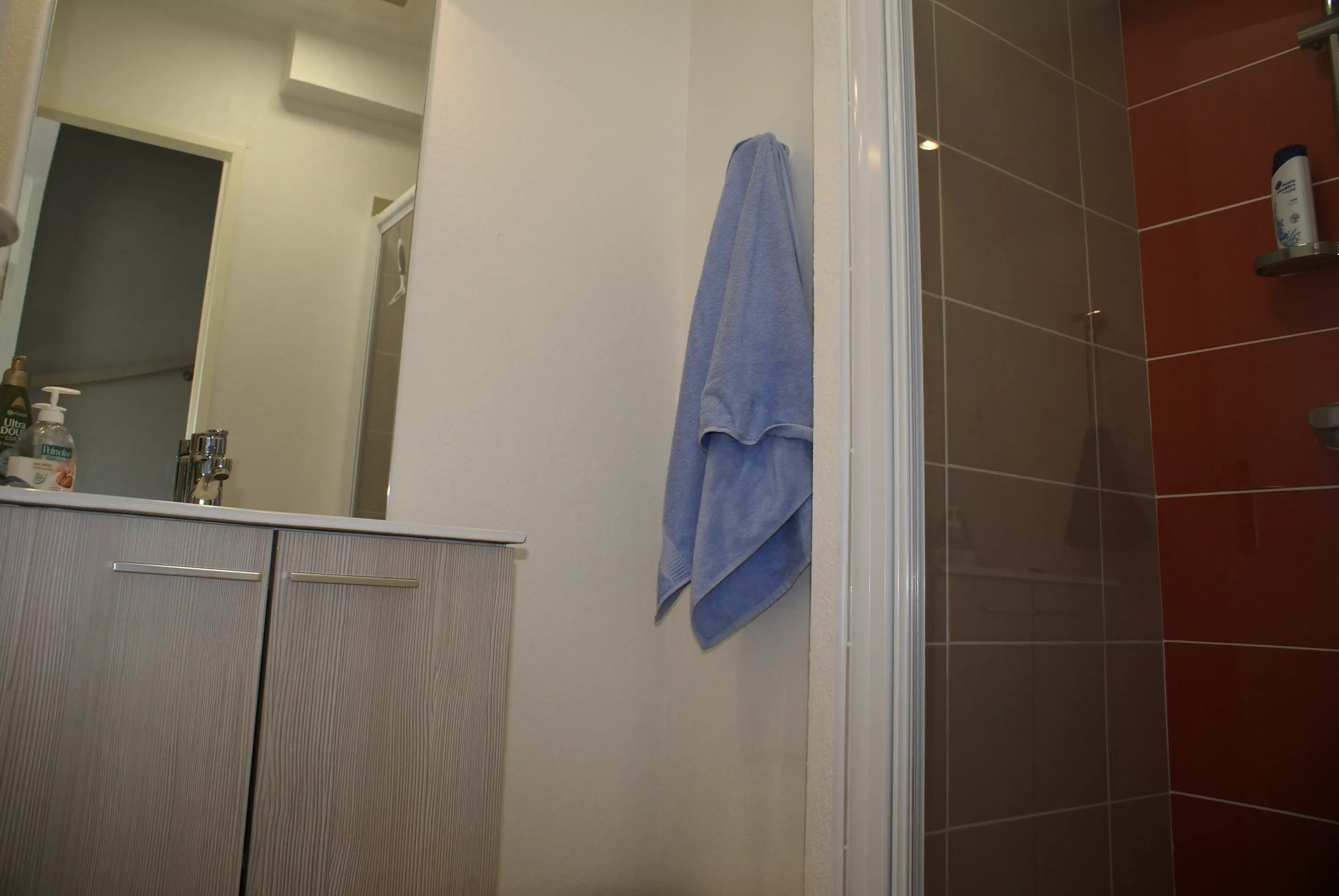 Upstairs: One bedroom with a 140cm bed + One bedroom with two 90cm beds. One bathroom with WC. Private parking No. 33