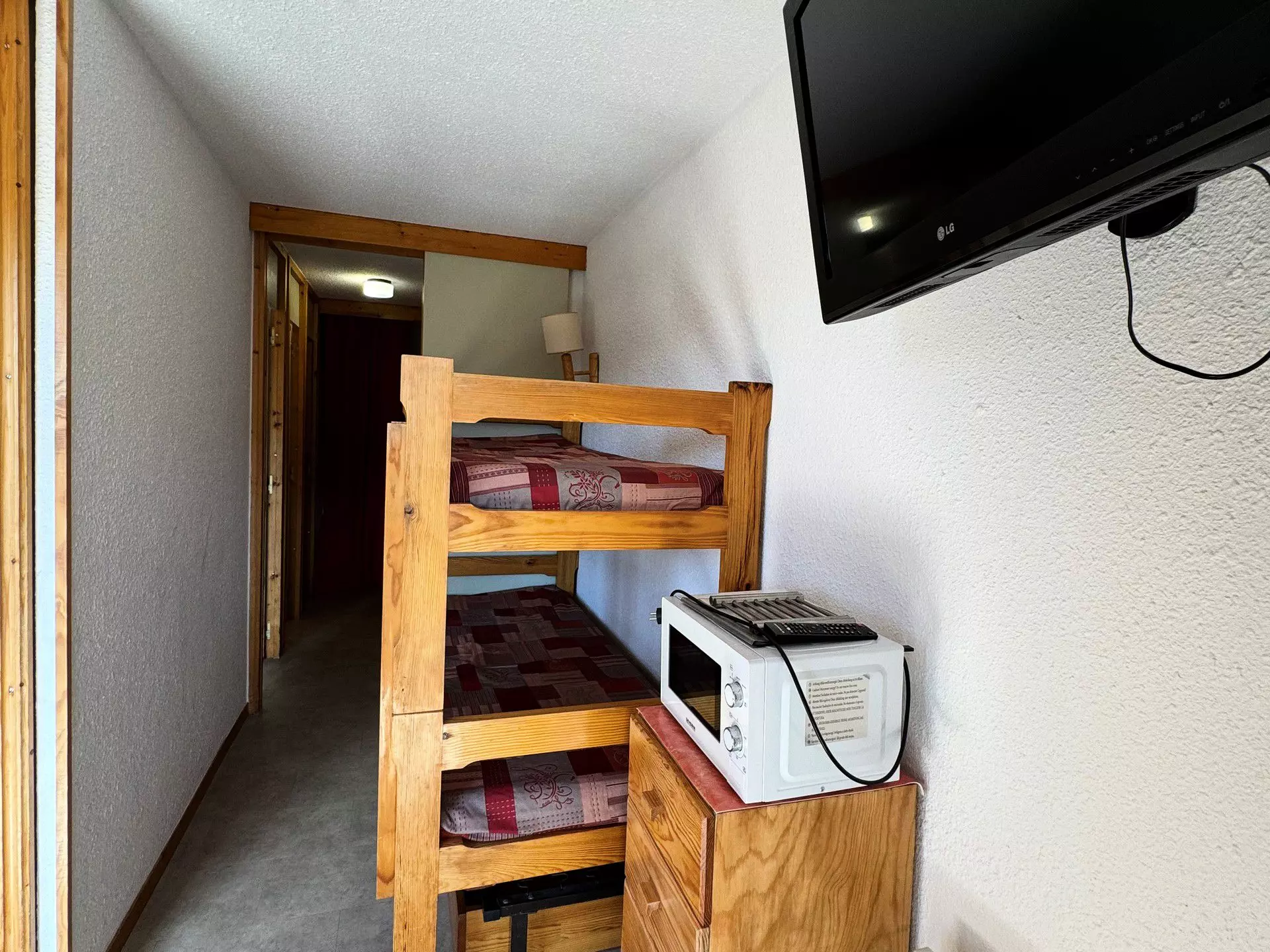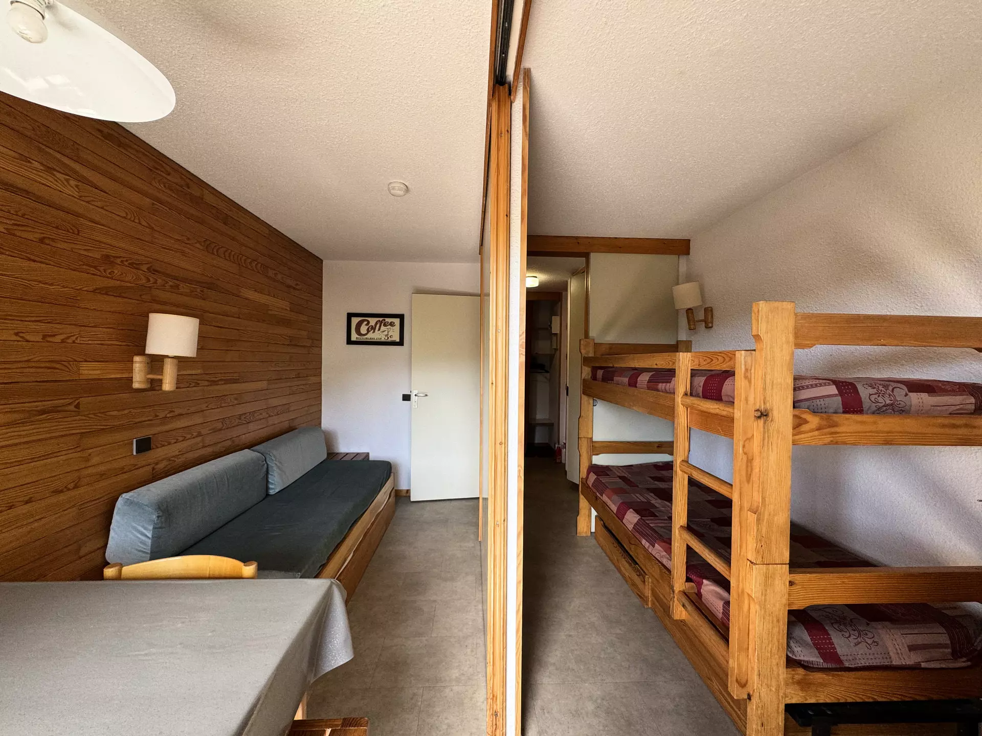 Divisible living room: 1 single bed, 1 pull-out bed (can make a double bed) and 2 bunk beds, 1 80 cm flat screen television.