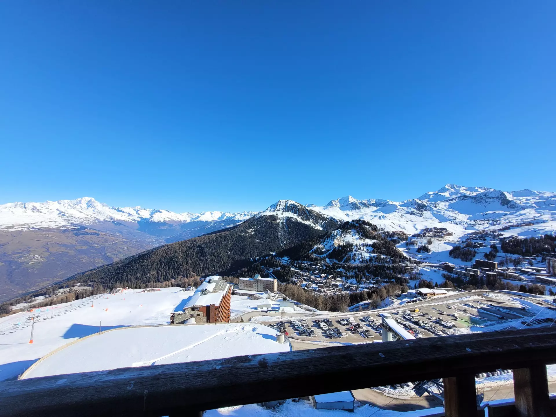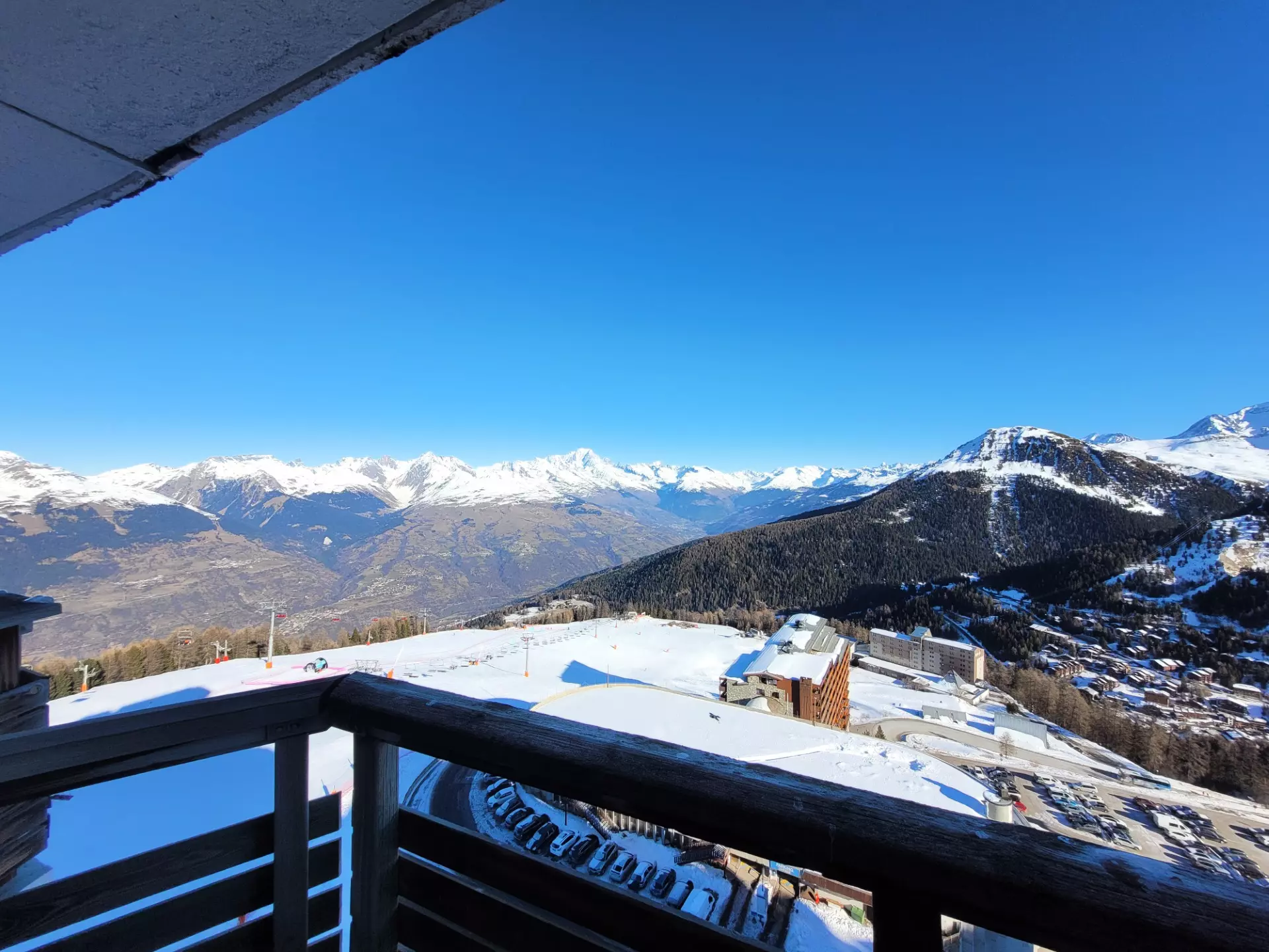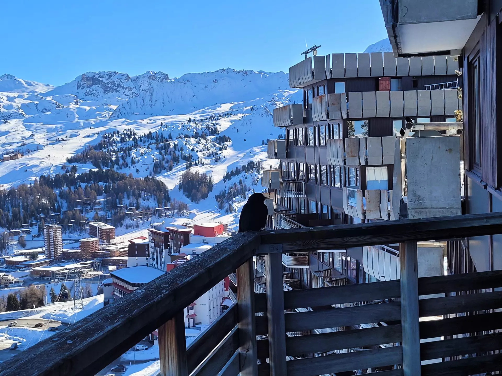 The apartment is located on level "Q" of the Paquebot des Neiges building and is accessible via the "DIAMANT" elevator. It comprises a living room, a separate kitchen, a bedroom, and a bathroom with a toilet. Its north-facing balcony offers a lovely view of Mont Blanc.