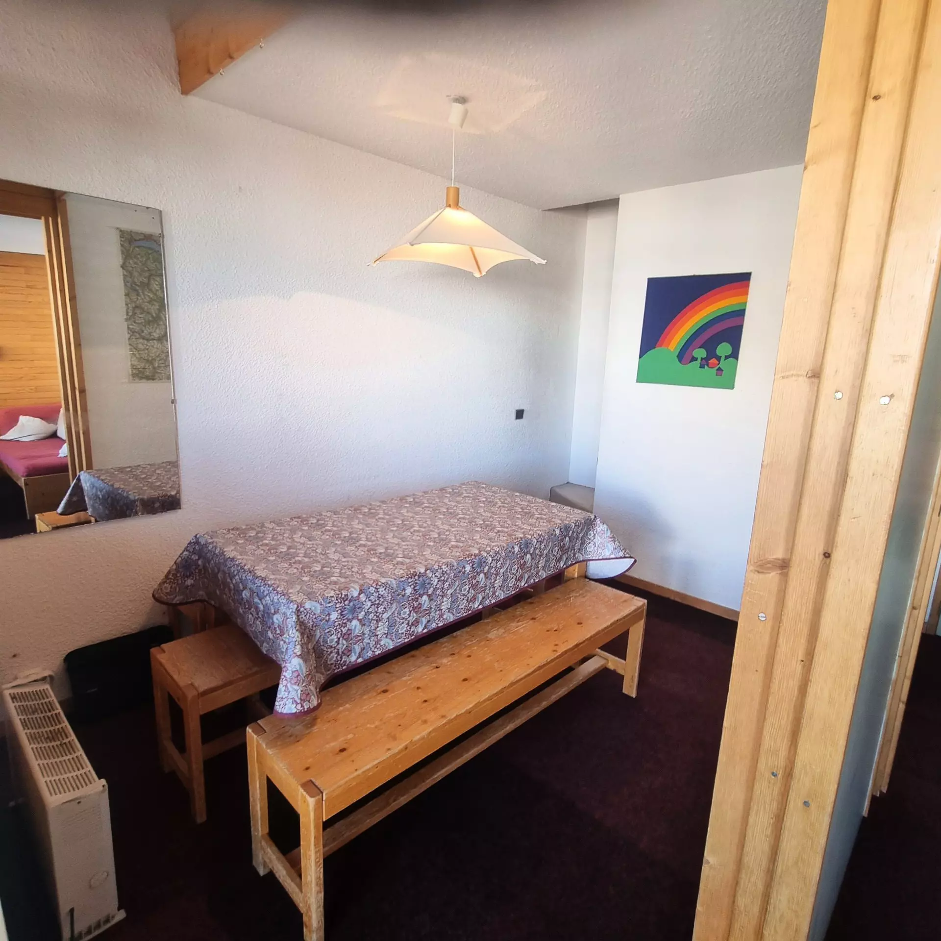 Mezzanine upstairs, open to the living room: 1 double bed
