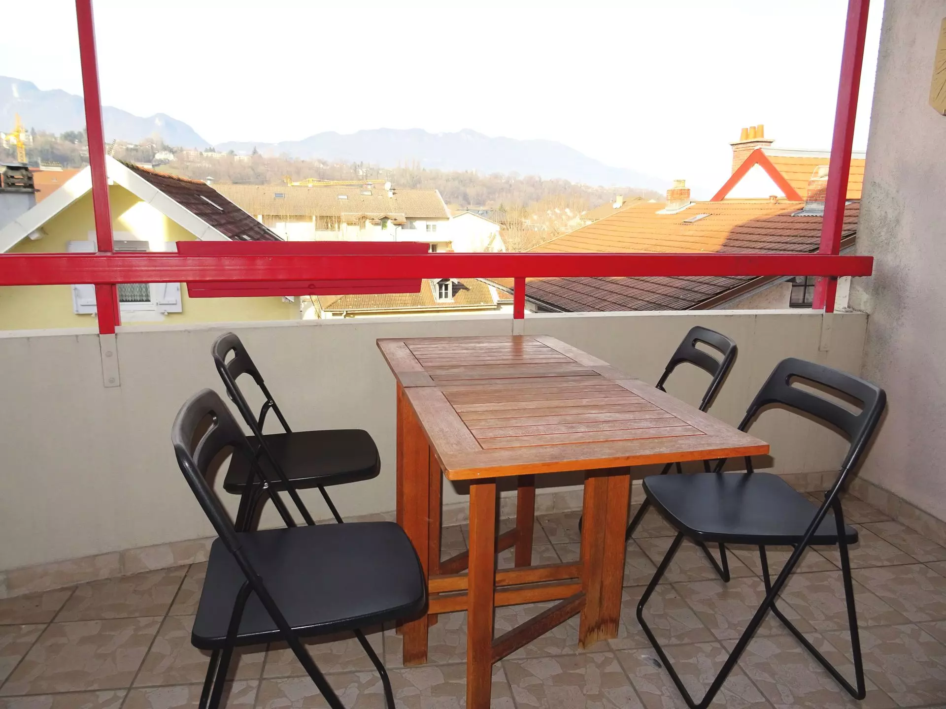 Surface area of approximately 63 m² facing east through a window and west onto a furnished balcony