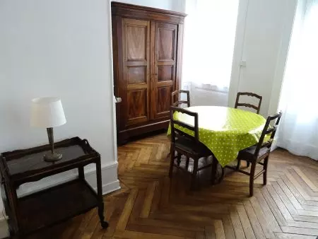 Living room: (wooden parquet) 1 table, 4 chairs, 1 sofa bed (140x200), 1 coffee table, 1 flat screen television (80cm), 1 serving trolley, 1 antique wardrobe