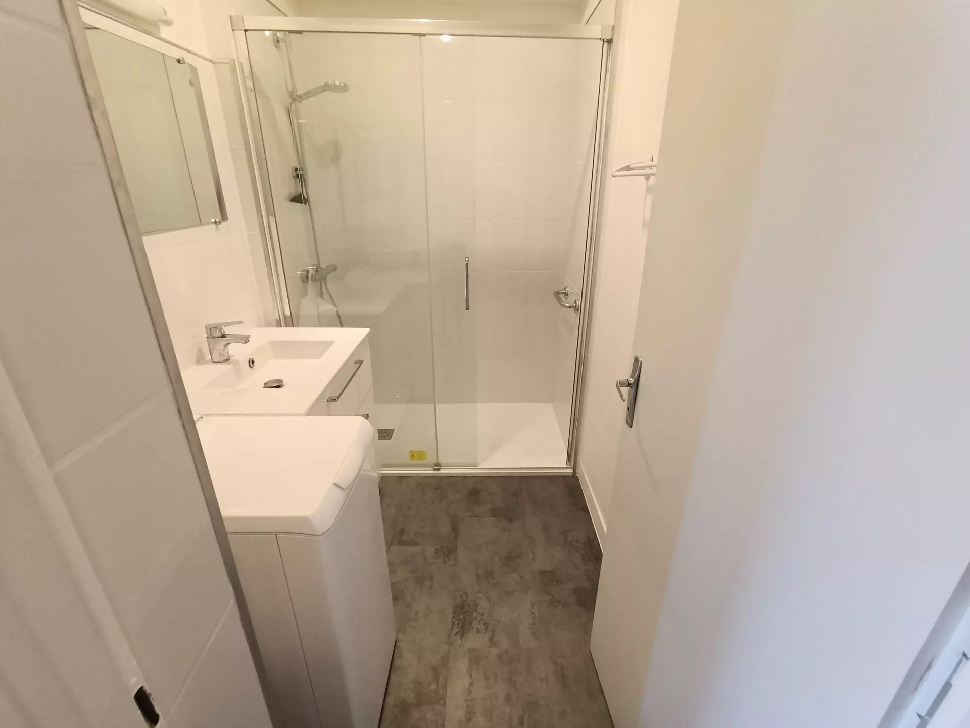 Shower room (tiled): shower with screen, vanity unit, washing machine. Separate WC
