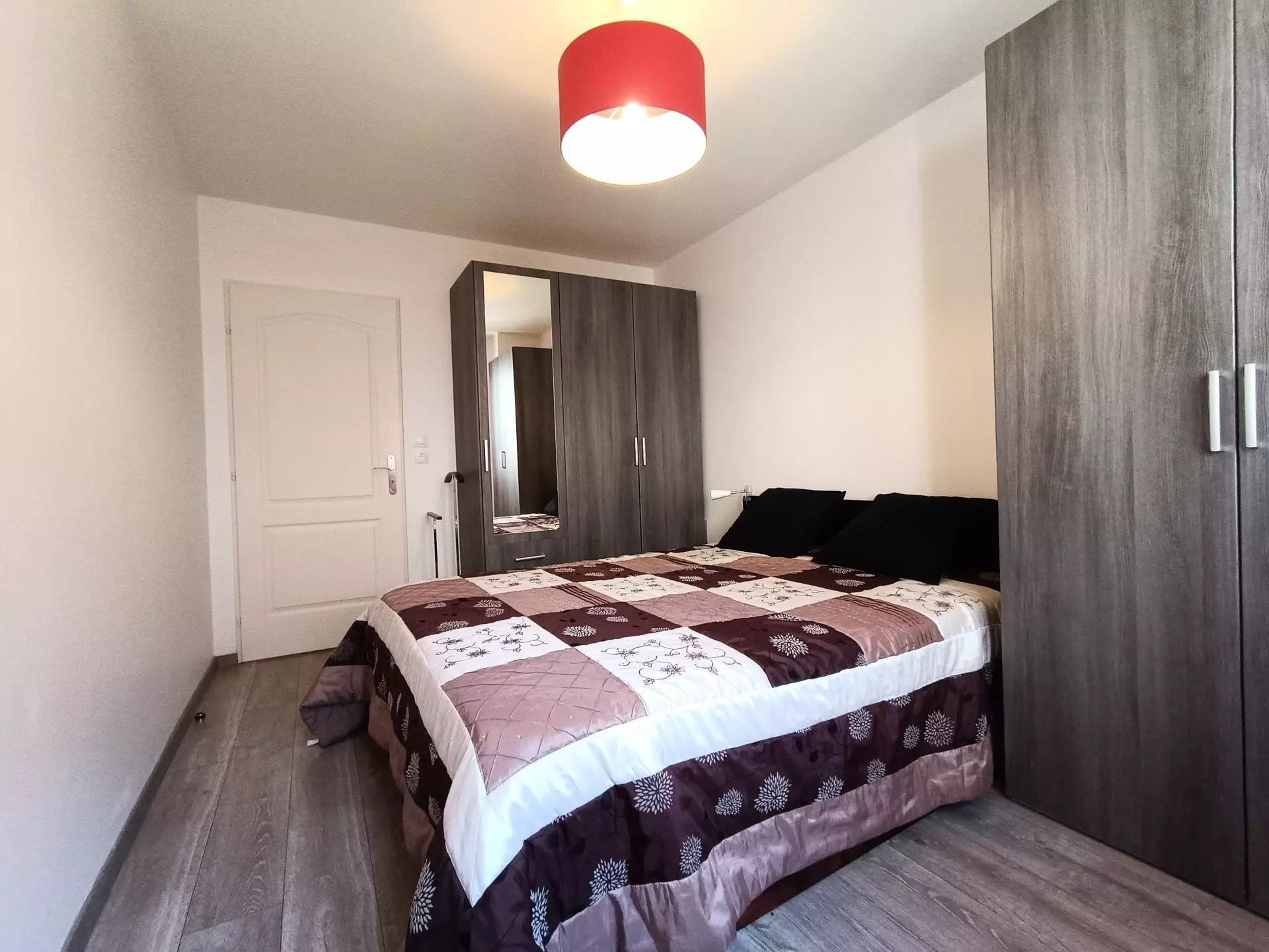 Bedroom (PVC parquet flooring) with window overlooking the courtyard: 1 bed 160cm, 2 wardrobes