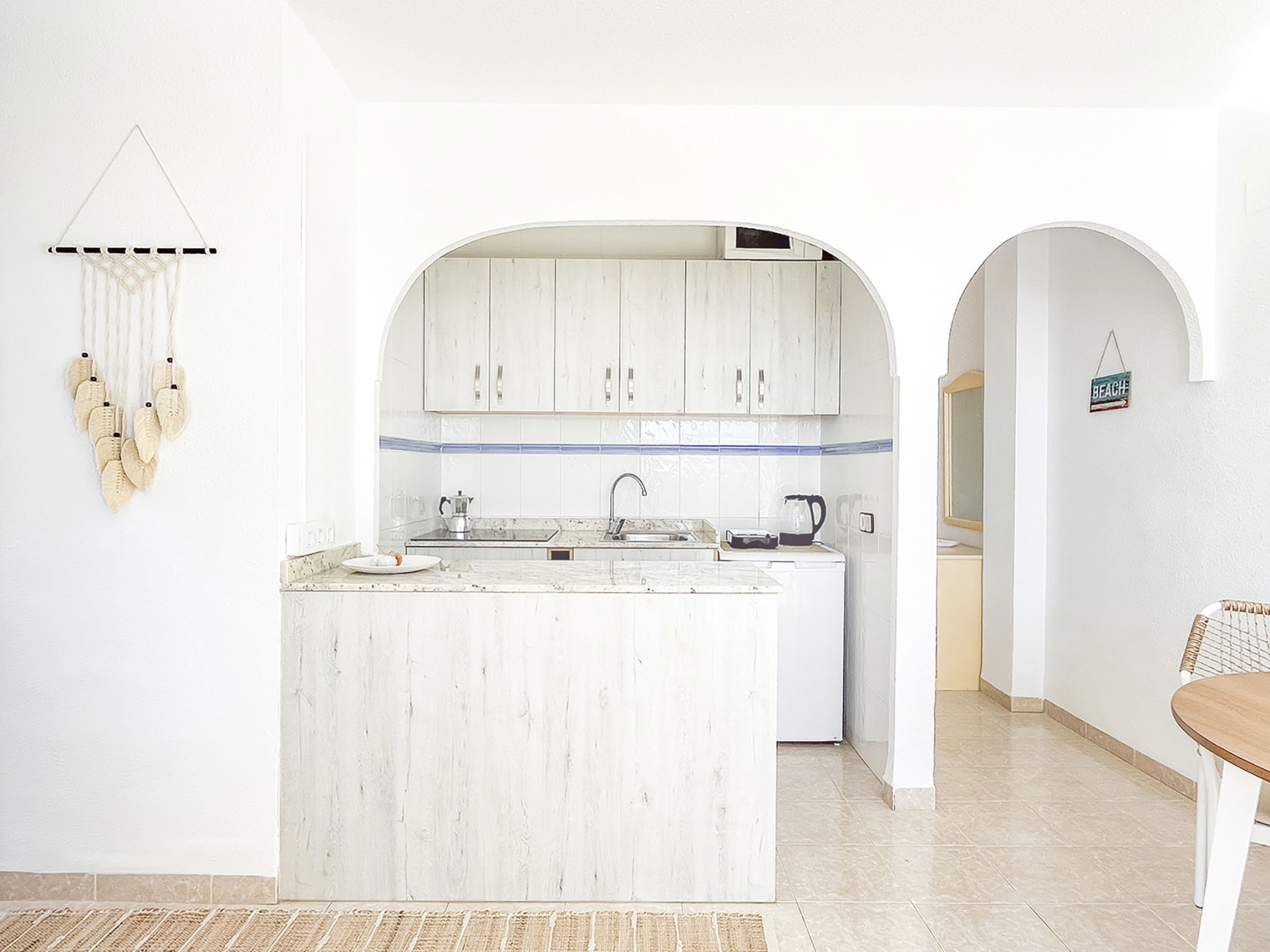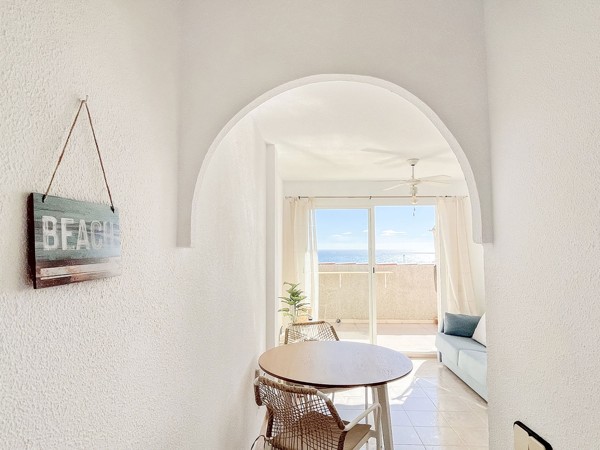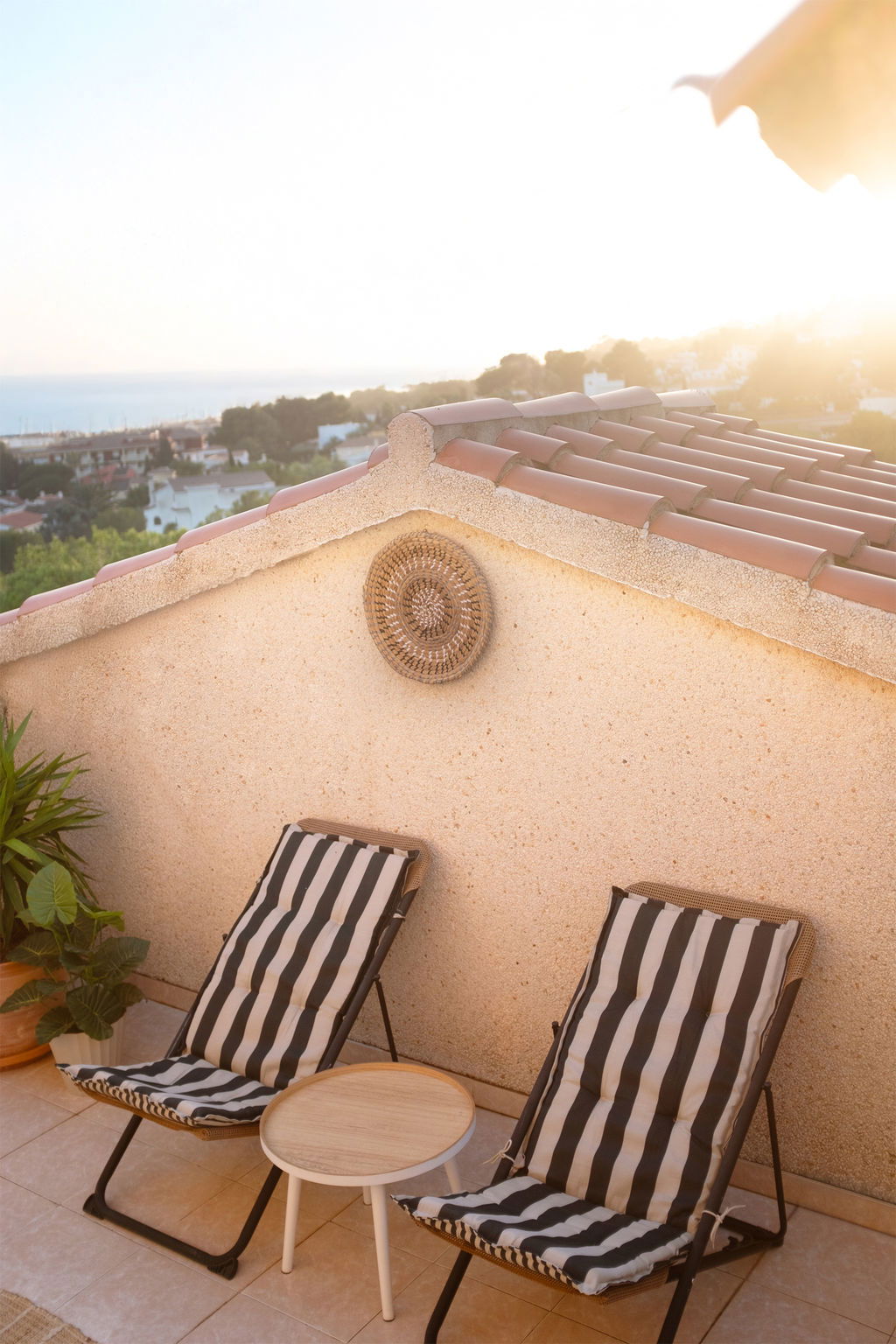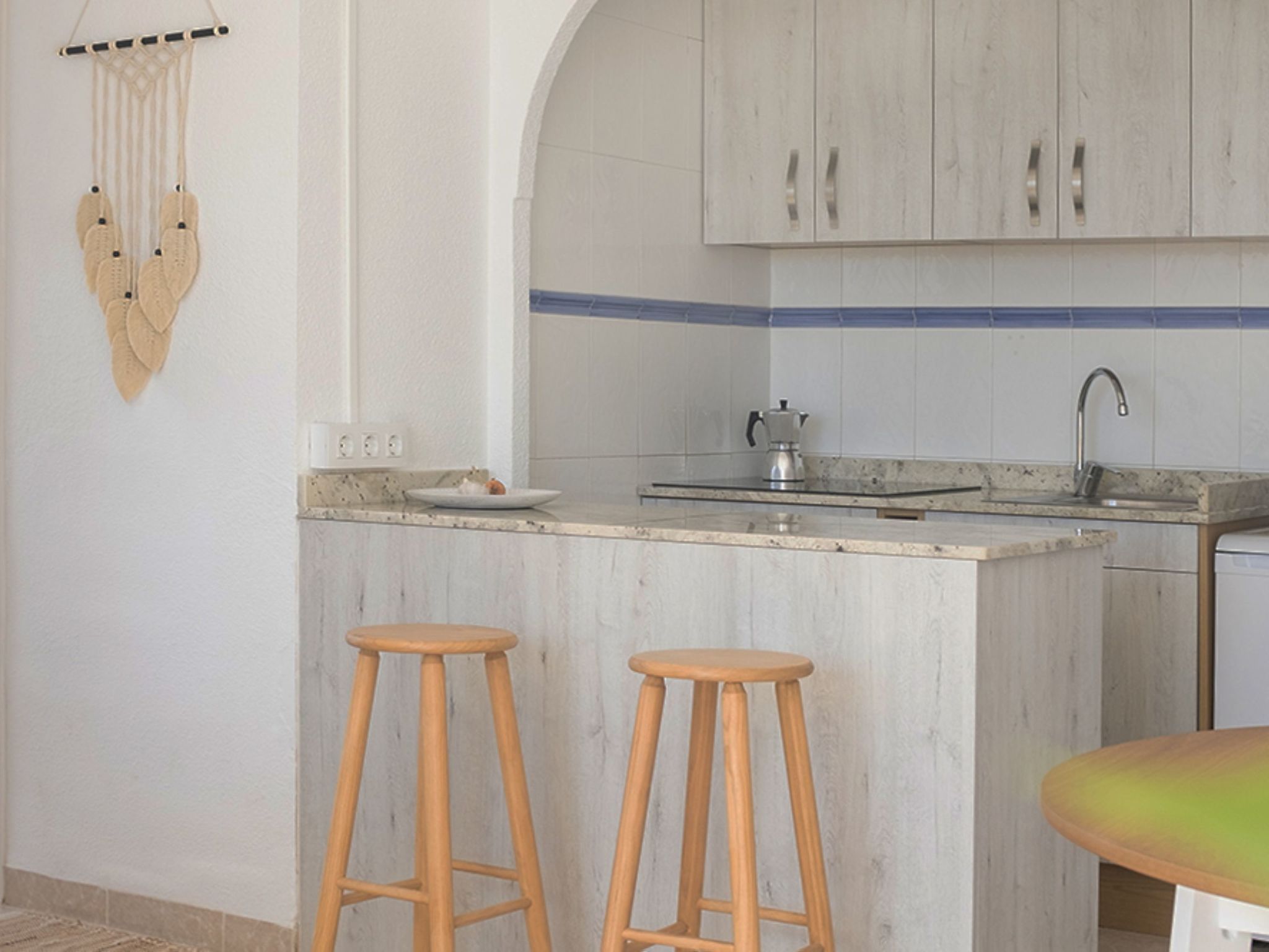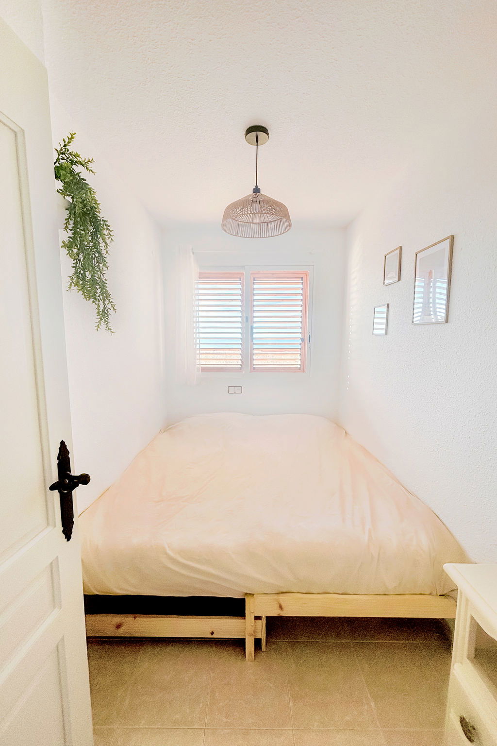 "Terraza Azul-Penthouse sea view", 3-room penthouse 60 m2 on 3rd floor. Renovated in 2024, practical and comfortable furnishings: living/dining room with dining table, digital TV, air conditioning, fan and forced-air heating. Exit to the terrace. 1 room with 1 french bed (1 x 160 cm, length 200 cm), air conditioning, fan and forced-air heating. 1 room with 1 double bed (2 x 90 cm, length 190 cm). Open kitchen (oven, dishwasher, toaster, kettle, microwave) with boiler (50 litres). Shower/WC. 2 terraces. Terrace furniture, deck chairs (2), sitting area. Very beautiful view of the sea and the mountains. Facilities: washing machine, iron, hair dryer. Internet (WiFi, free). Please note: non-smokers only. Maximum 1 pet/ dog allowed. TV only ES. Have breakfast at the terrace bar while admiring the beautiful blue sea, or relax in the hanging hammock. CV-VUT0044982-CS // Reg. Nr.: ESFCTU000012006000252505000000000000CV-VUT0044982-CS3