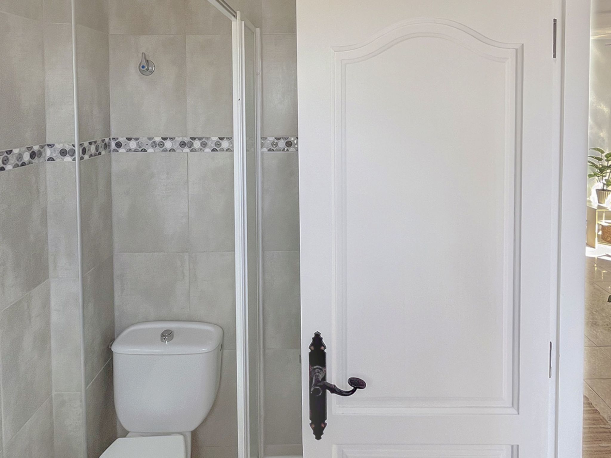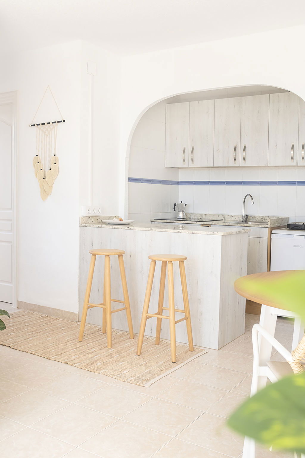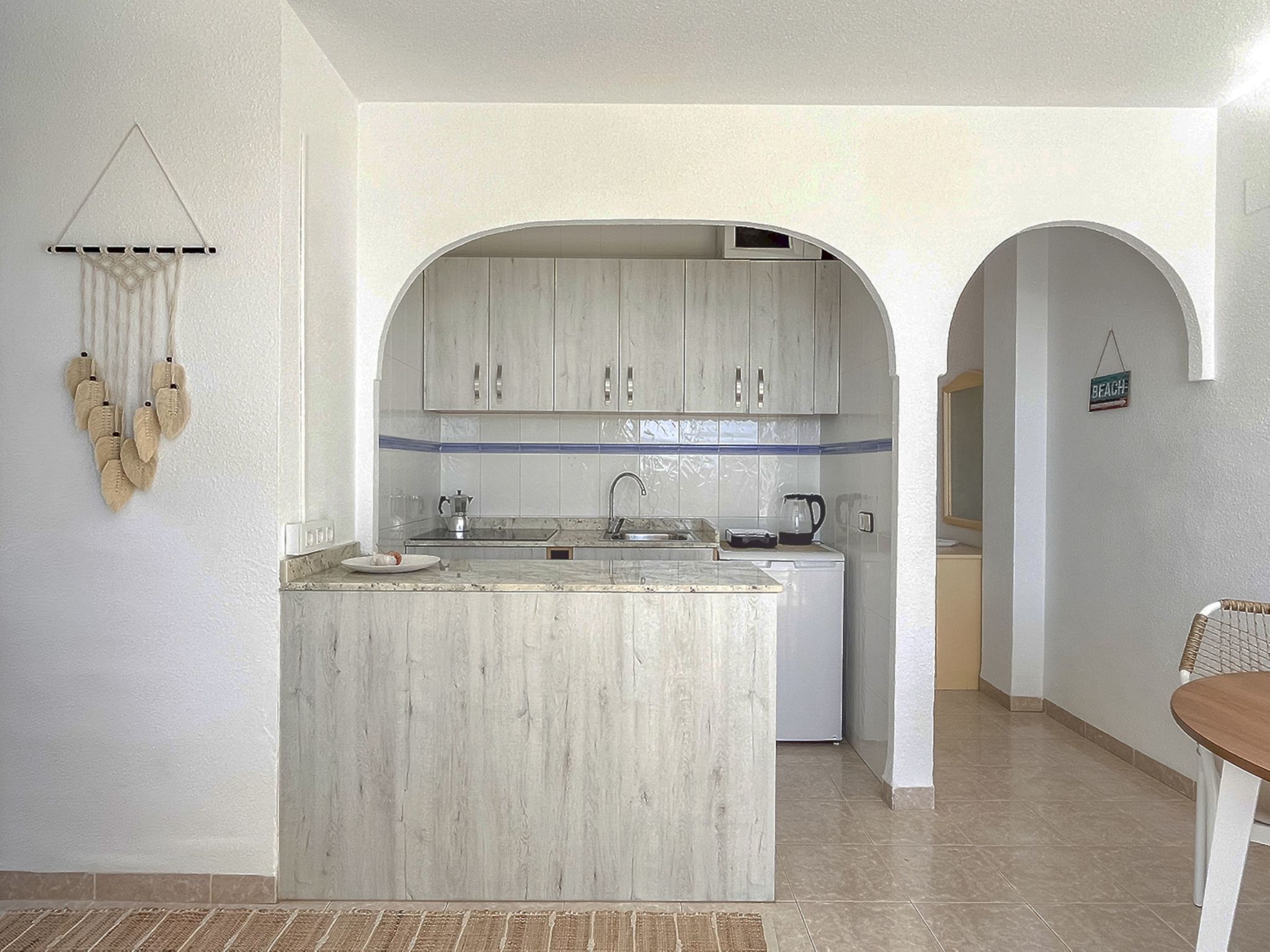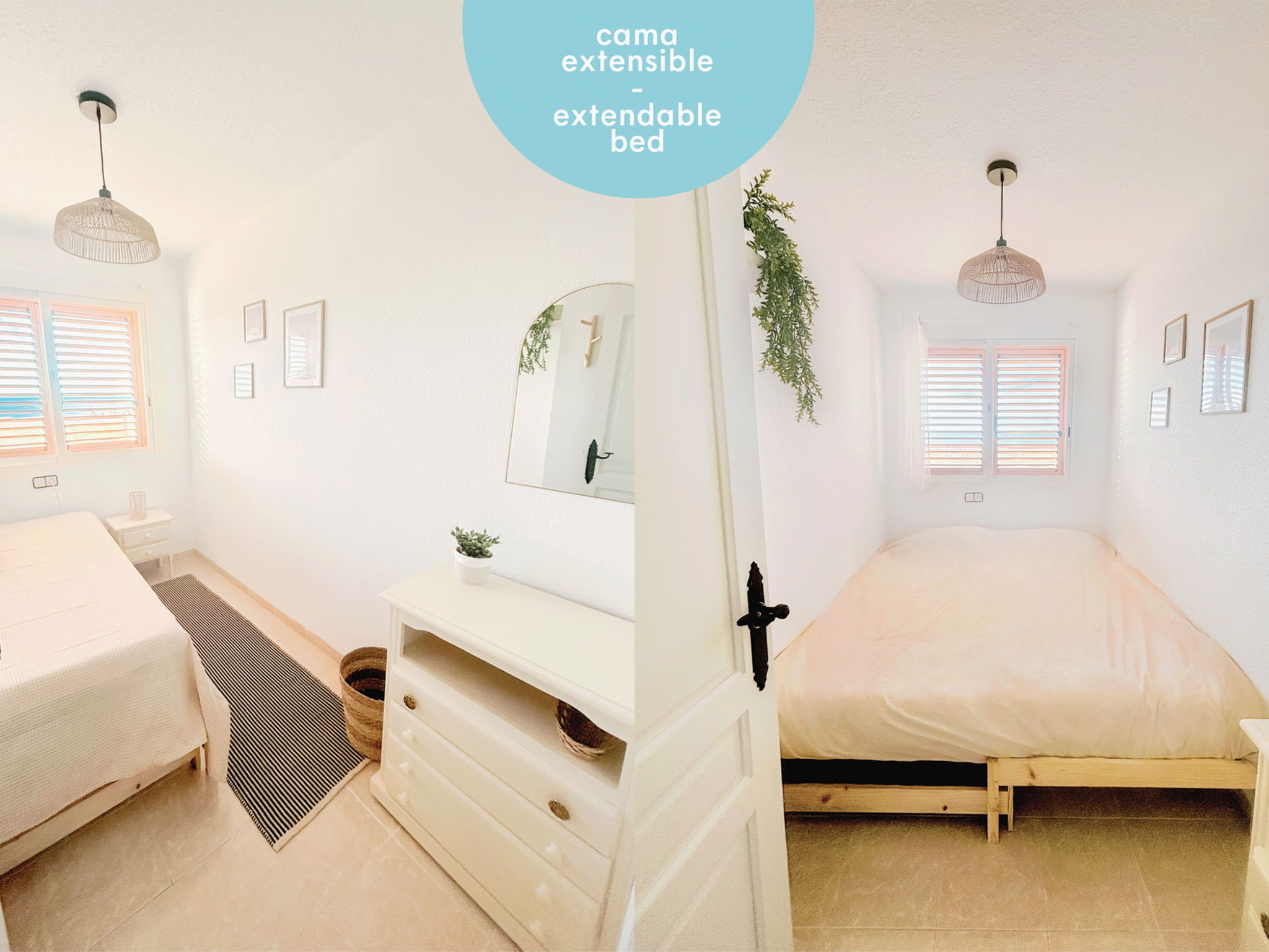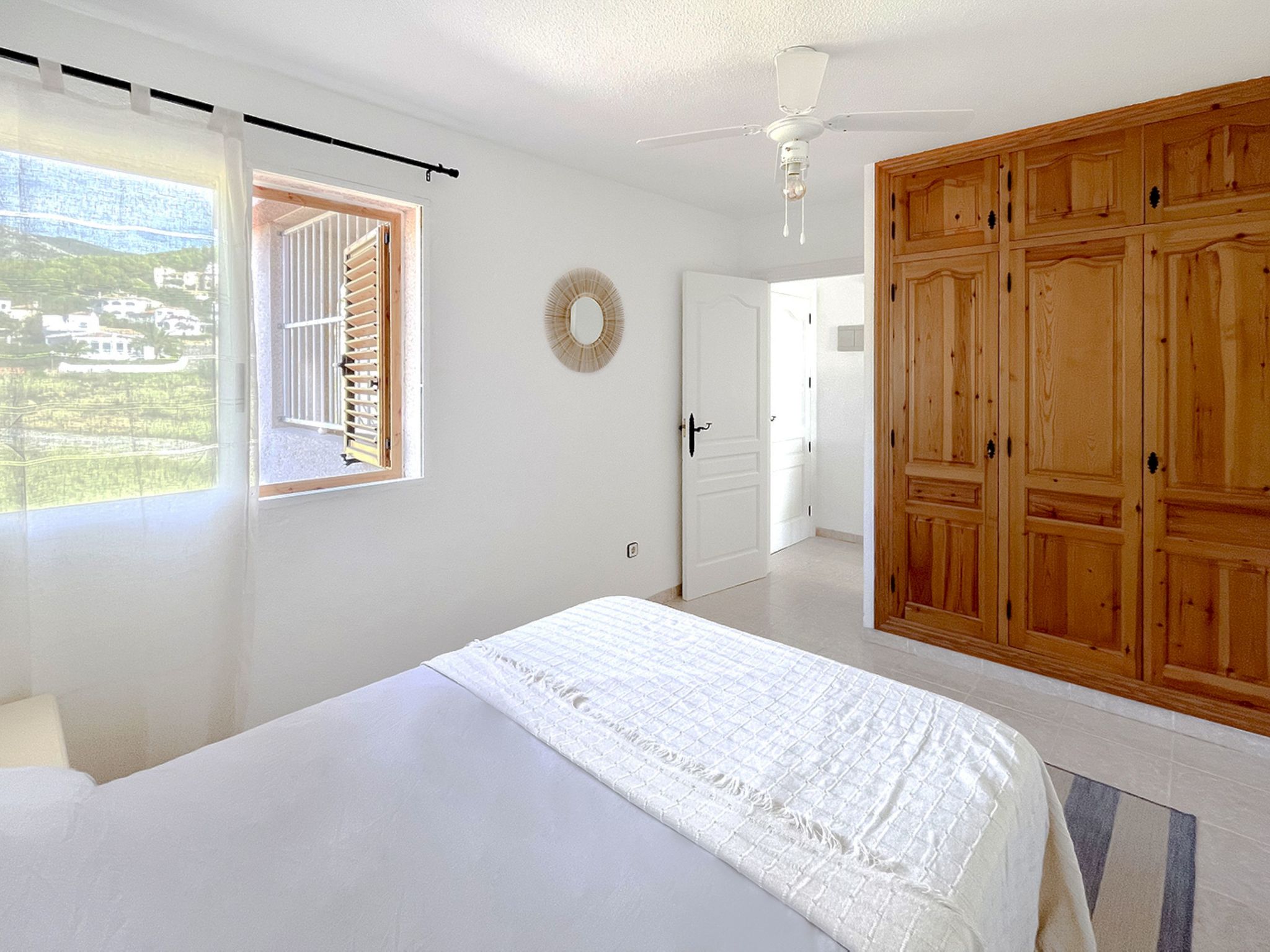 "Terraza Azul-Penthouse sea view", 3-room penthouse 60 m2 on 3rd floor. Renovated in 2024, practical and comfortable furnishings: living/dining room with dining table, digital TV, air conditioning, fan and forced-air heating. Exit to the terrace. 1 room with 1 french bed (1 x 160 cm, length 200 cm), air conditioning, fan and forced-air heating. 1 room with 1 double bed (2 x 90 cm, length 190 cm). Open kitchen (oven, dishwasher, toaster, kettle, microwave) with boiler (50 litres). Shower/WC. 2 terraces. Terrace furniture, deck chairs (2), sitting area. Very beautiful view of the sea and the mountains. Facilities: washing machine, iron, hair dryer. Internet (WiFi, free). Please note: non-smokers only. Maximum 1 pet/ dog allowed. TV only ES. Have breakfast at the terrace bar while admiring the beautiful blue sea, or relax in the hanging hammock. CV-VUT0044982-CS // Reg. Nr.: ESFCTU000012006000252505000000000000CV-VUT0044982-CS3