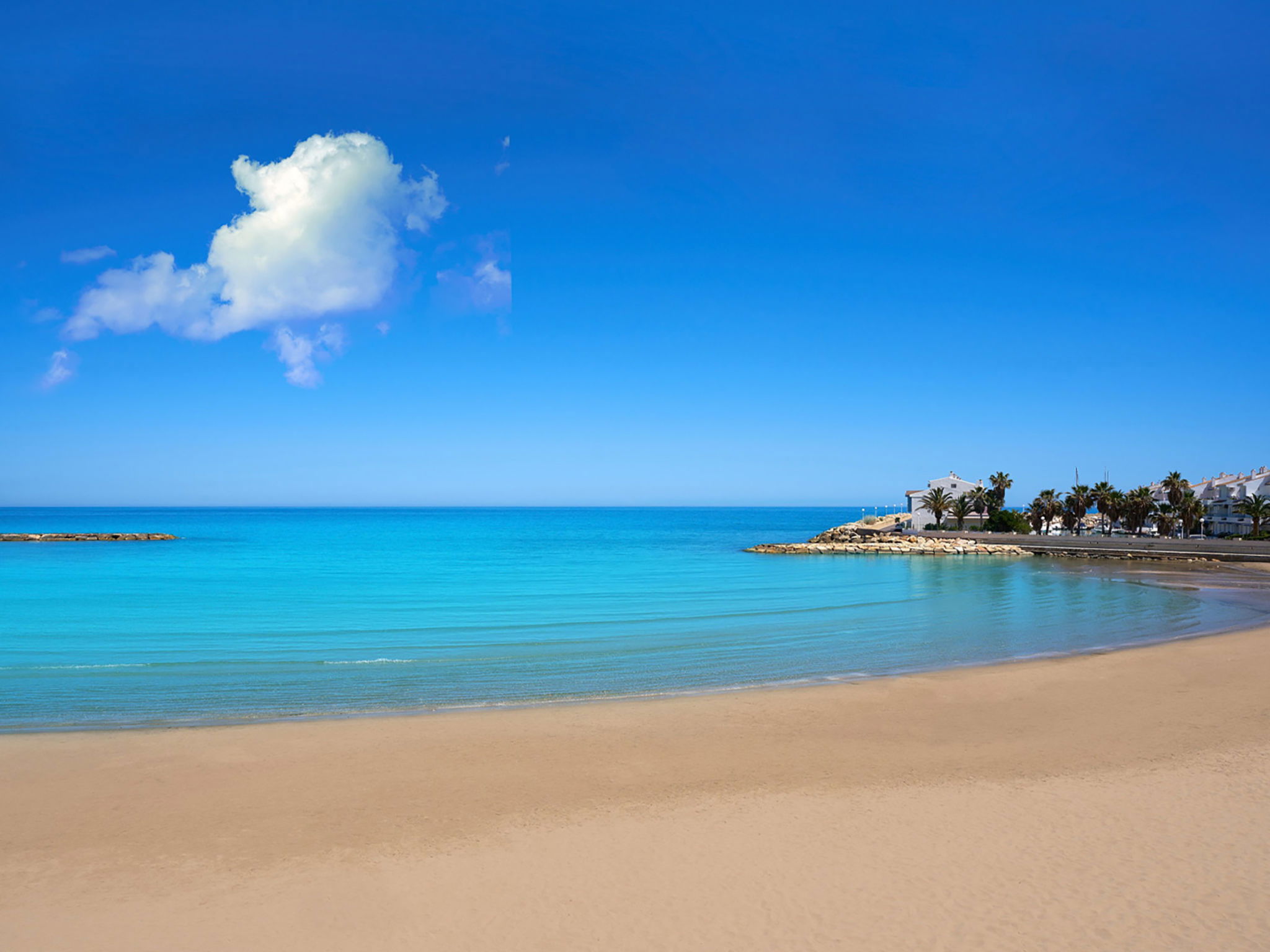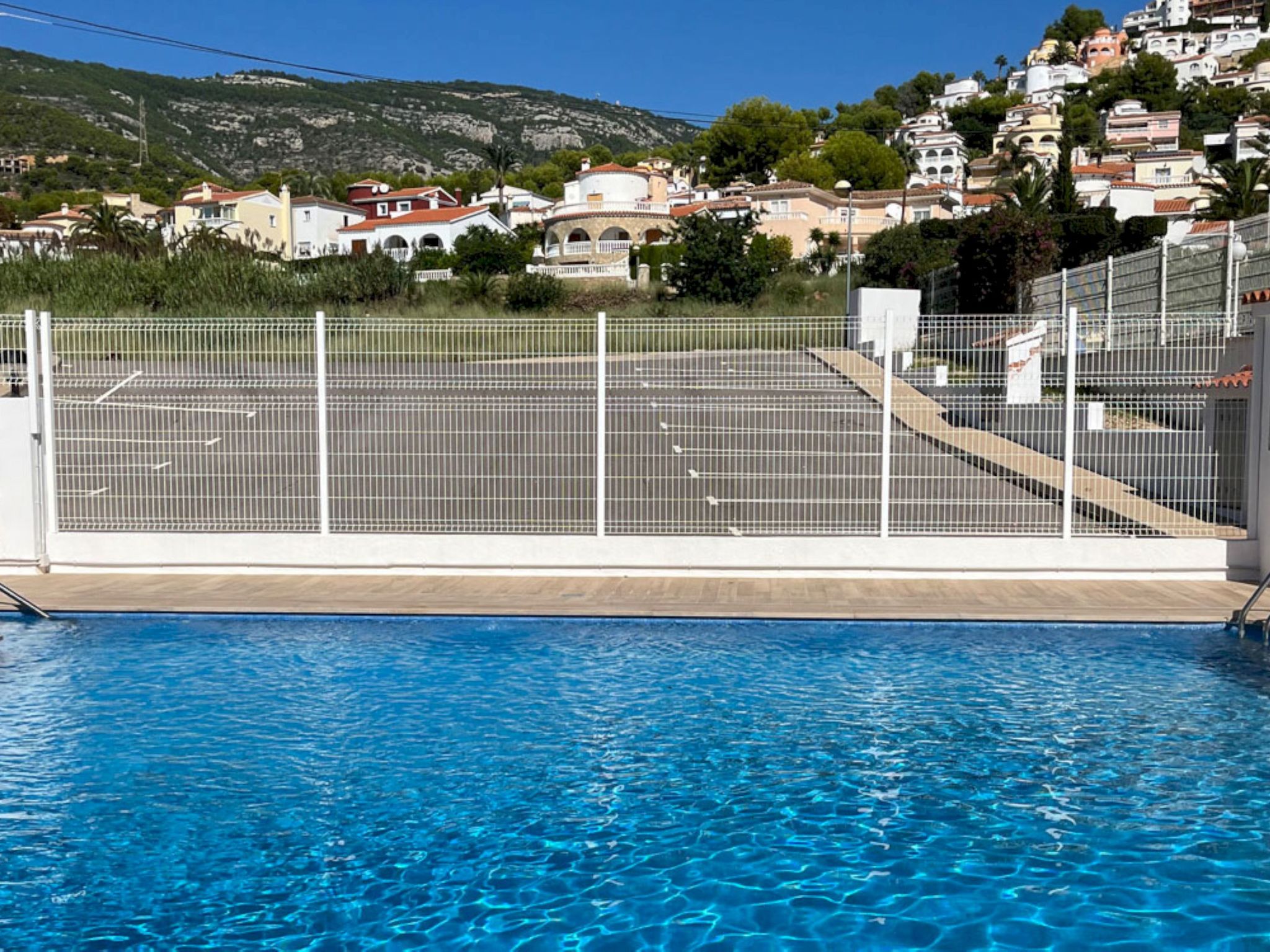 Apartment block "Terraza Azul-Penthouse sea view", 3 storeys. 50 apartments in the residence. In the district of Marcolina, 500 m from the sea, 500 m from the beach. For shared use: swimming pool angular (10 x 8 m, depth 30 - 180 cm, seasonal availability: 01.Jun. - 30.Sep. pool opening hours: 09:00-21:00). Children's pool, outdoor shower. In the house: lift. Supermarket 2.5 km, restaurant 1.5 km, bar 1 km, café 2 km, bus stop "Plaza Tanduay" 950 m, railway station "Alcalá de Xivert" 12 km, sandy beach "Cala Blanca" 500 m, diving center 2 km. Sports harbour 1.9 km, walking paths from the house, cycle lane 500 m. Nearby attractions: Peñiscola 30 km, Ciutat de les Arts i les Ciències 120 km, Vilafamés 40 km, Delta del Ebro 70 km, Morella 90 km, Desierto de las Palmas 40 km. Hiking paths: Parque Natural Sierra de Irta 500 m, Parc Natural Prat de Cabanes-Torrenostra 14 km. Please note: car recommended. The owner does not accept any youth groups. Airfield close by 20 km from the property. Neighbourhood highly sensitive to noise. Quietness and good behaviour expected. Stunning penthouse with privileged views of the Mediterranean Sea.