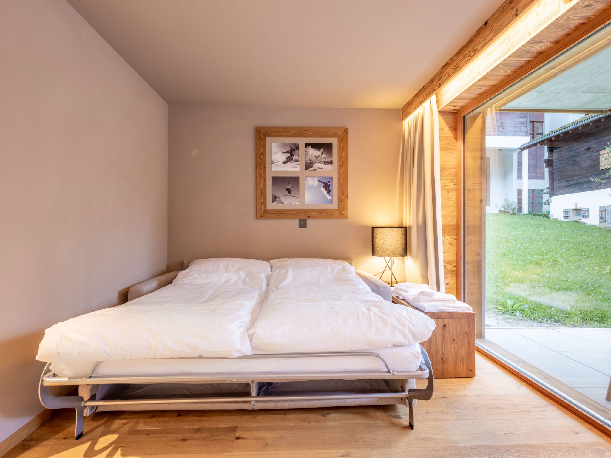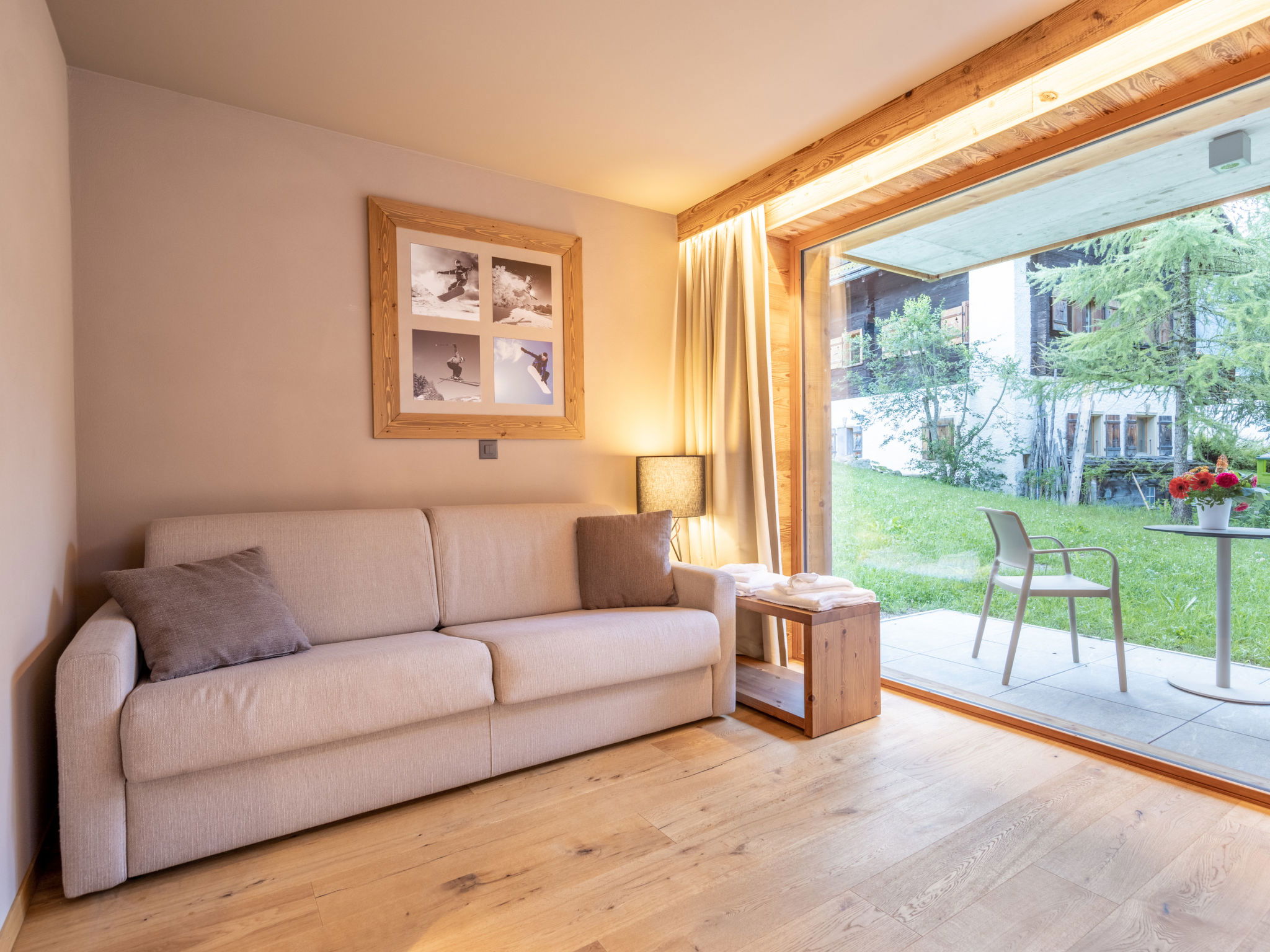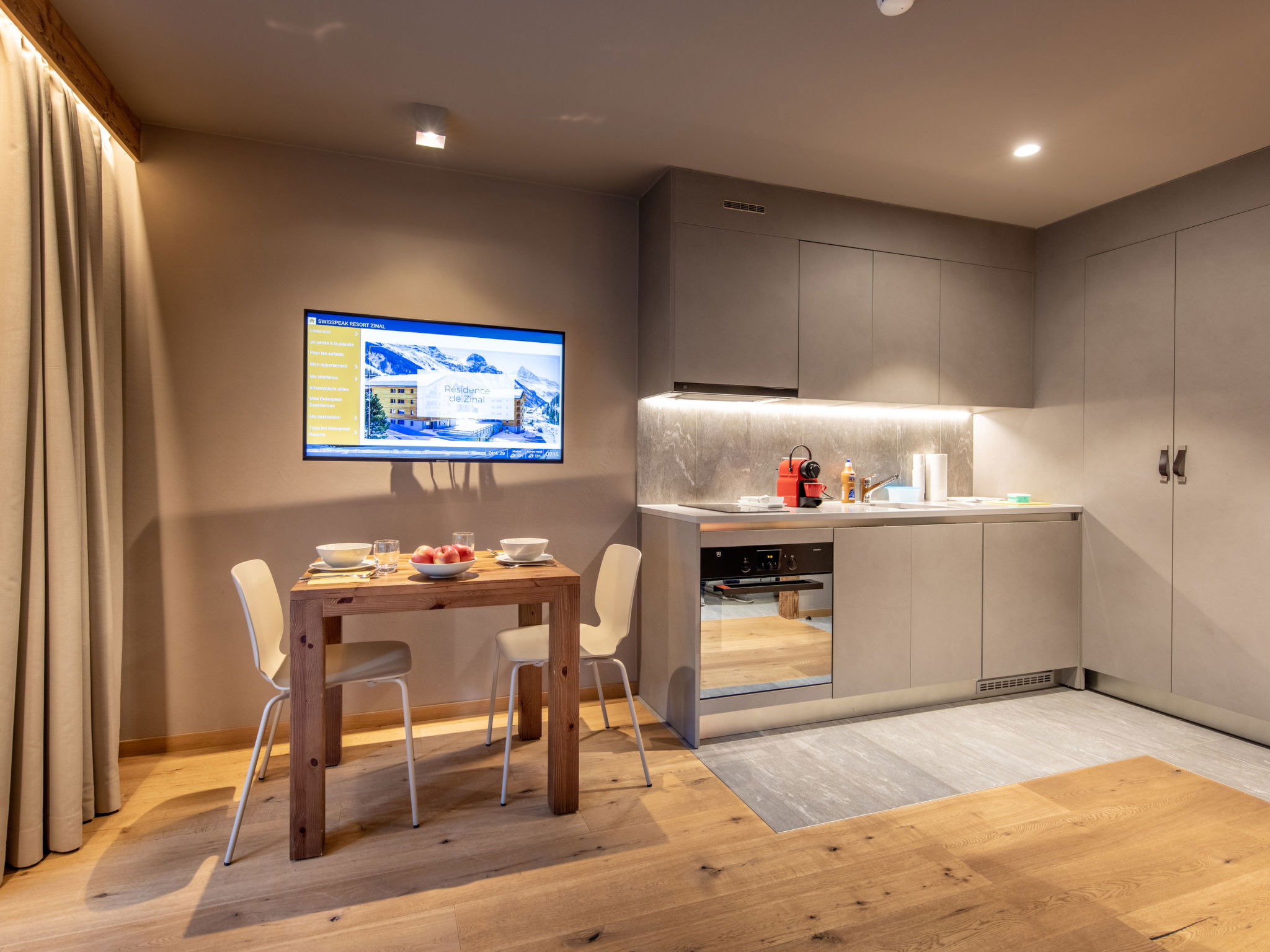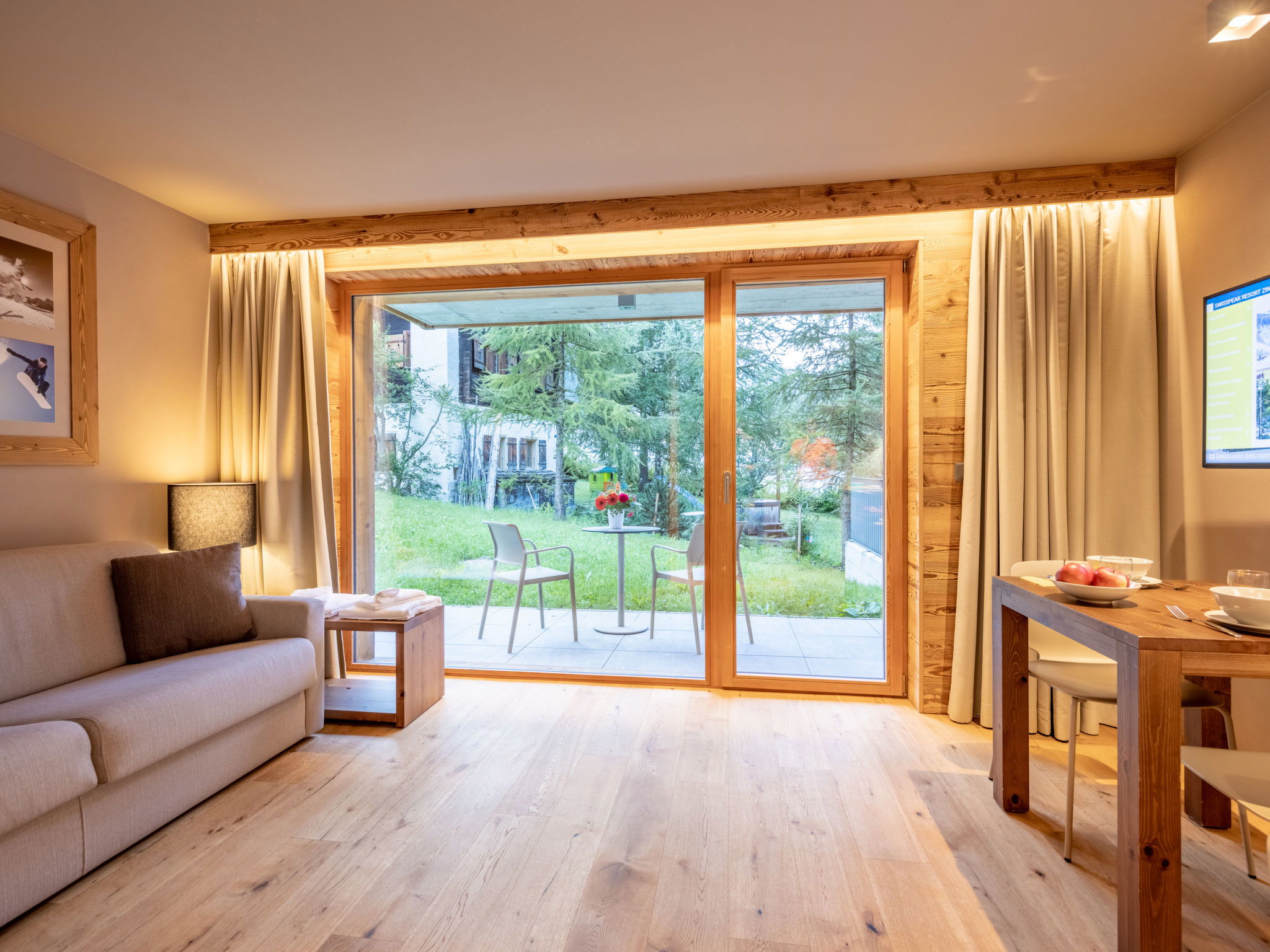 Child friendly, modern, beautiful resort "SWISSPEAK Resorts Zinal", built in 2018. 6 houses in the resort. 93 apartments in the residence. In the centre of Zinal, in a quiet position, 300 m from the skiing area, 30 m from the river. In the complex: reception, WiFi, playroom, lift, storage room for bicycles, storage room for skis, central heating system. Linen change (suppl. charge extra). Motor access to the house. In Winter: please take snow chains. Parking (limited number of spaces, extra), public parking 300 m. Grocery 100 m, restaurant, bar 50 m, bakery 200 m, bus stop "Zinal Centre" 50 m, outdoor swimming pool 12 km, indoor swimming pool 600 m. Golf course (18 hole) 35 km, tennis 8 km, minigolf 600 m, walking paths from the house 100 m, cycle lane, cable car, skisport facilities, ski rental, ski school, children's ski school 300 m, sled run, cross country ski track 150 m, ice rink 50 m. Nearby attractions: Indoor Park Grimentz 8 km, Moulin de St-Luc 12 km, Barrage de Moiry 17 km, Observatoire François-Xavier Bagnoud 18 km. Well-known ski regions can easily be reached: Grimentz-Zinal 300 m, St-Luc 14 km, Crans-Montana 40 km. Hiking paths: Zinal 100 m, Grimentz 8 km, Vallon de Réchy 20 km. Please note: suitable for families. Groups of teenagers on request only. In case of good snow conditions, the house is accessible on skis. The photo is just an example. La résidence dispose d’un nombre limité de places de parking intérieures et extérieures. Pour information, les places de parking intérieures ne sont ni fermées ni surveillées. D'autres places de parking publiques se trouvent à quelques minutes à pied de la résidence. Vous pouvez faire livrer par les CFF vos bagages au resort et les faire renvoyer chez vous. Réservation auprès des CFF.
