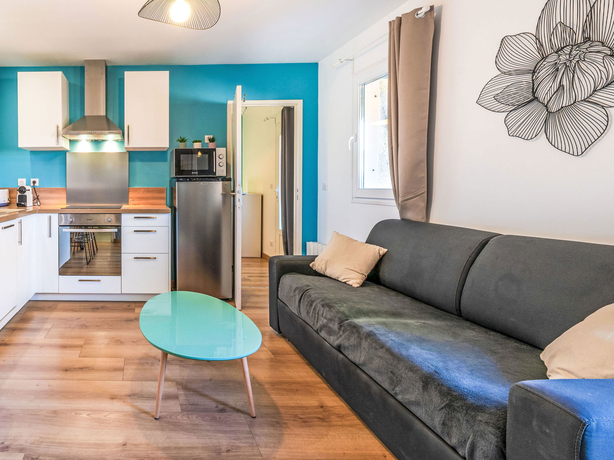 2-room apartment 30 m2 on 1st floor. Beautiful and tasteful furnishings: living/dining room with 1 double sofabed (1 x 140 cm, length 190 cm), TV (flat screen). Exit to the terrace. 1 room with 1 french bed (1 x 140 cm, length 190 cm). Open kitchen (oven, dishwasher, 3 induction hot plates, toaster, kettle, microwave, electric coffee machine, Capsules for coffee machine (Nespresso) extra). Shower/WC. Electric heating. Terrace 8 m2, north facing position. Terrace furniture. Facilities: washing machine, hair dryer. Internet (WiFi, free). Please note: non-smokers only, no parking. Maximum 1 small pet/ dog allowed. Smoke alarm, no lift. Offer by a private individual according to Art. 155, IV of CGI. 3300900331454