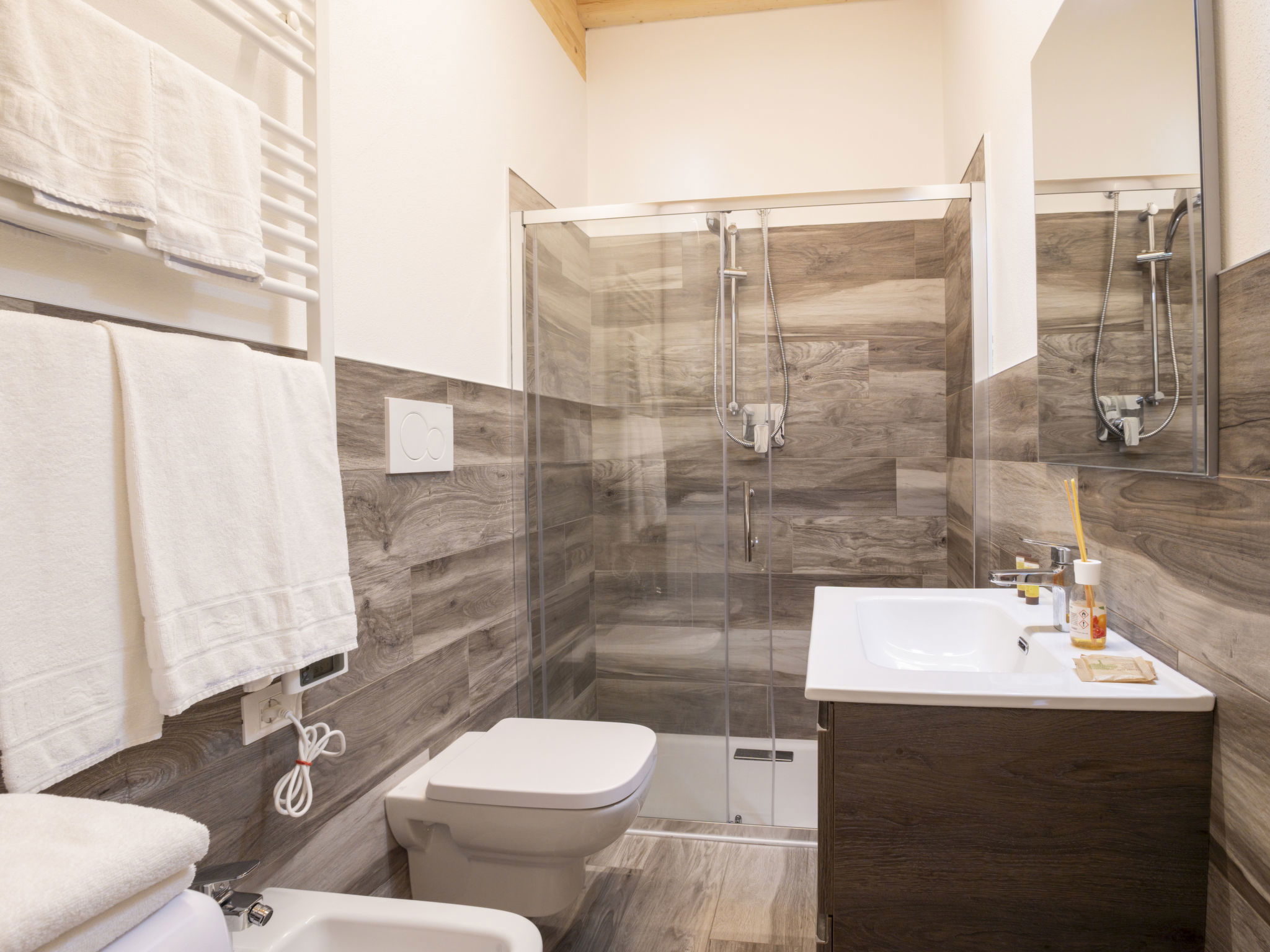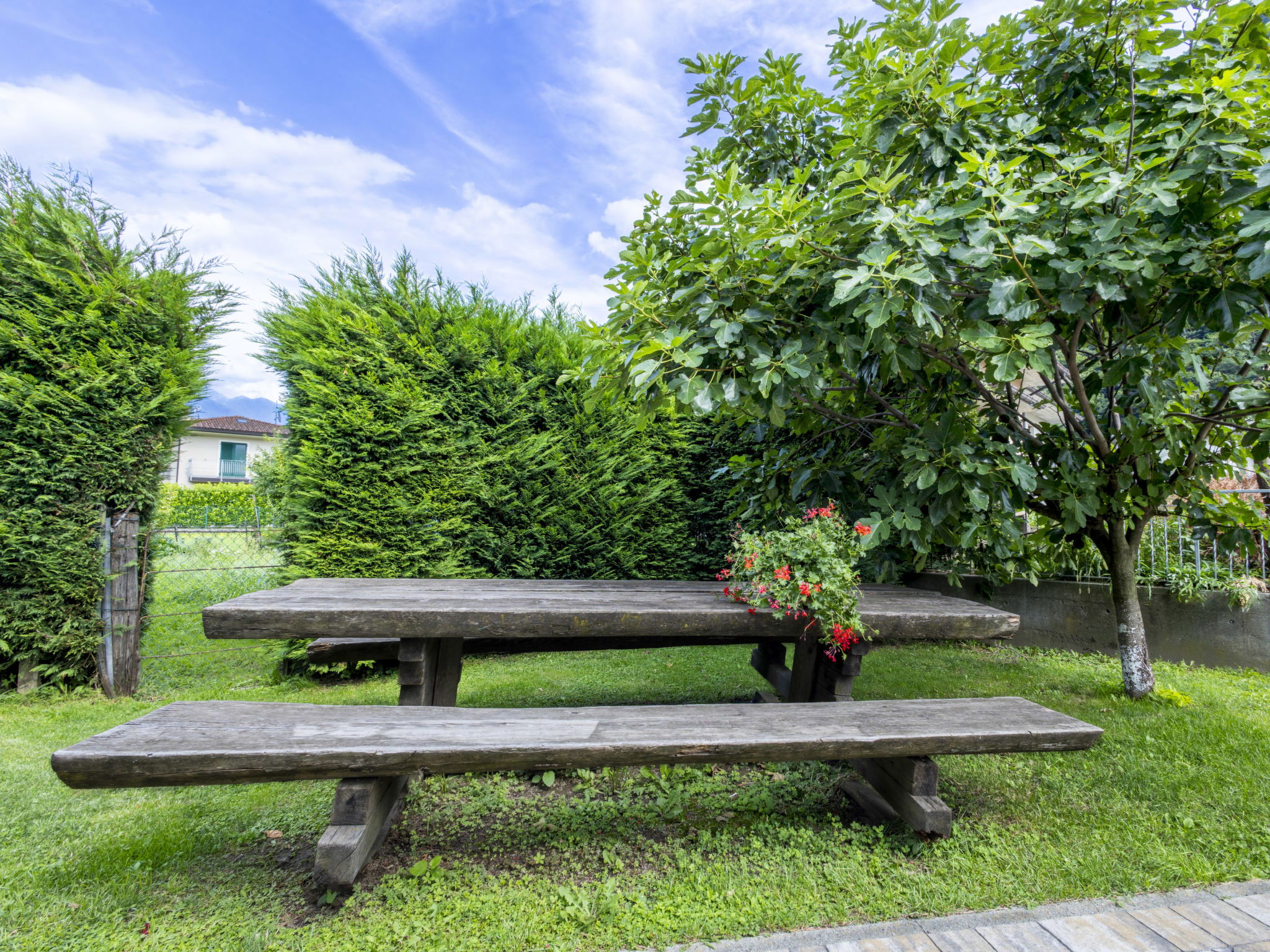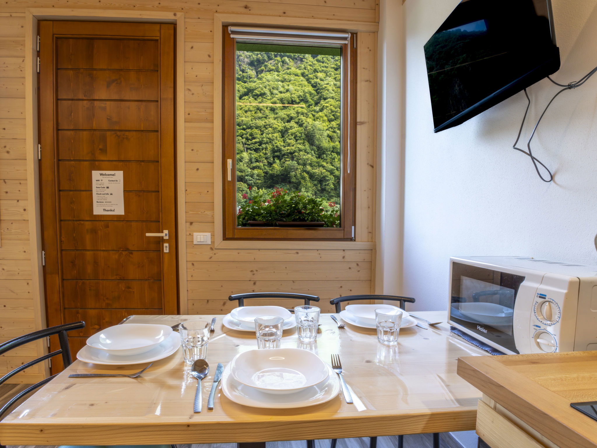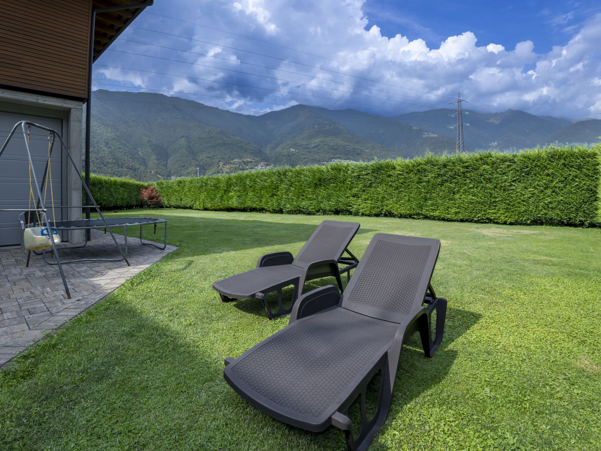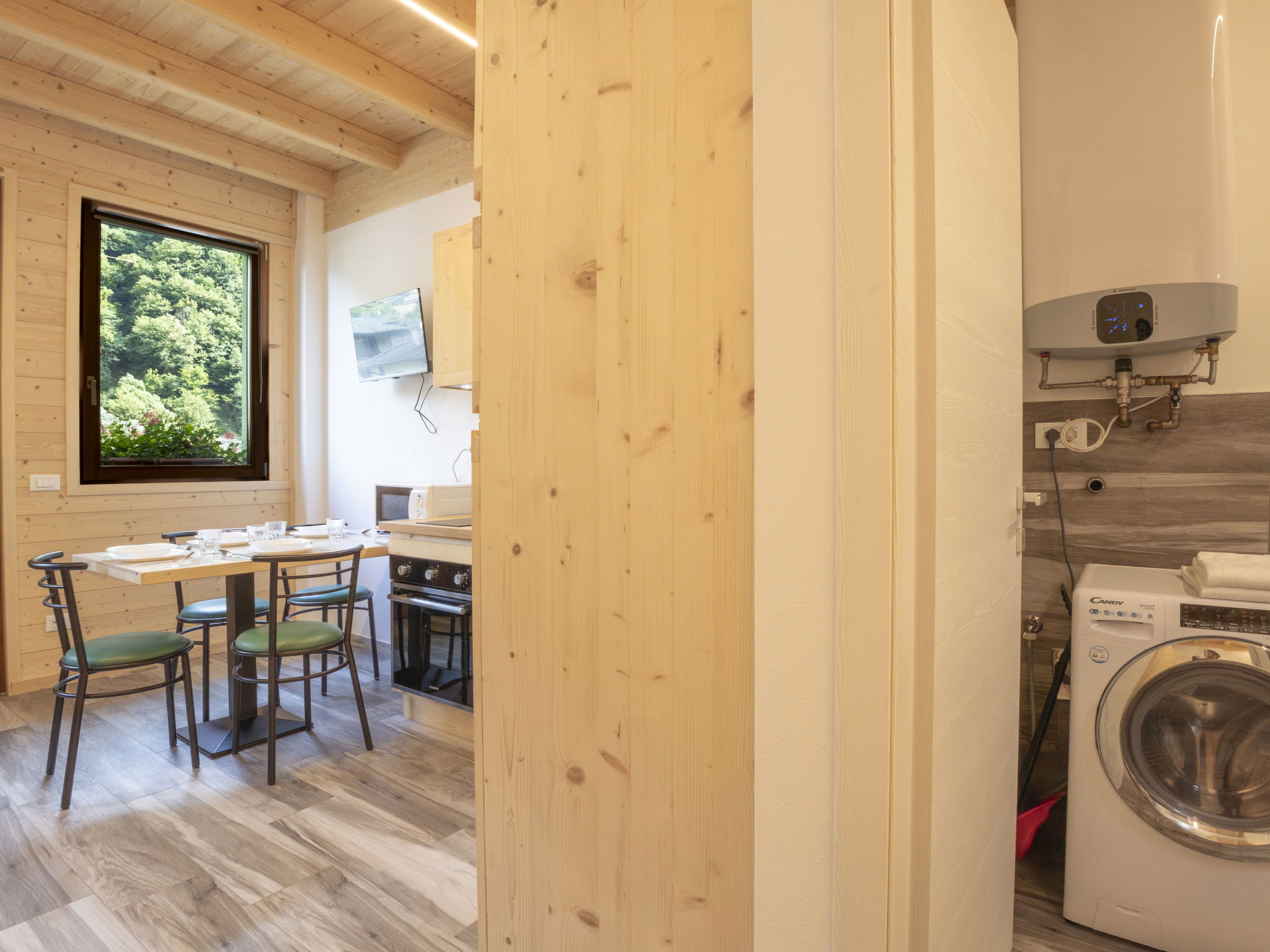 1-room studio 28 m2 on 1st floor, south facing position. Fully renovated in 2024, comfortable and modern furnishings: living/sleeping room with 1 double sofabed, 1 double bed and TV. Exit to the terrace. Kitchenette in the entrance (oven, dishwasher, 2 induction hot plates, toaster, kettle, electric coffee machine, Capsules for coffee machine (Nespresso) free). Shower/bidet/WC. Air-conditioning, forced-air heating, boiler. Terrace furniture. View of the mountains, the valley and the garden. Facilities: washing machine, dryer, children's high chair, baby cot (extra), hair dryer. Internet (WiFi, free). E-charging station. Please note: non-smoking house. Maximum 1 pet/ dog allowed. IT014029B5DGUYKV