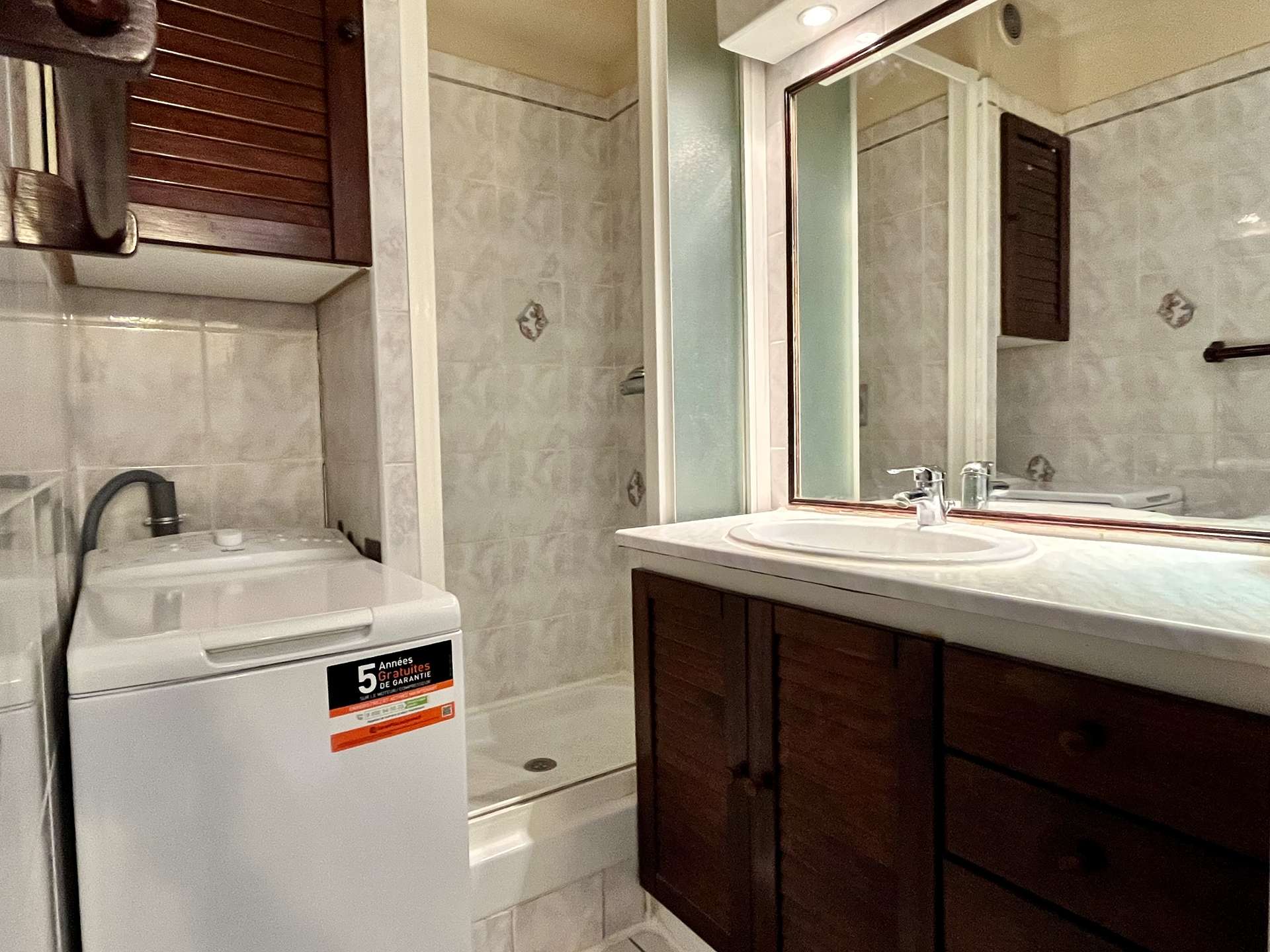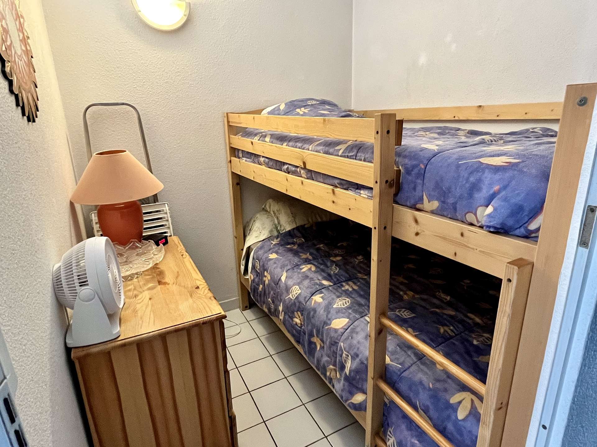 Close to the sea and amenities, this family holiday apartment, located on the 1st floor, consists of a living room with sofa, a cabin area with 2 single bunk beds, a bedroom with 1 double bed, a bathroom. water and independent toilets.