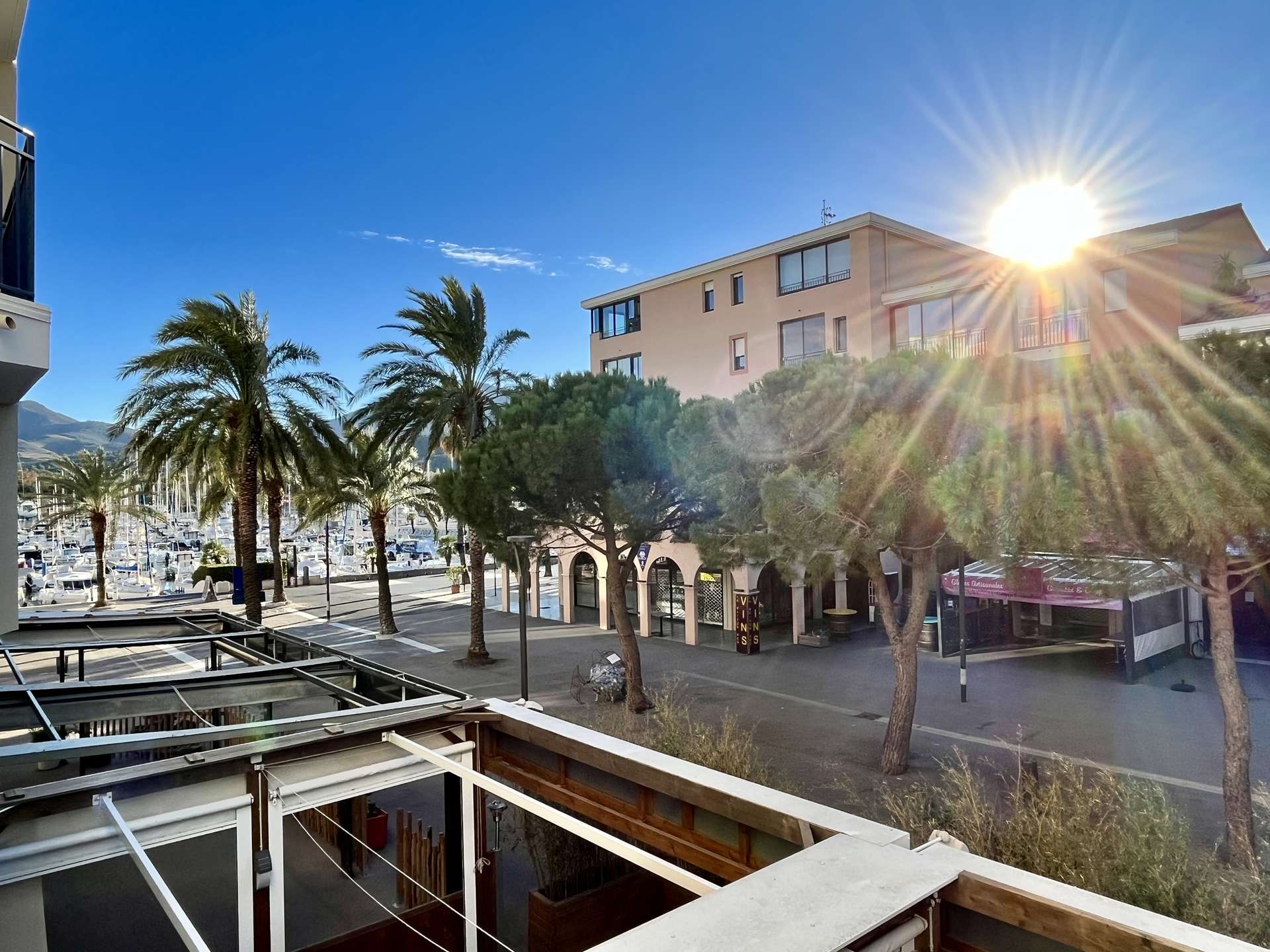 The advantages of this holiday apartment on the Port: classified two stars furnished tourist accommodation, proximity to the sea and shops, elevator, washing machine, television, private parking, side view of the port.
