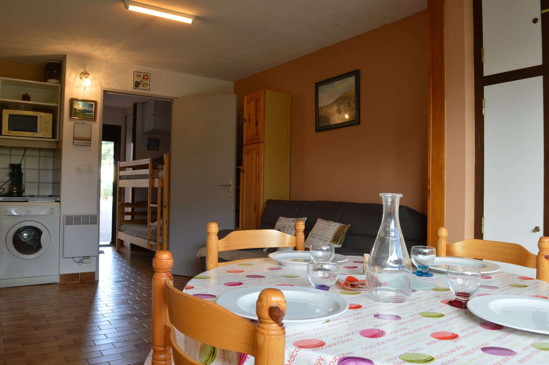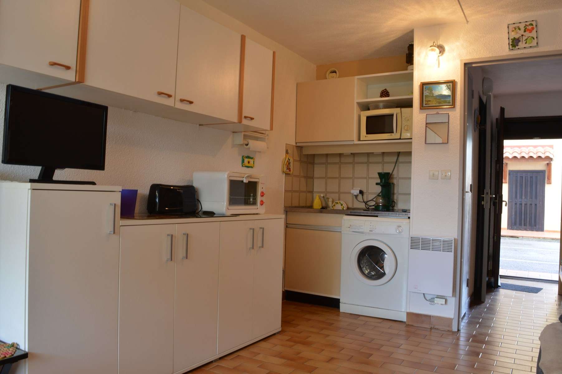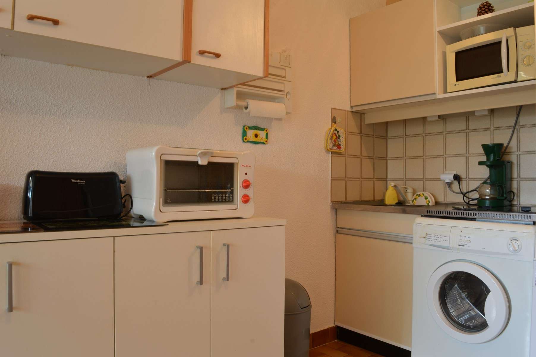 Kitchenette: 2 fires + oven+ Microwave+ washing machine