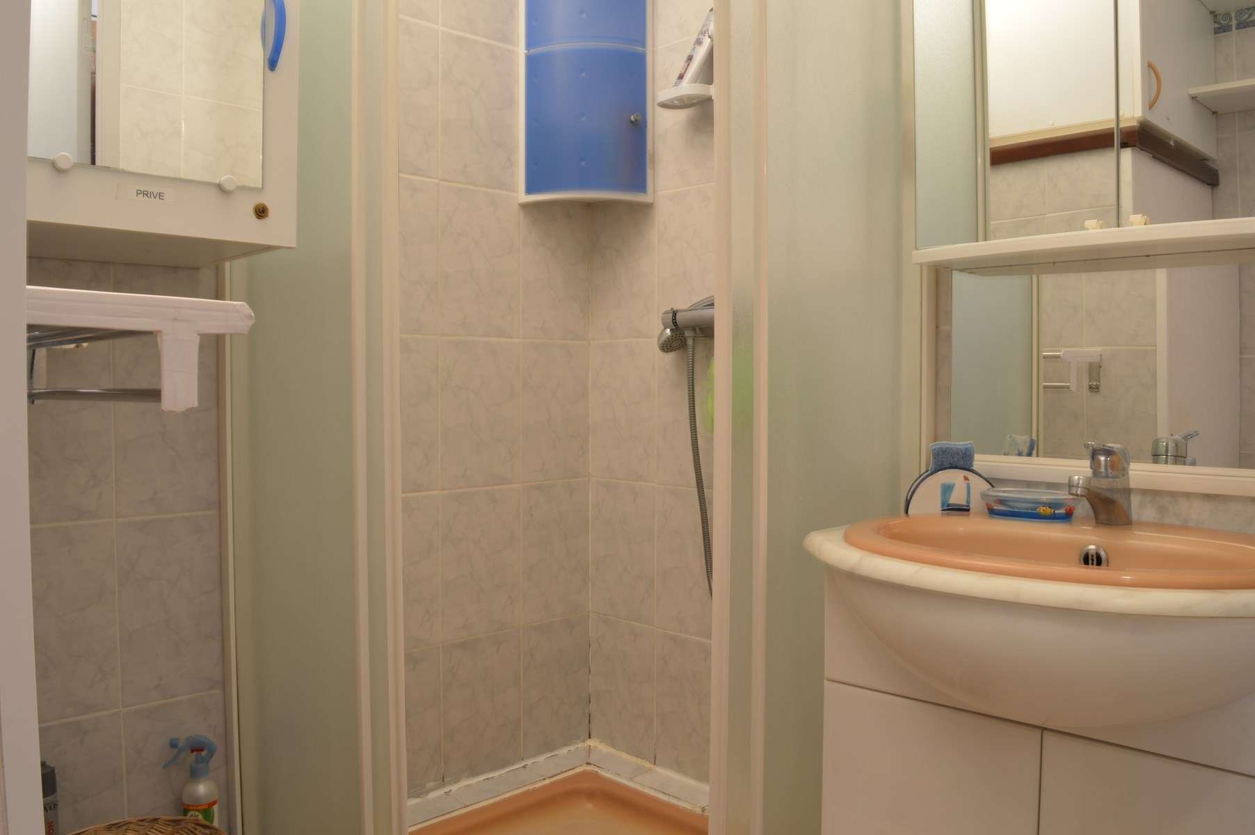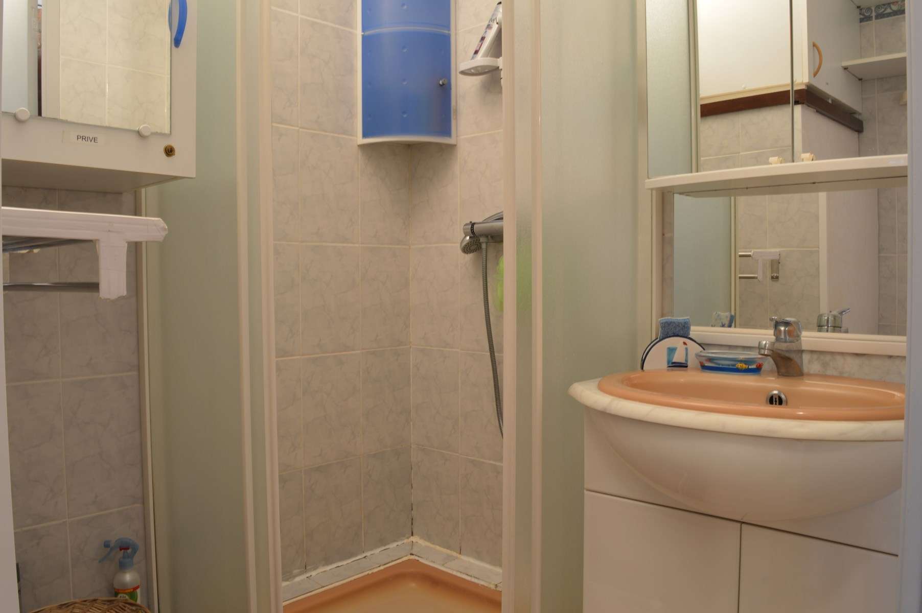 Bathroom: shower + wash basin + WC
