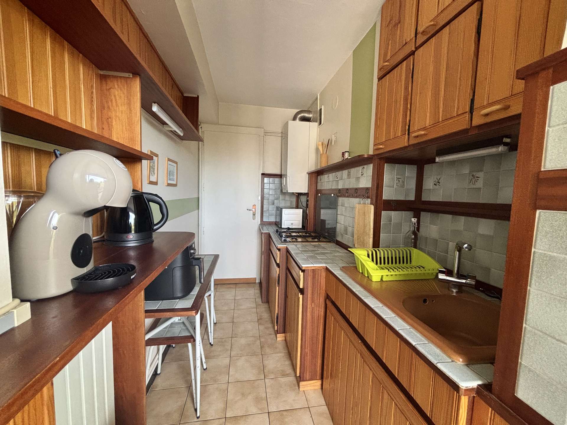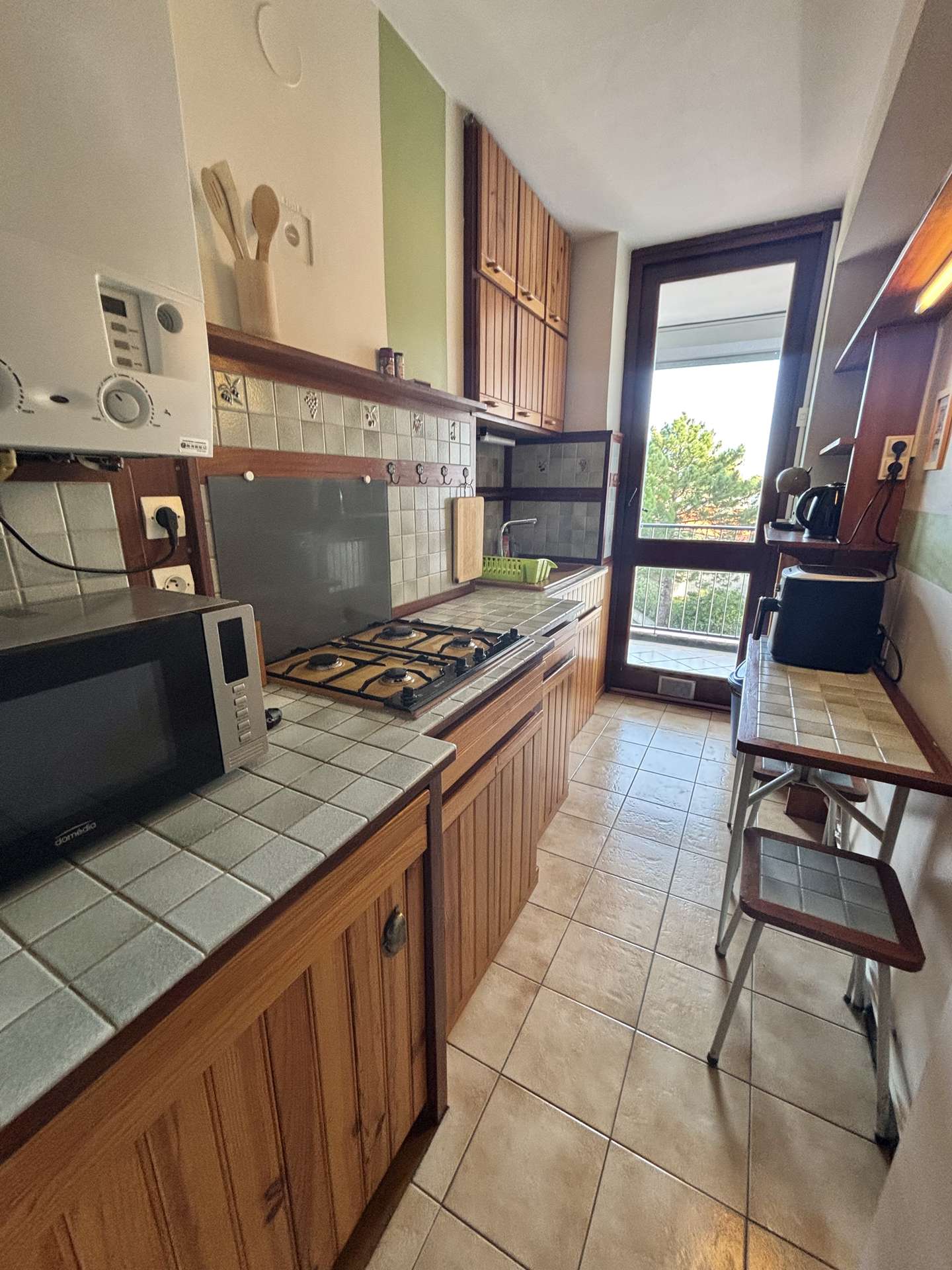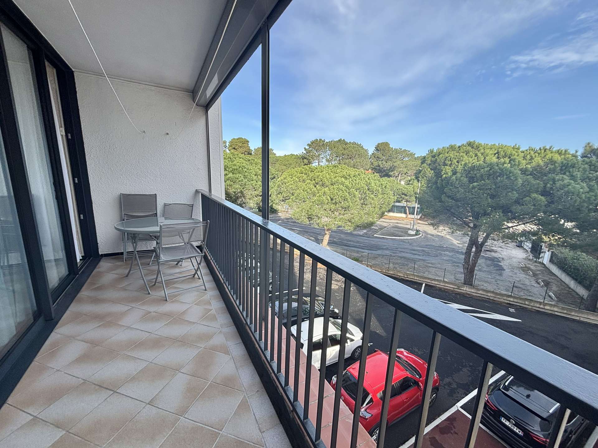Cet appartement climatisé situé au 2ème étage et à 100 m de la plage se compose d’un séjour avec un canapé convertible type BZ deux places donnant sur un balcon et d'une cuisine séparée.