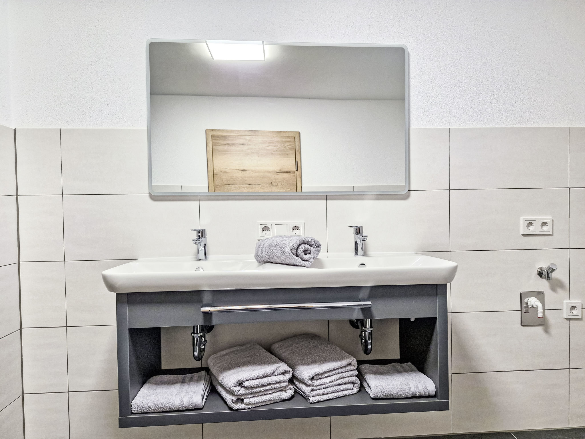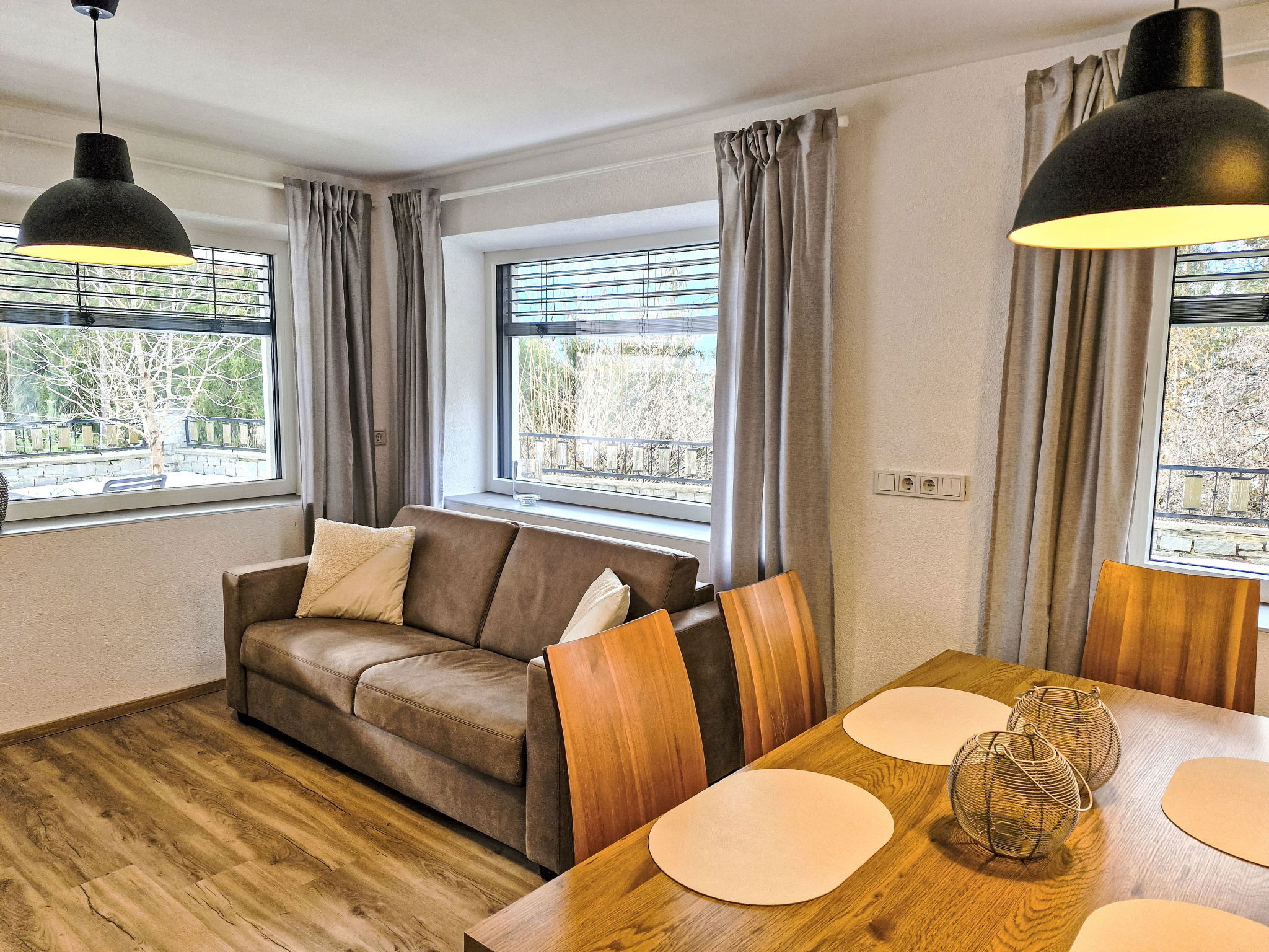 "Marina", 3-room apartment 70 m2, lower ground floor, north facing position. Comfortable and modern furnishings: entrance hall. 1 double bedroom. 1 room with 1 french bed (160 cm, length 200 cm). Large kitchen-/living room (oven, dishwasher, 4 ceramic glass hob hotplates, toaster, kettle, electric coffee machine) with 1 double sofabed, dining table and satellite TV (flat screen). Shower/WC, sep. WC, double hand-basin. Underfloor heating. Parquet floors. Large terrace, west facing position. Terrace furniture. Side view of the mountains. Facilities: Internet (WiFi, free). Parking (roofed). Please note: suitable for families. Non-smokers only. Maximum 1 pet/ dog allowed. Private entrance.