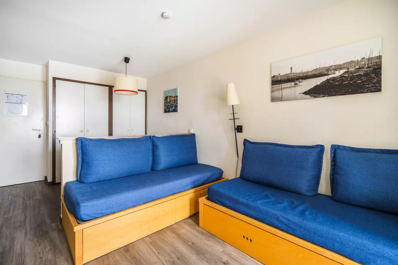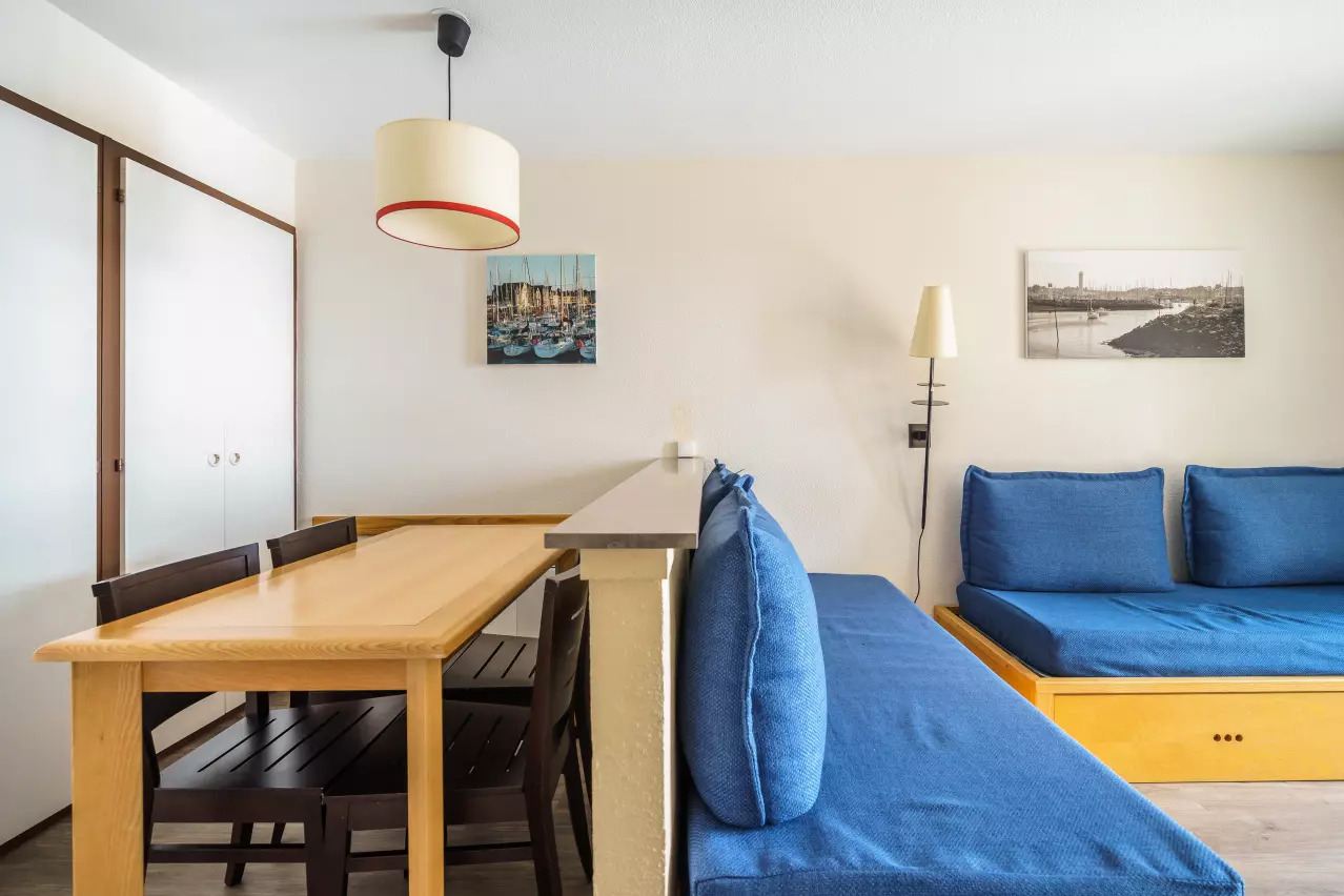 Living room facilities: 2 sofa beds + 1 single bed (sleeps 3). Dining area: 1 table with 4 chairs.
